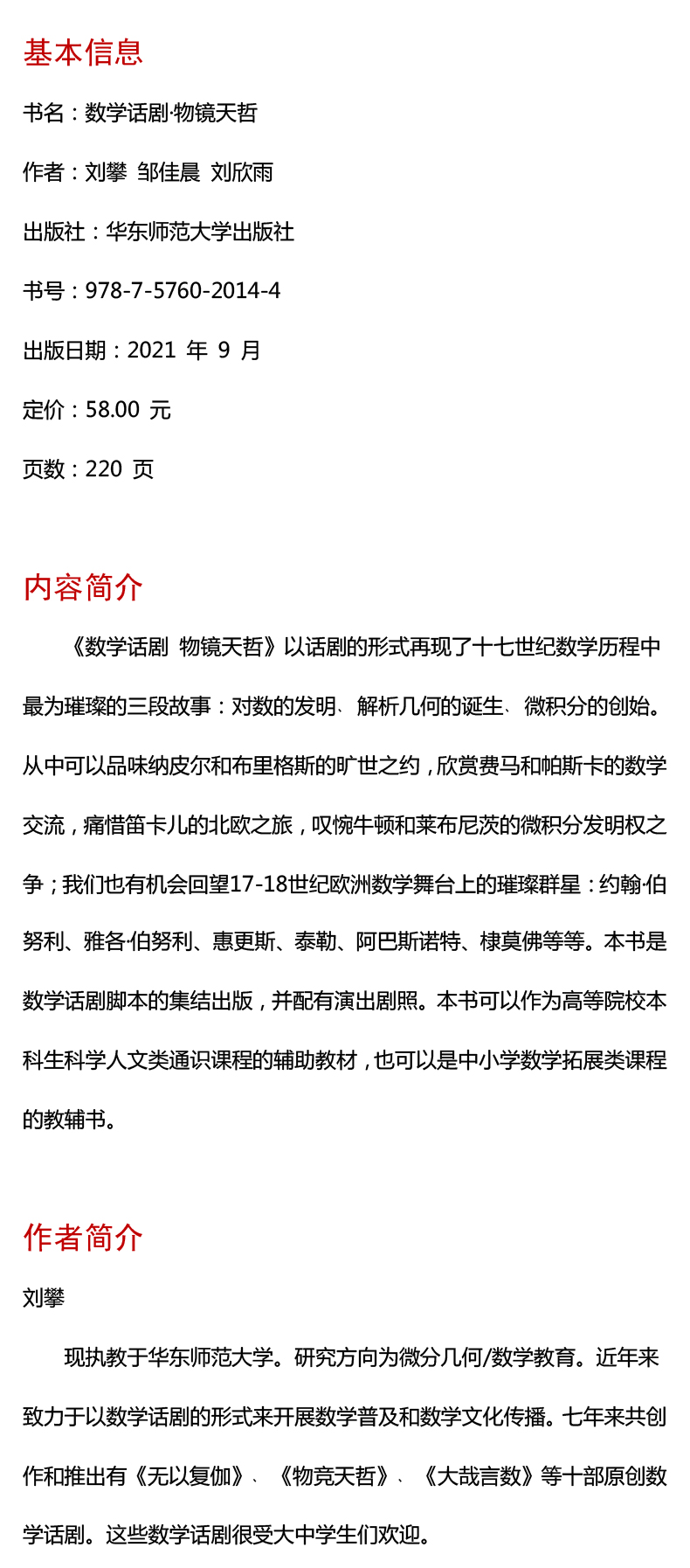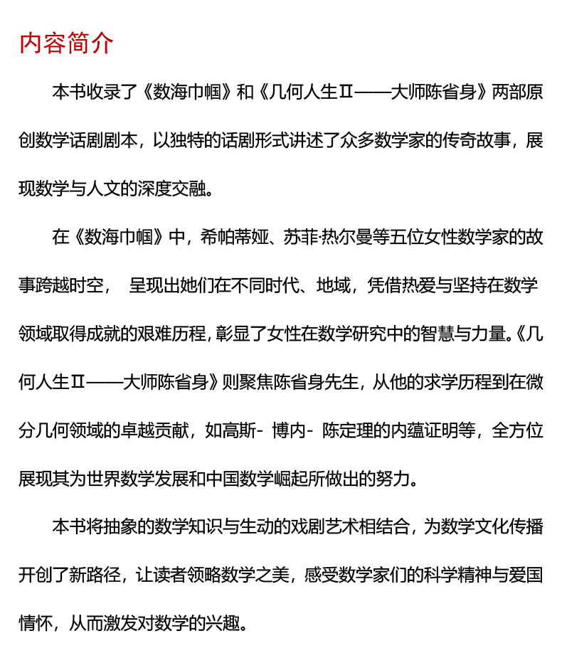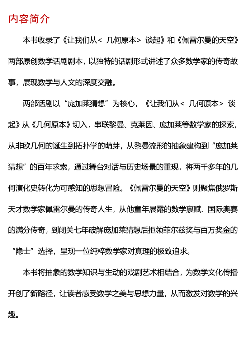 数学话剧 物镜天哲+几何人生+佩雷尔曼的天空 田刚、张伟平、汤涛三位院士作序推荐