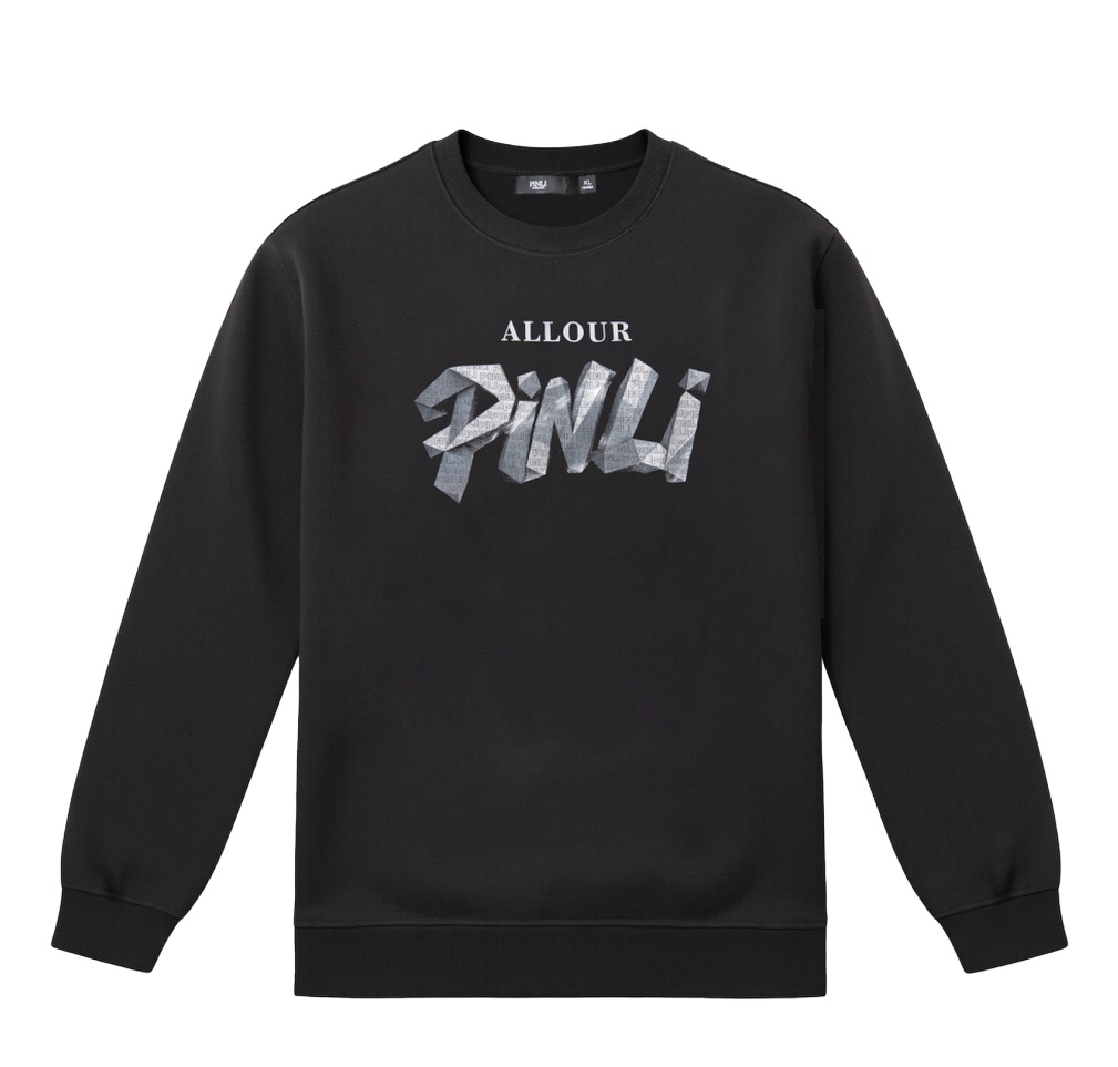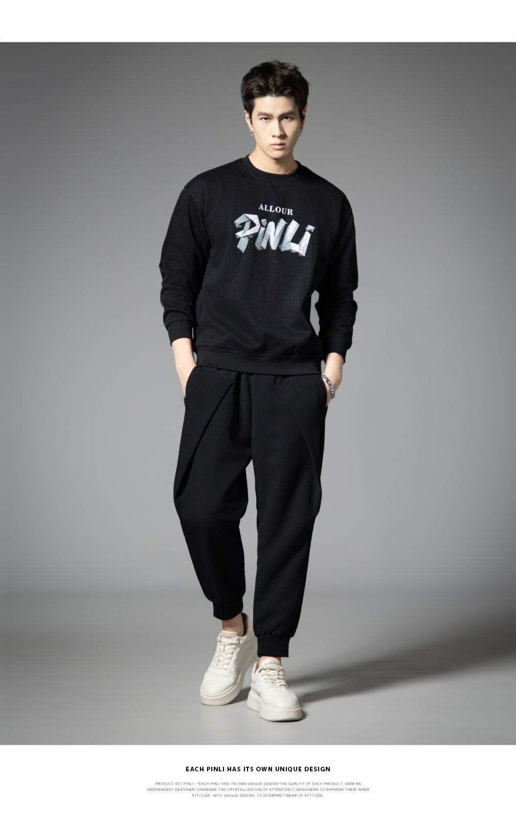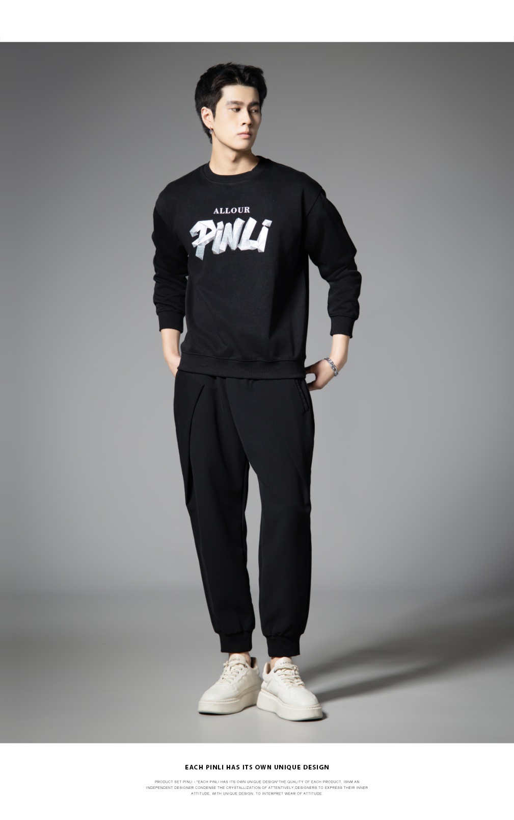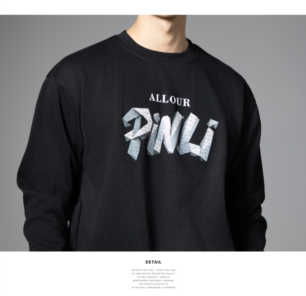 PINLI品立2025秋季新款男士宽松圆领字母印花套头卫衣长袖上衣潮BG253109011
