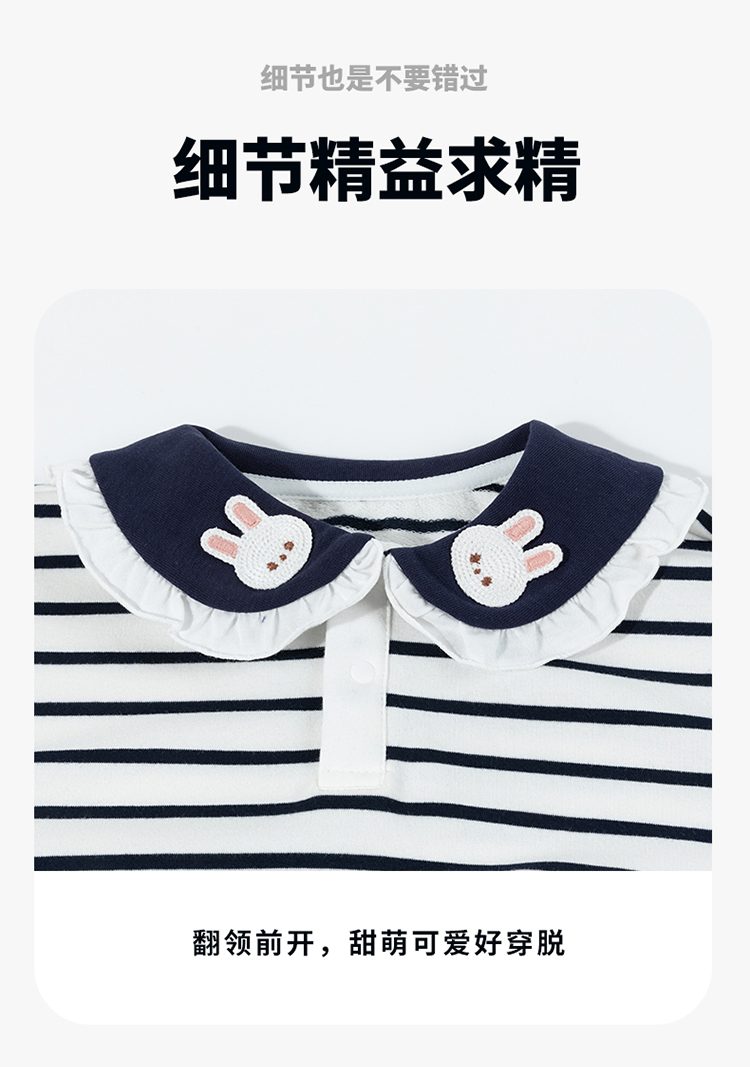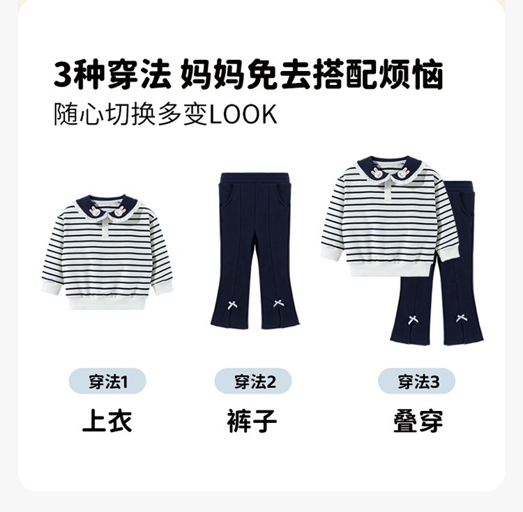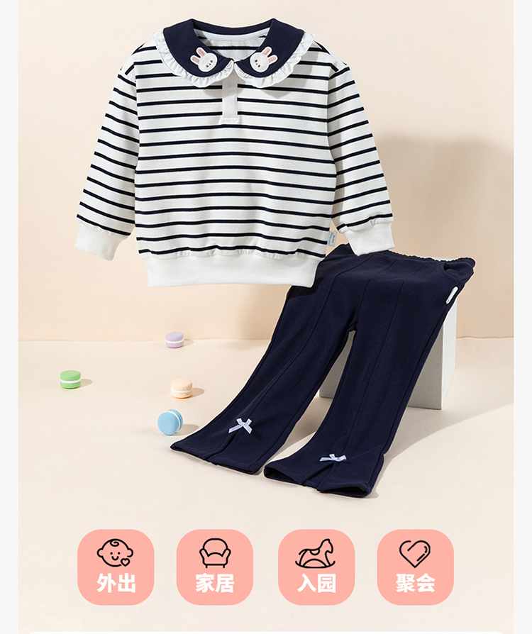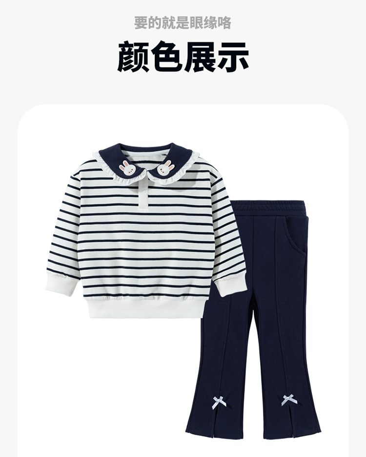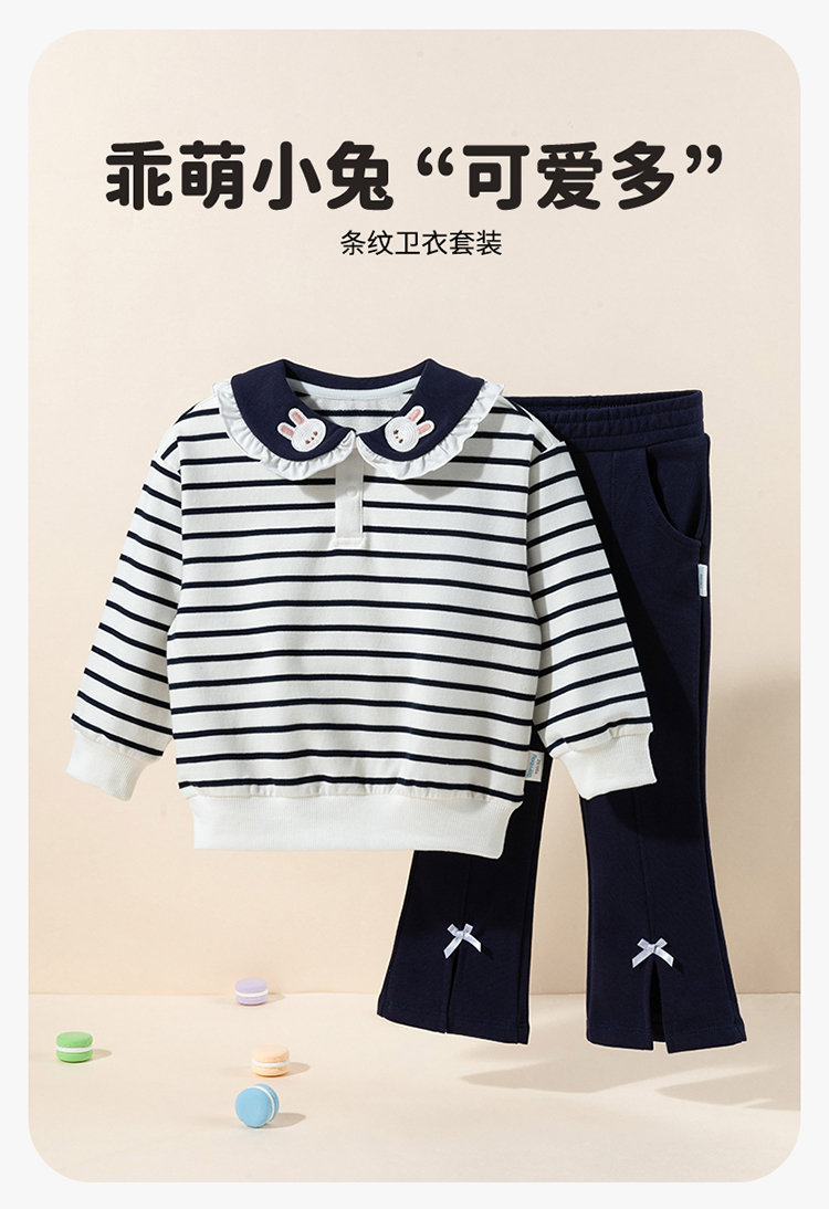 贝贝怡卫衣套装春秋新款女童条纹卫衣喇叭长裤两件套ZB3DT090