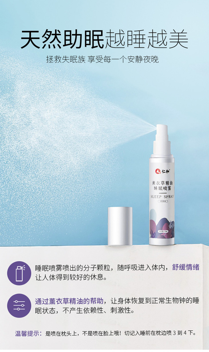 【舒huan情绪,想睡就睡】仁和薰衣草精油睡mian喷雾,轻轻一喷,享受婴儿睡mian