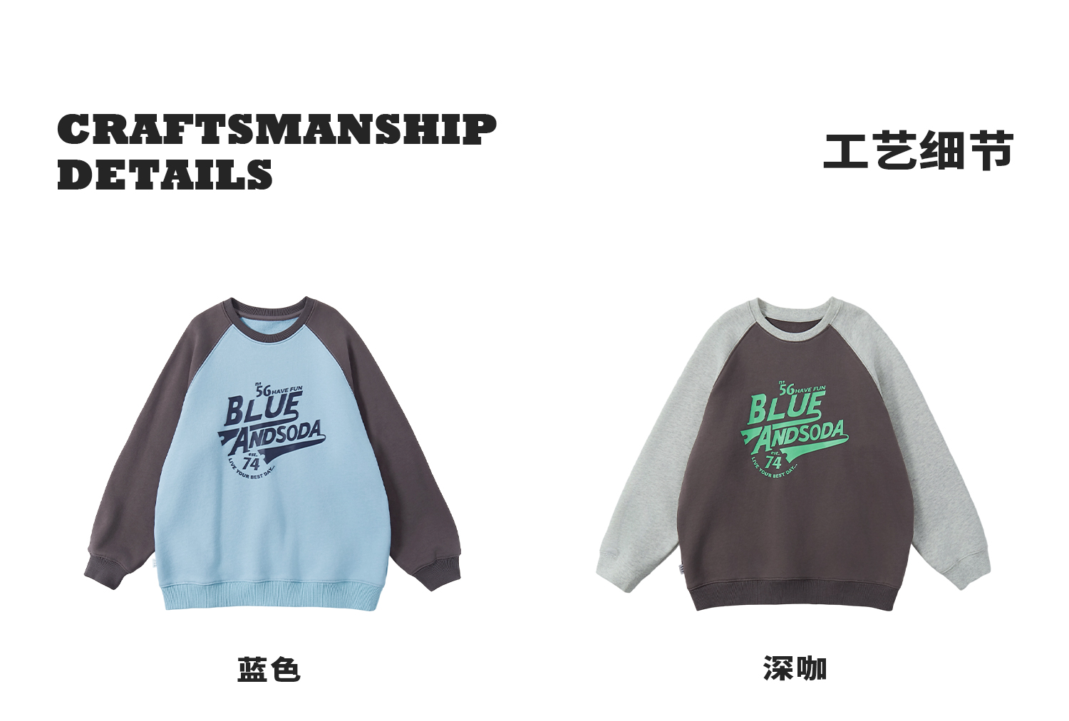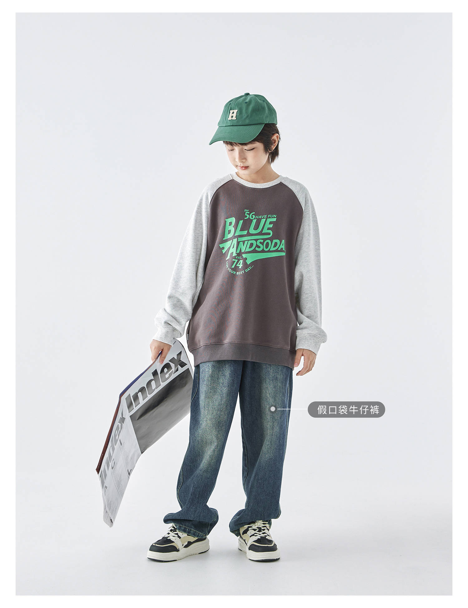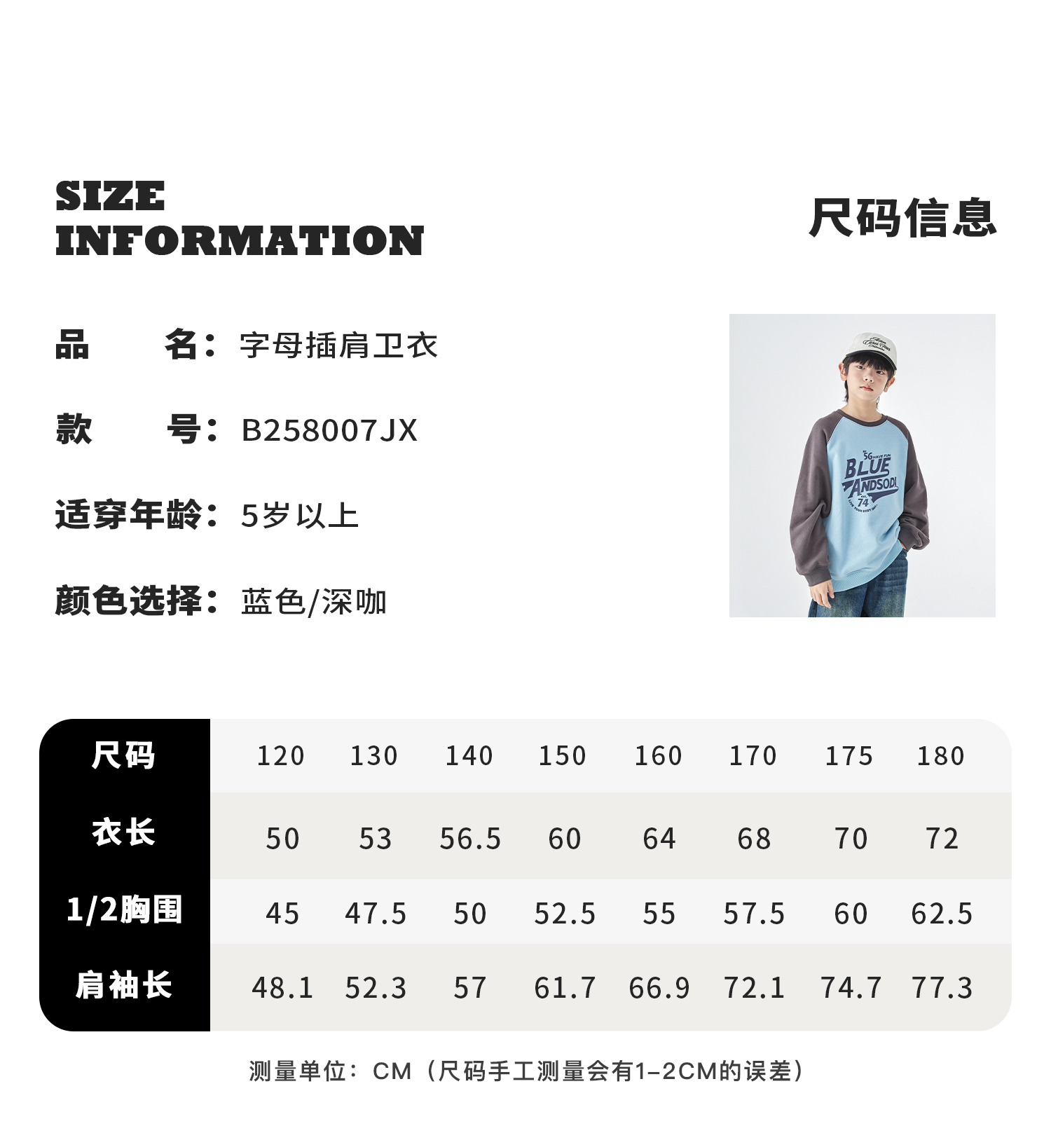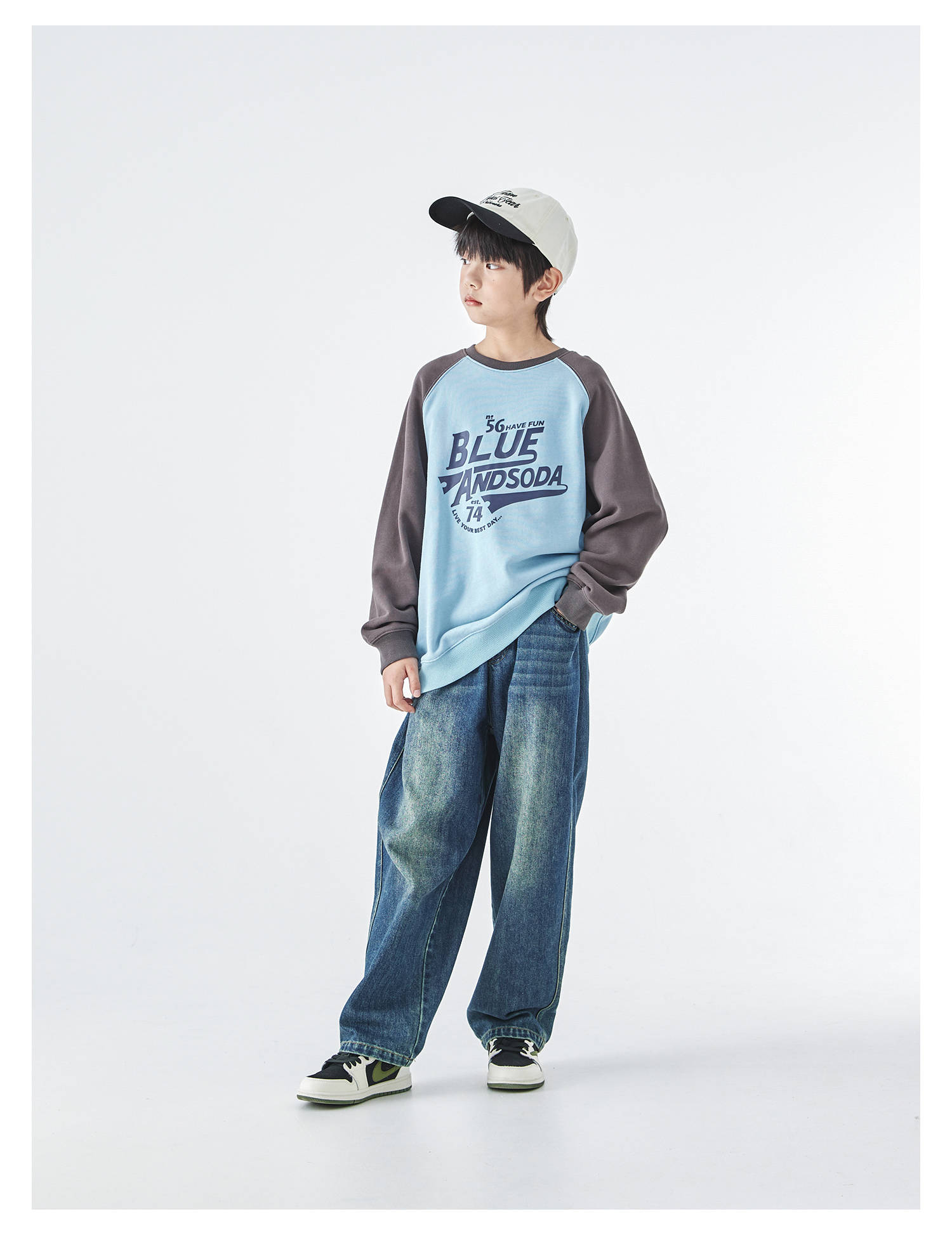 蓝汽水25年秋季新款亲子装中大男童字母插肩卫衣美式复古撞色上衣