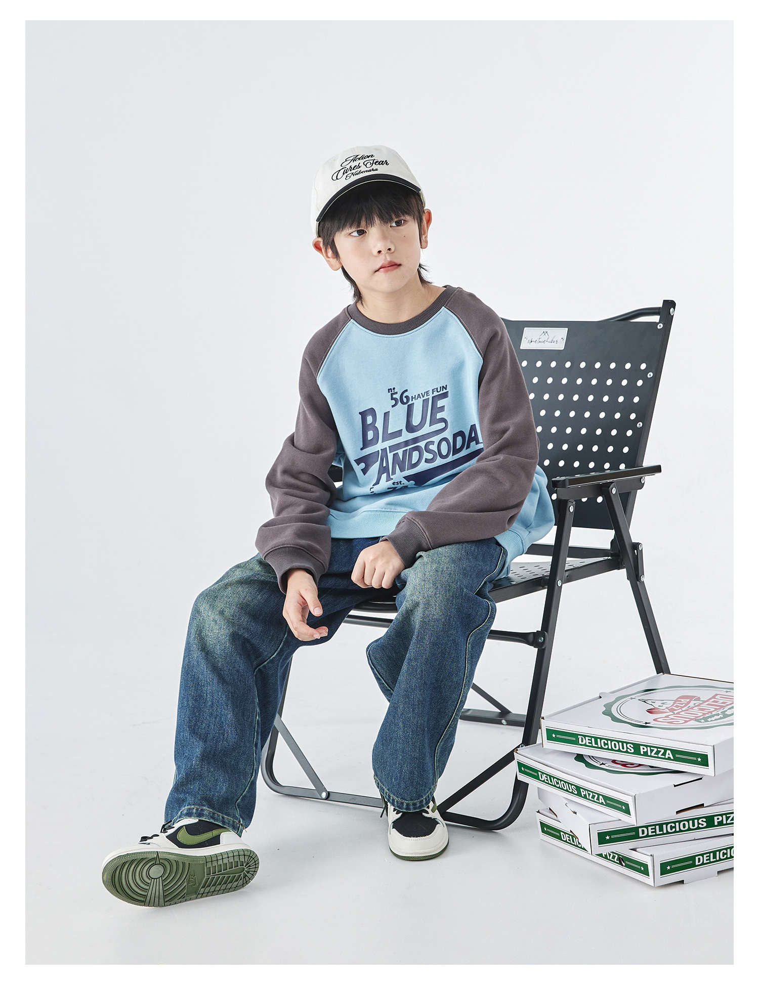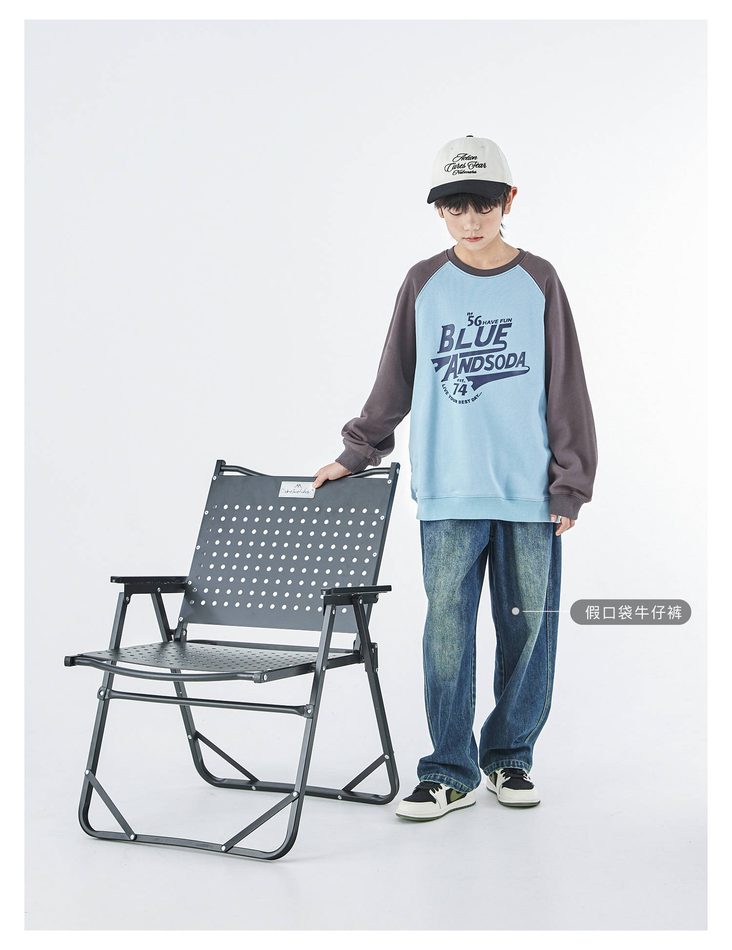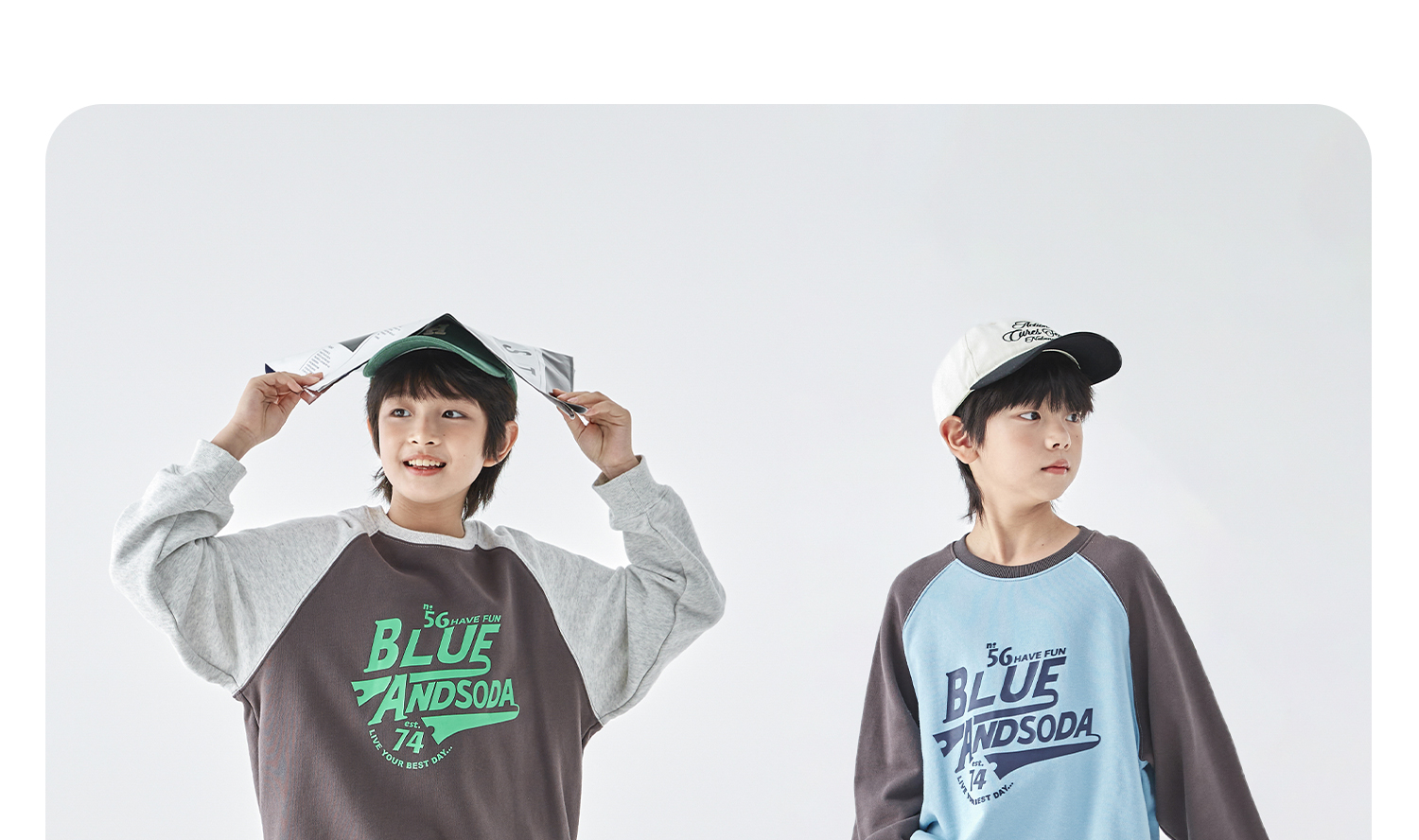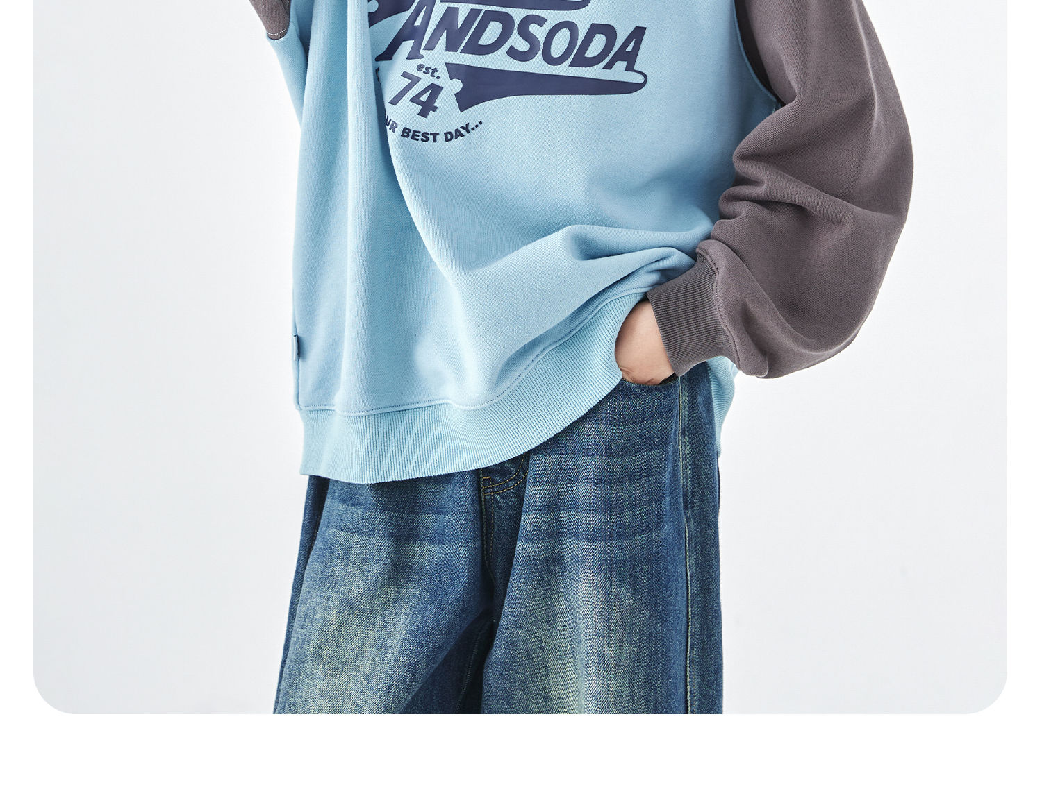 蓝汽水25年秋季新款亲子装中大男童字母插肩卫衣美式复古撞色上衣