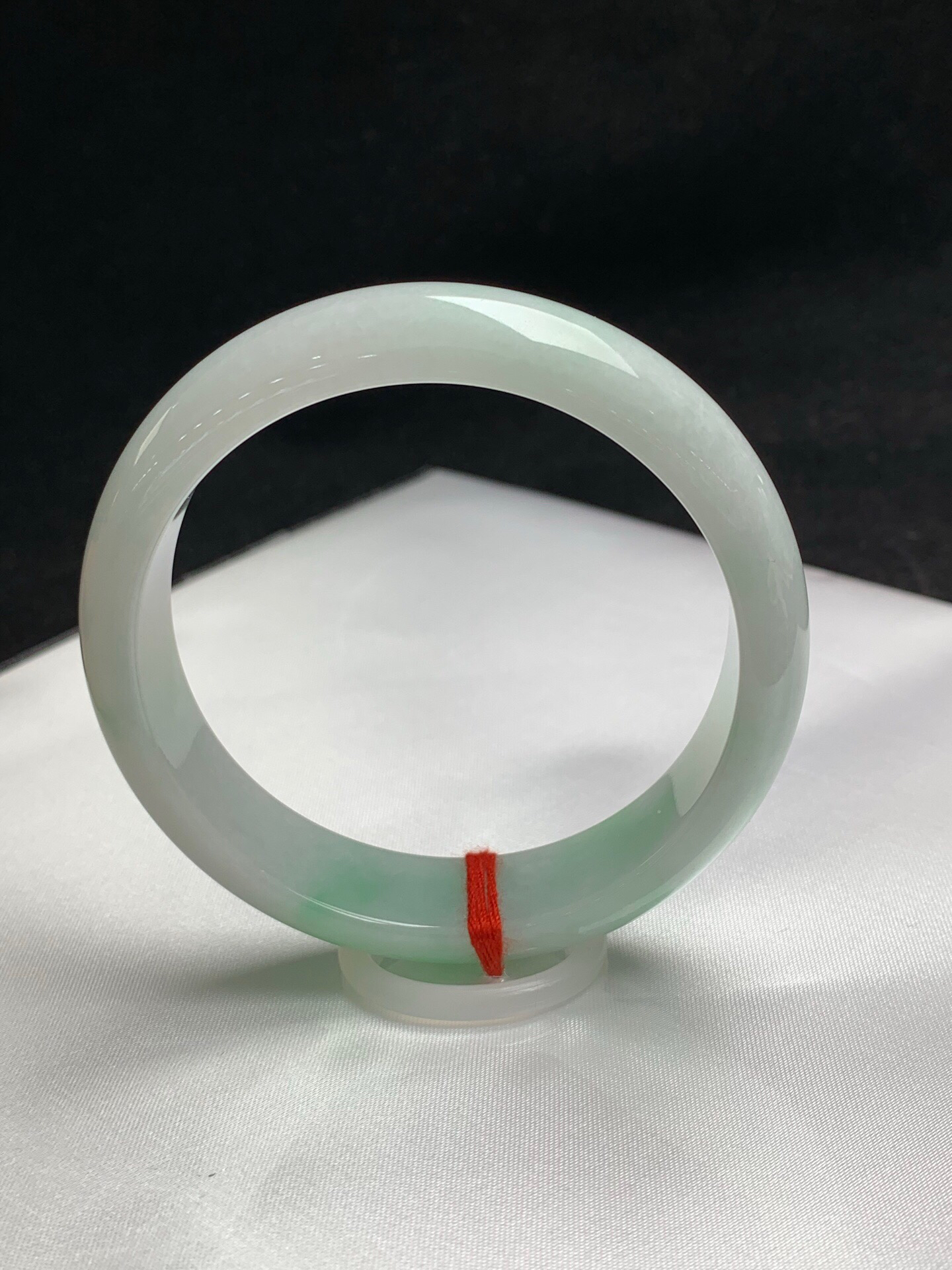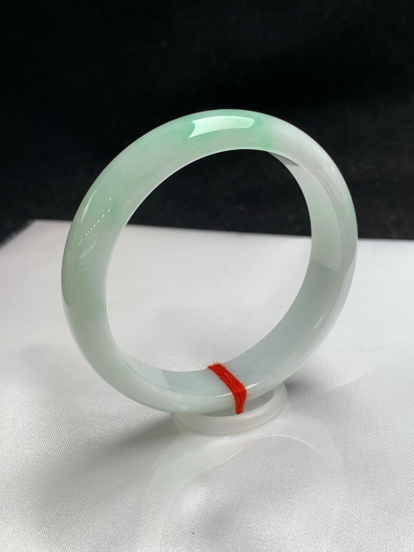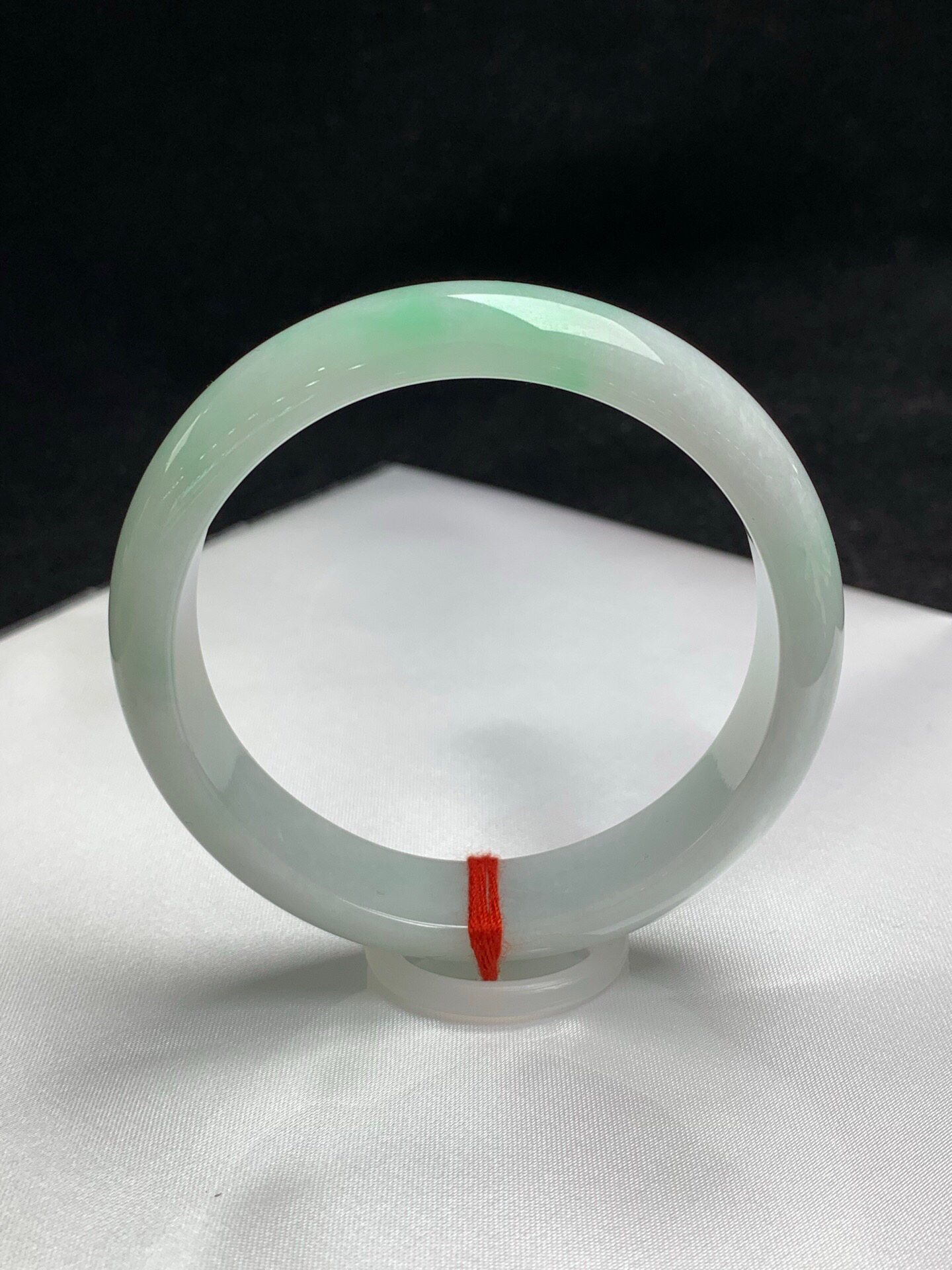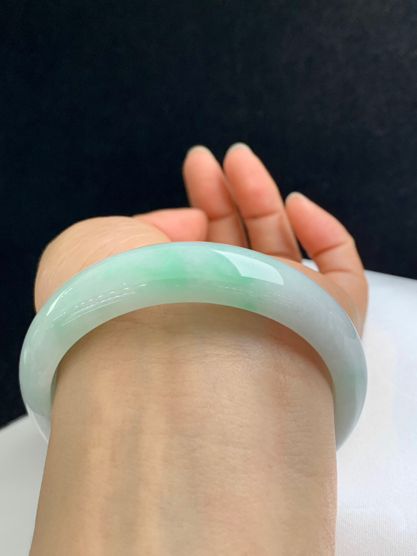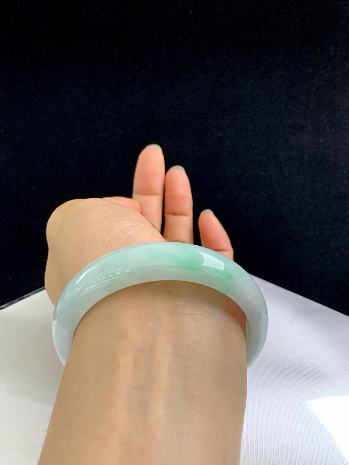 620587,59圈口,细糯飘绿正圈平安镯,白底飘绿,细腻有水头