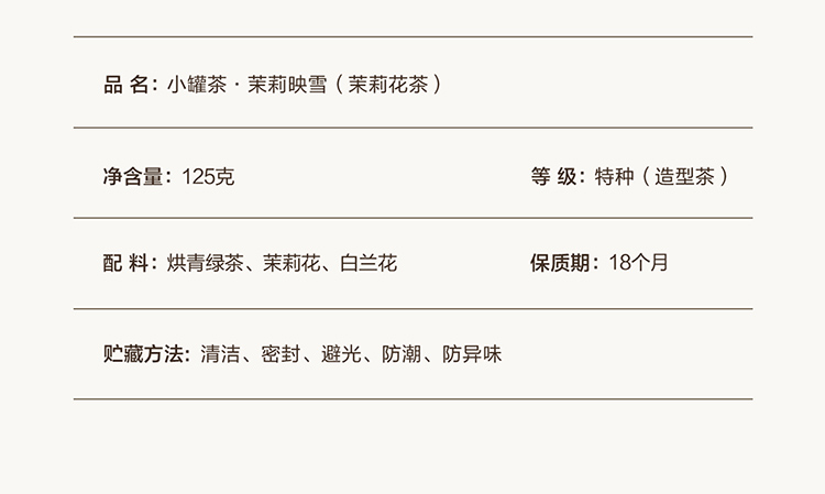 [新品] 小罐茶 茉莉映雪单罐装 125g / 罐(单罐装无手提袋,2罐送礼品手提袋)【现货】