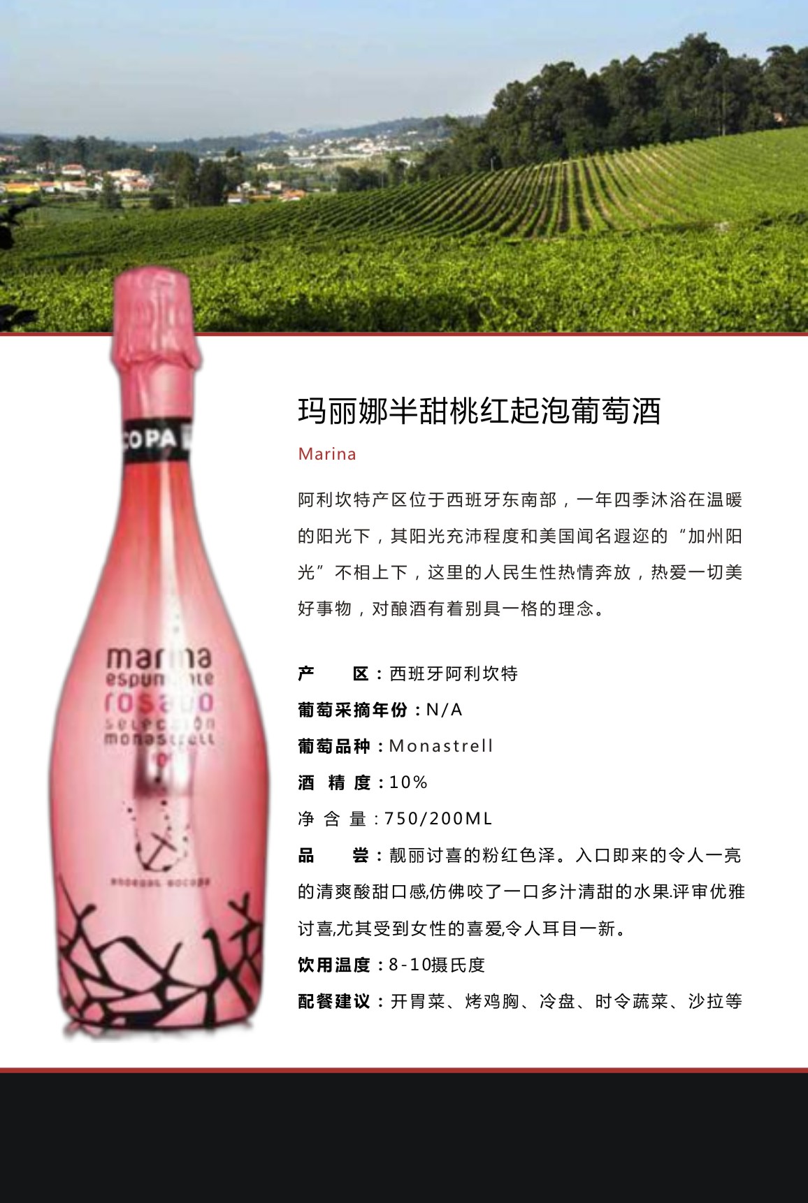 玛丽娜半甜桃红起泡小瓶