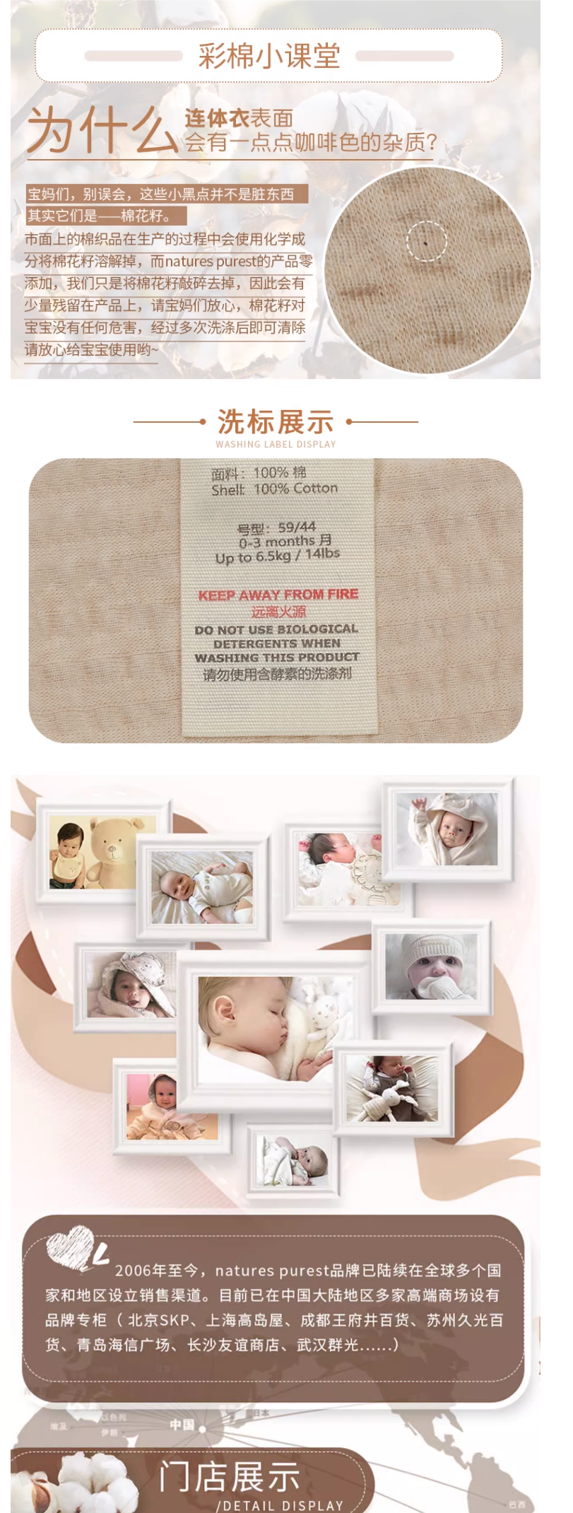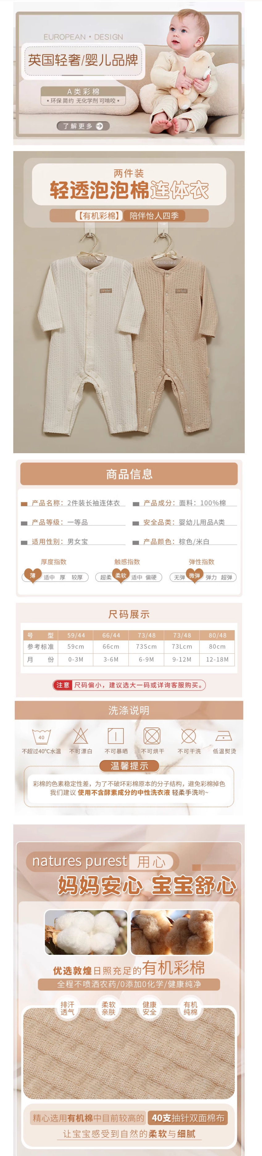 【云粉节】9楼英国natures purest(天然素彩)宝宝有机彩棉婴儿连体内衣服婴儿男女两件装 吊牌价:588
