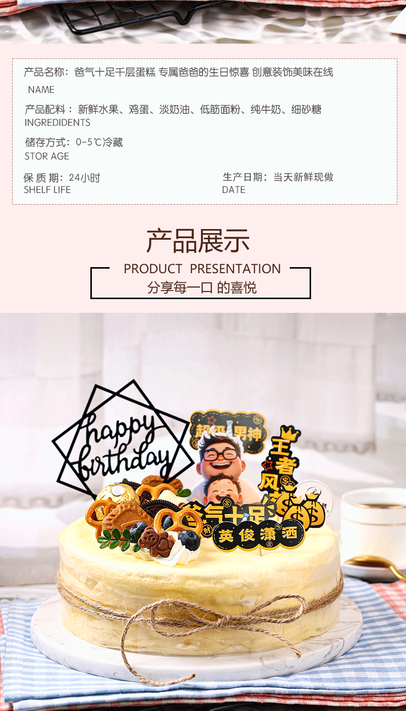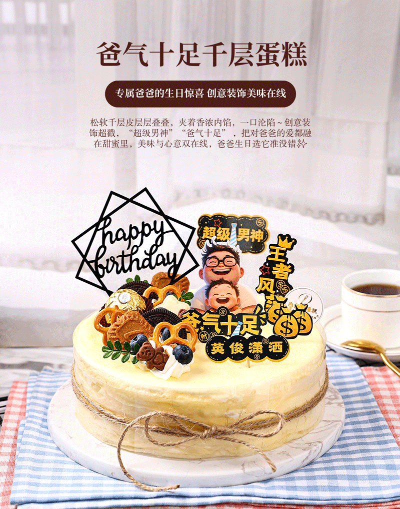 爸气十足千层蛋糕,专属爸爸的生日惊喜,创意装饰美味在线【惠州】