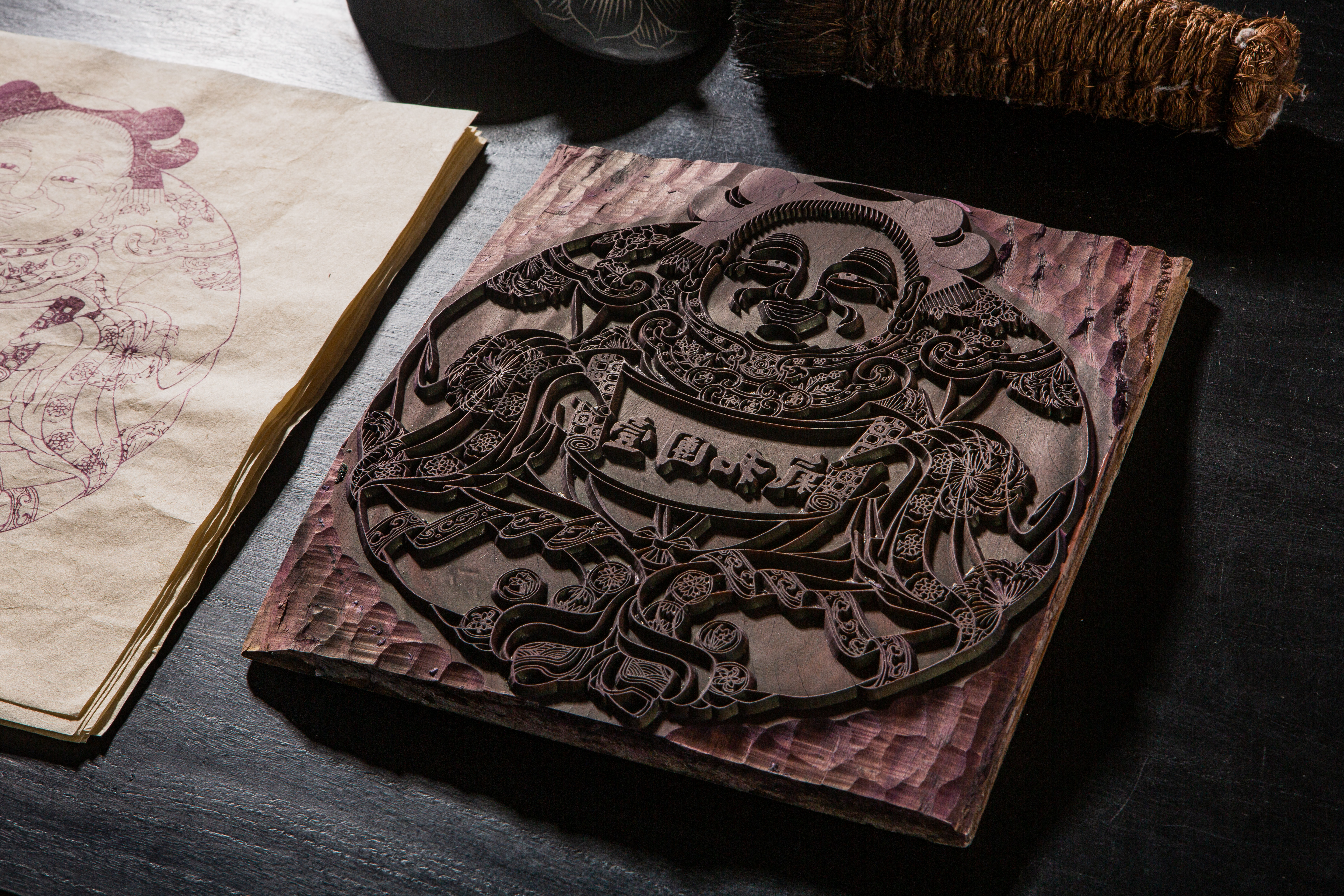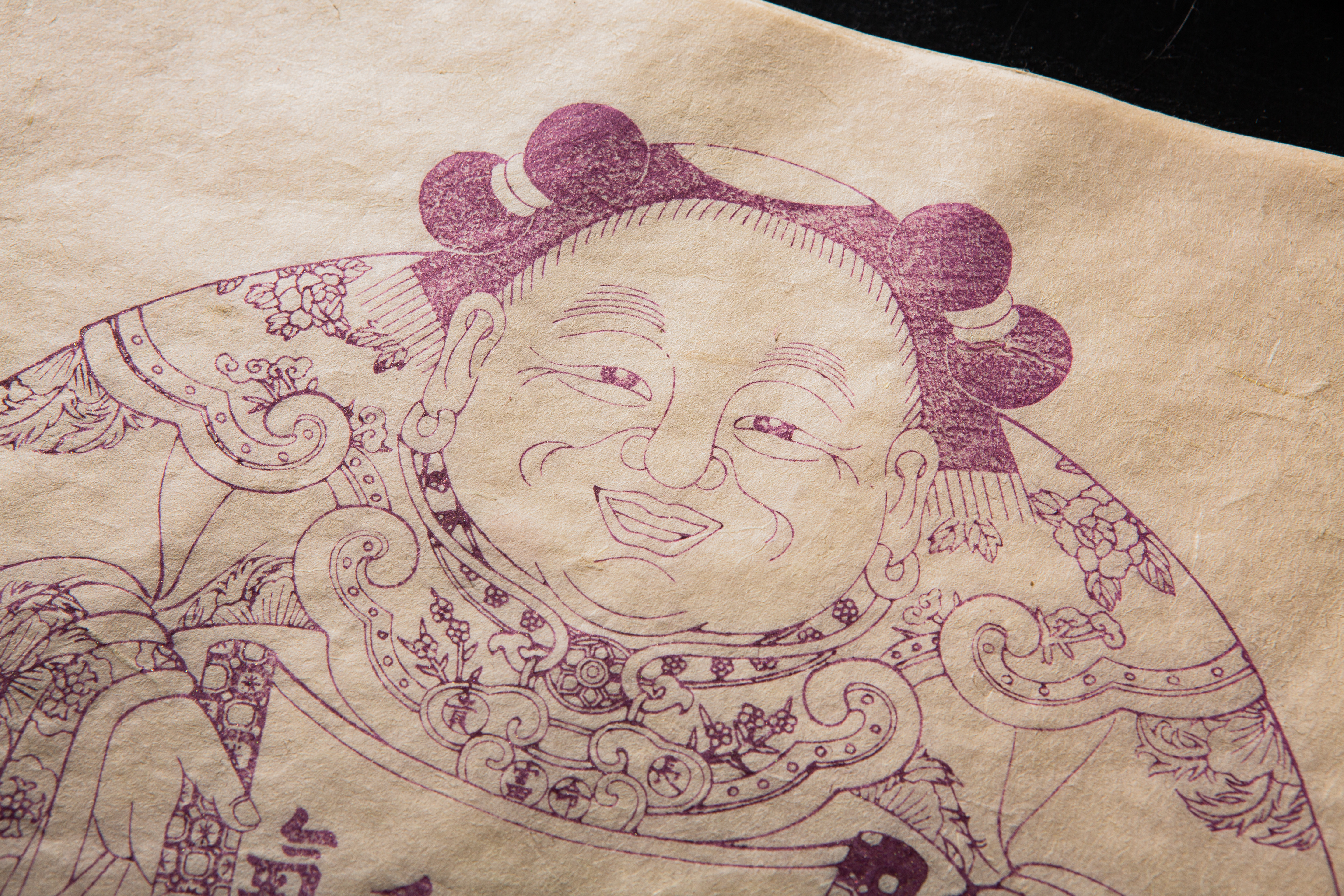 此木版水印为手工精制,其雕版精细,颜色典雅,纹饰富丽,寓意美好,装框悬挂使整体空间呈现出吉祥的氛围!