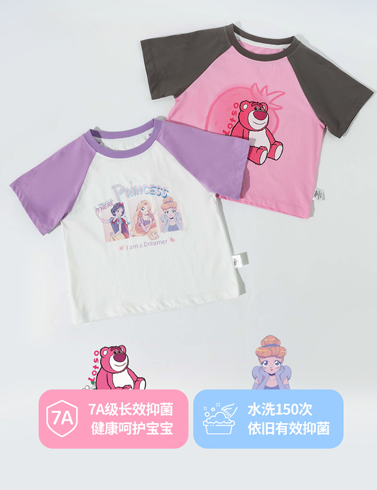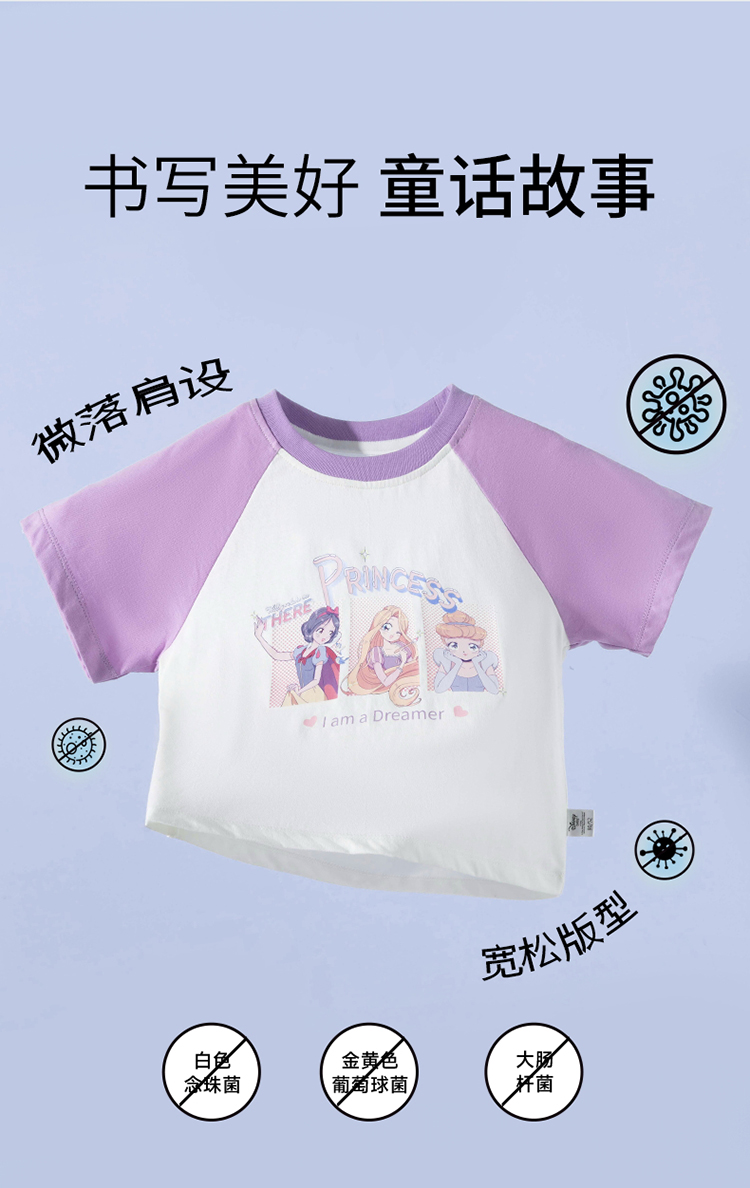 迪士尼【5A抑菌凉感T恤】2025夏季新款女童冰感短袖T恤休闲上衣ZD2ES031*