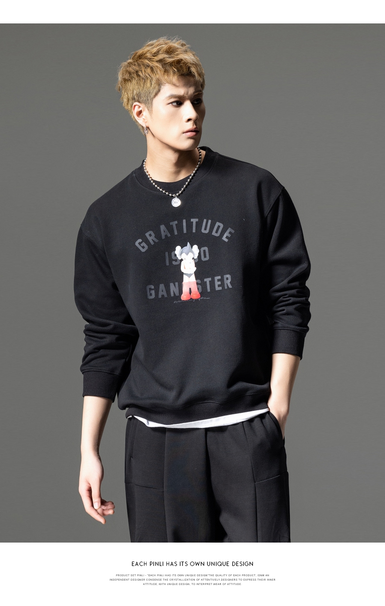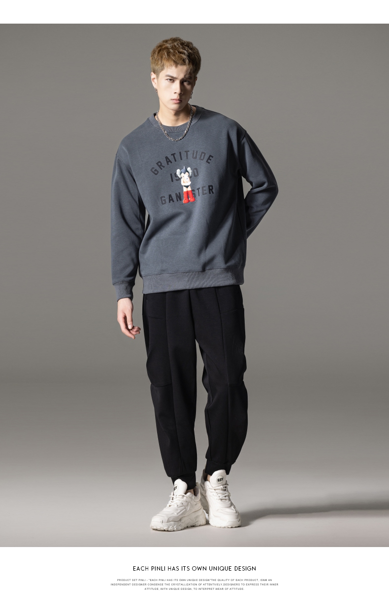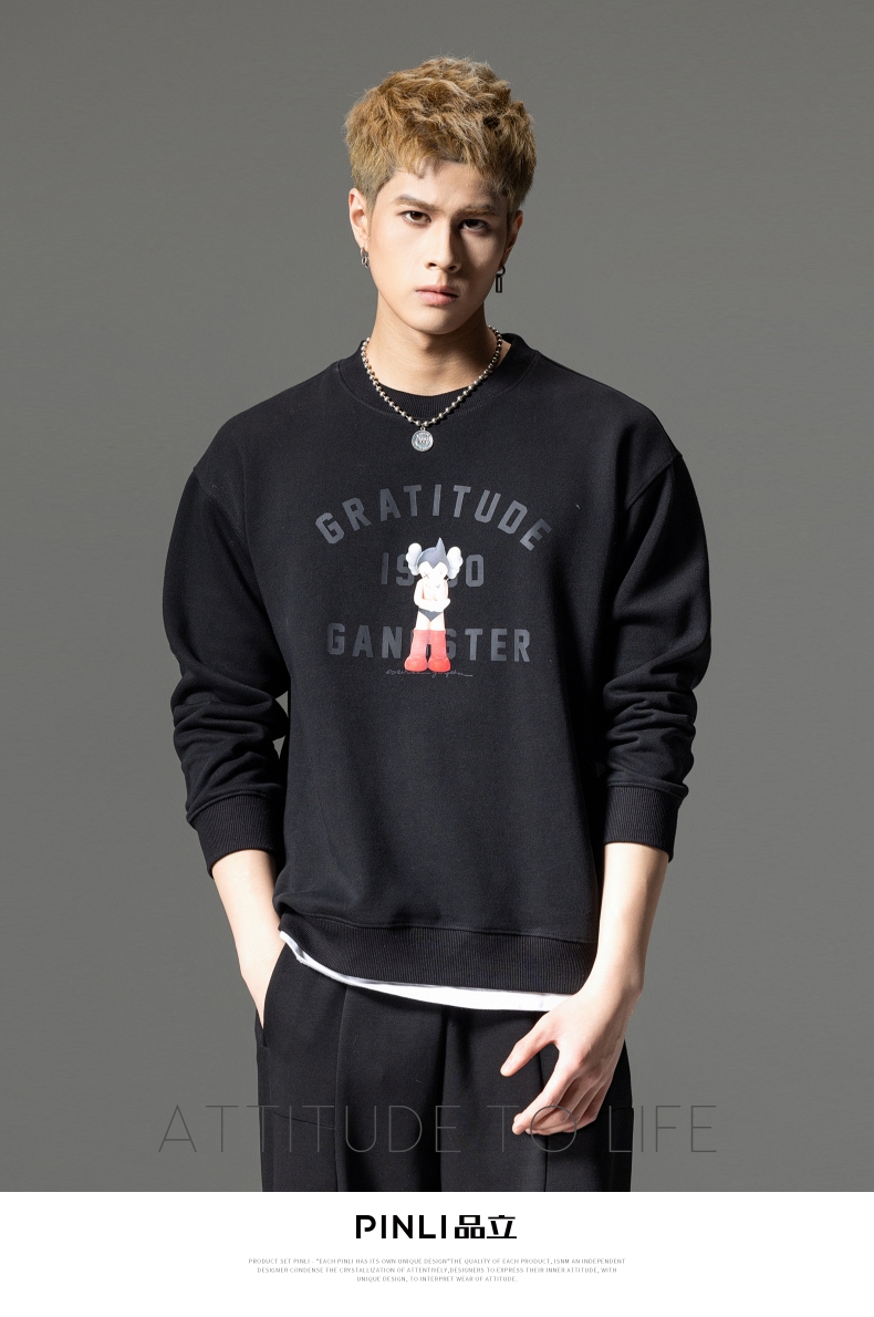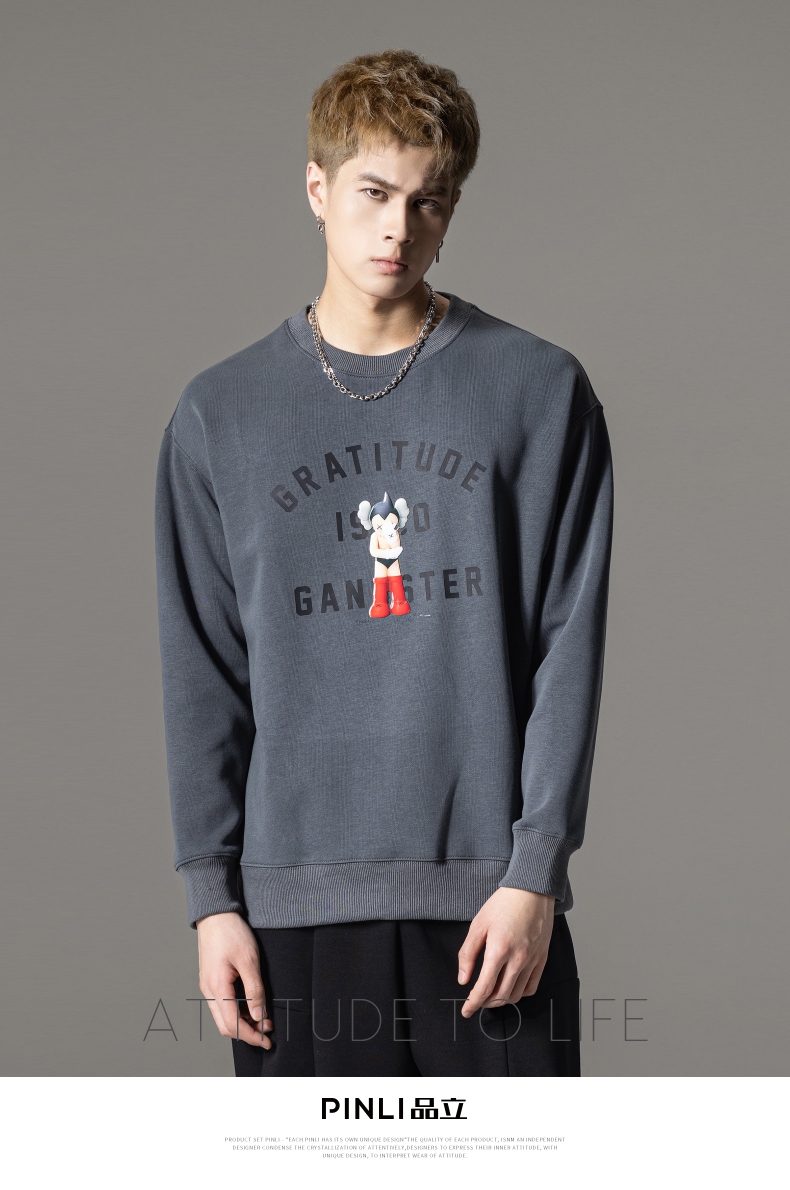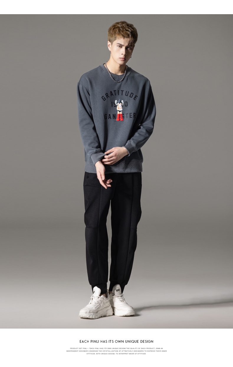 PINLI品立2024春季新款男士印花圆领休闲套头卫衣上衣BG233109040