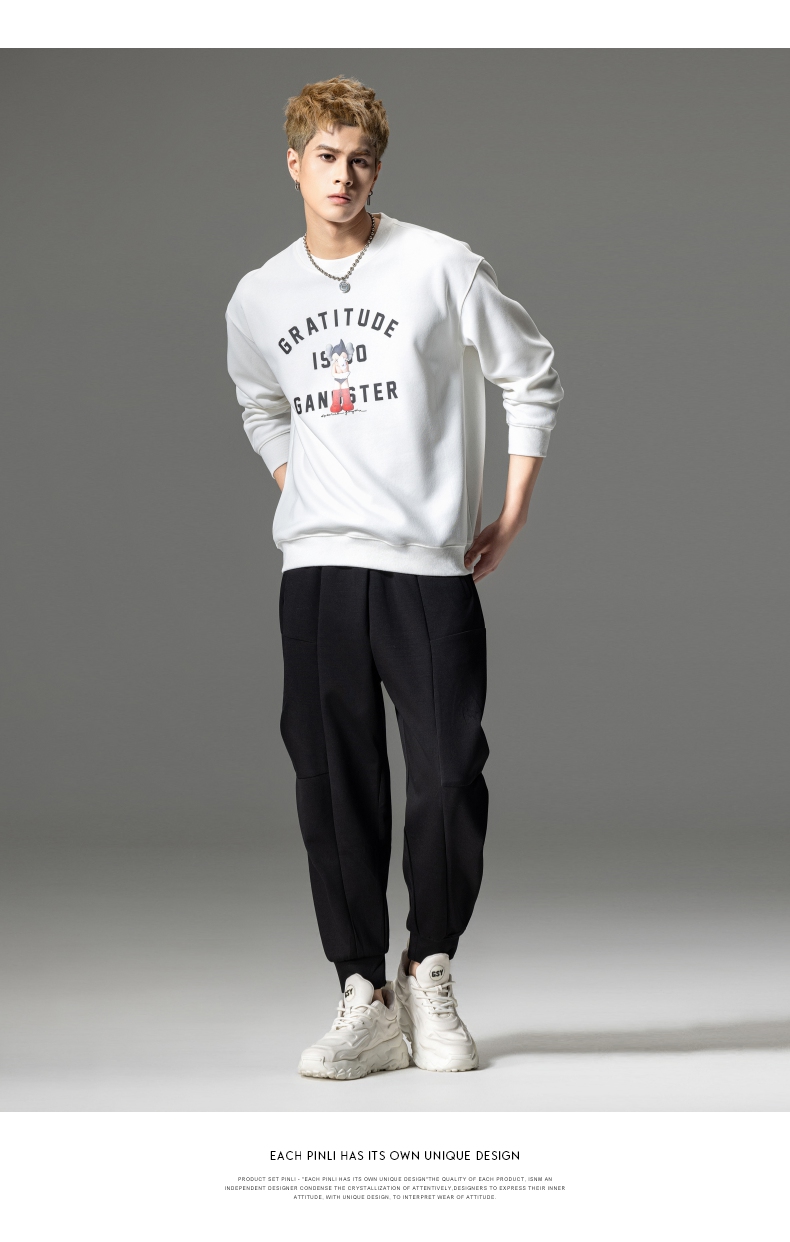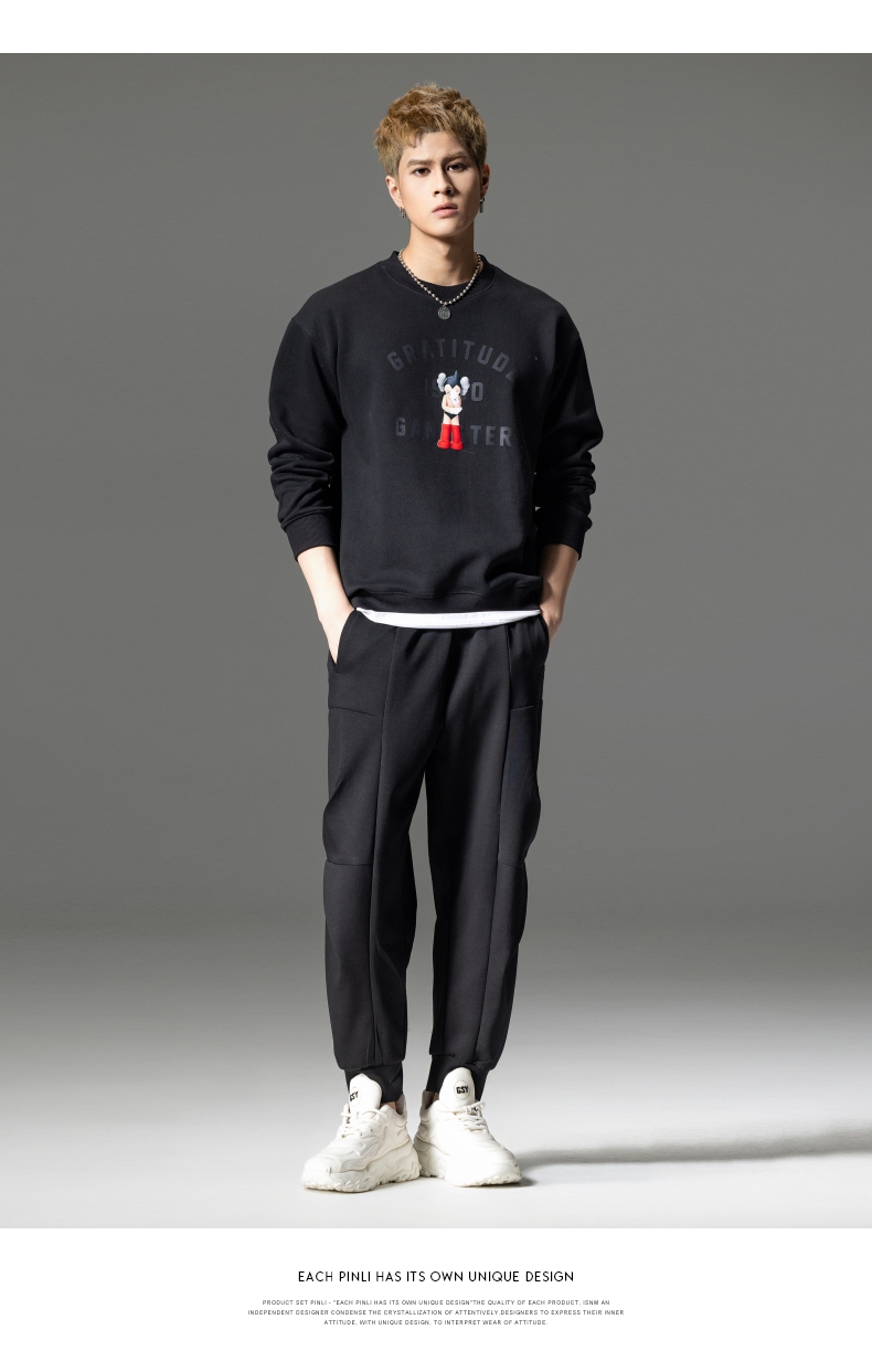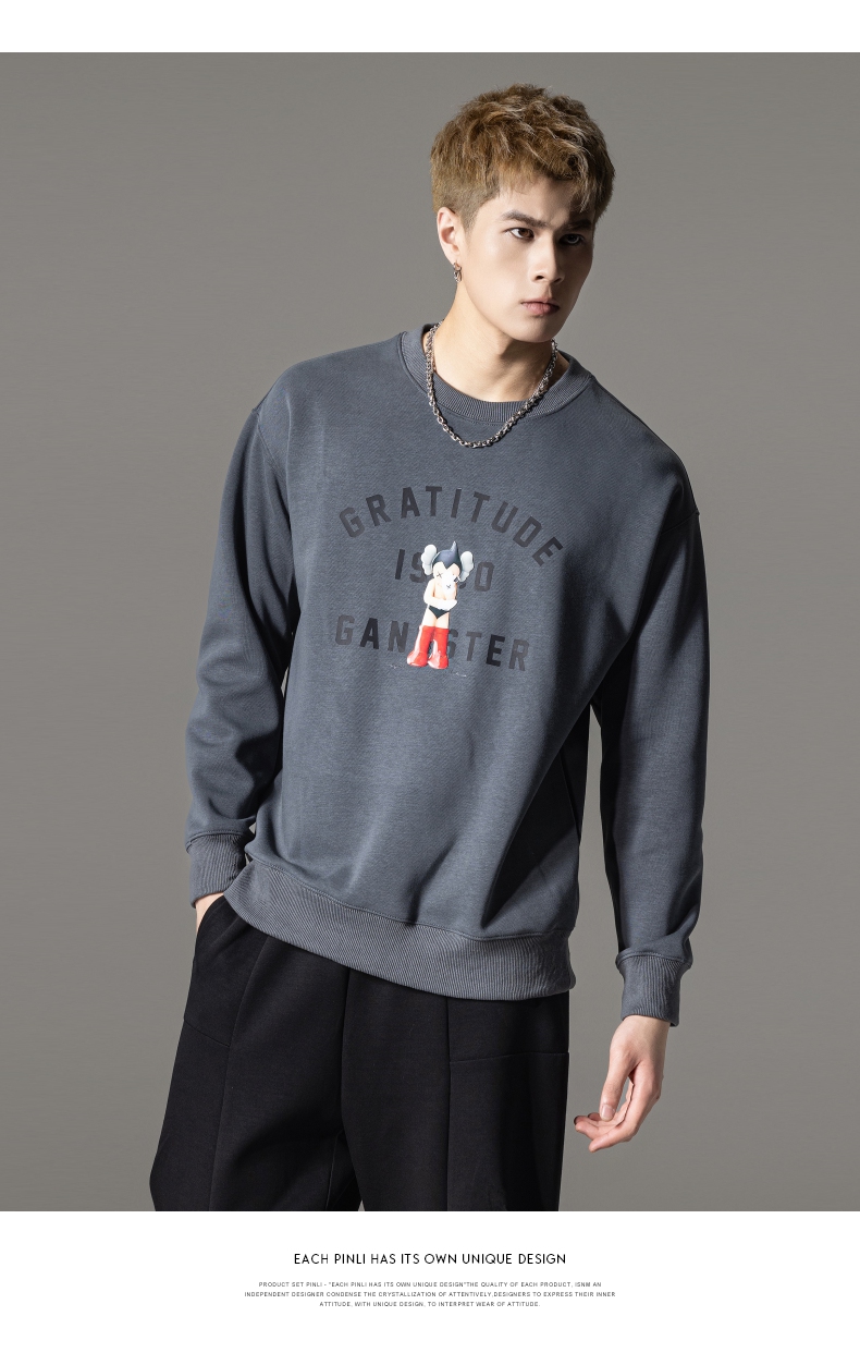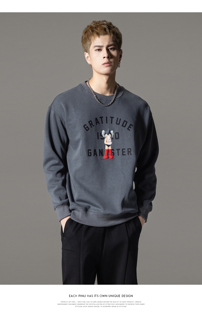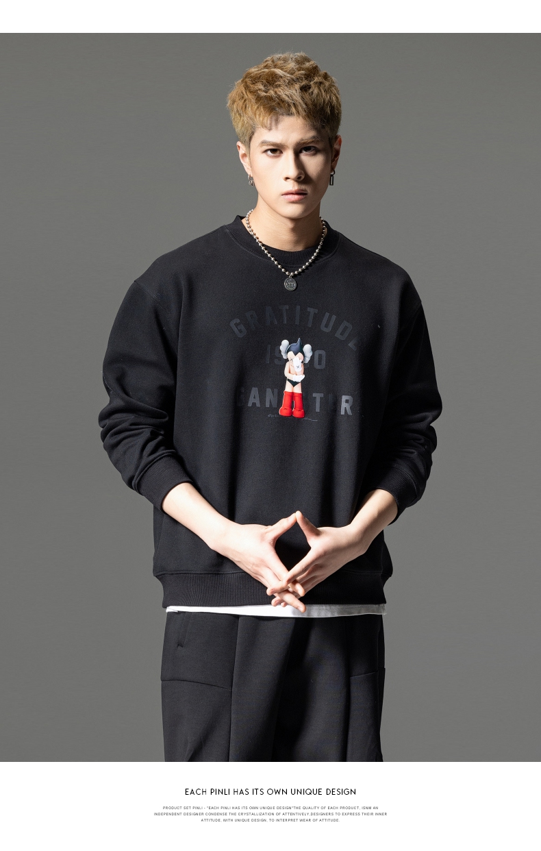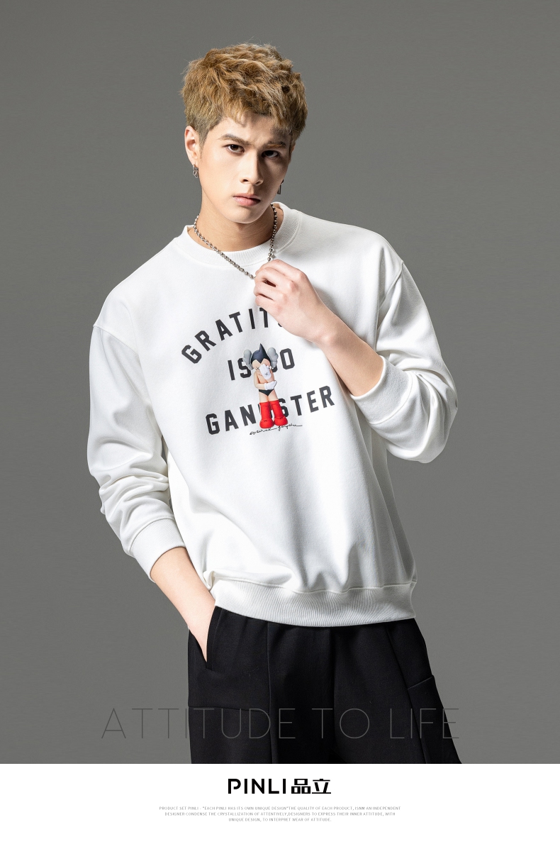 PINLI品立2024春季新款男士印花圆领休闲套头卫衣上衣BG233109040