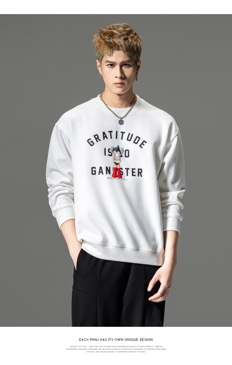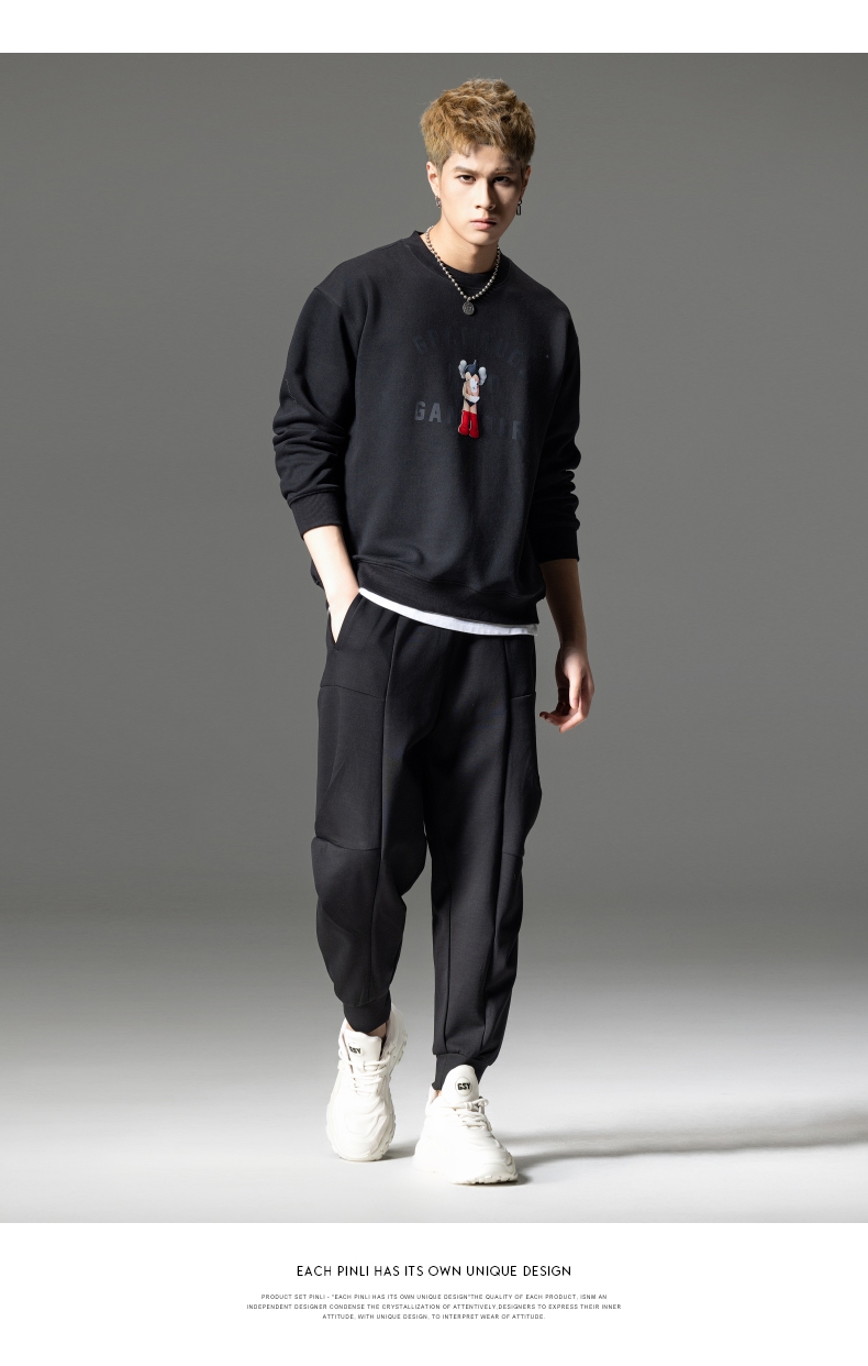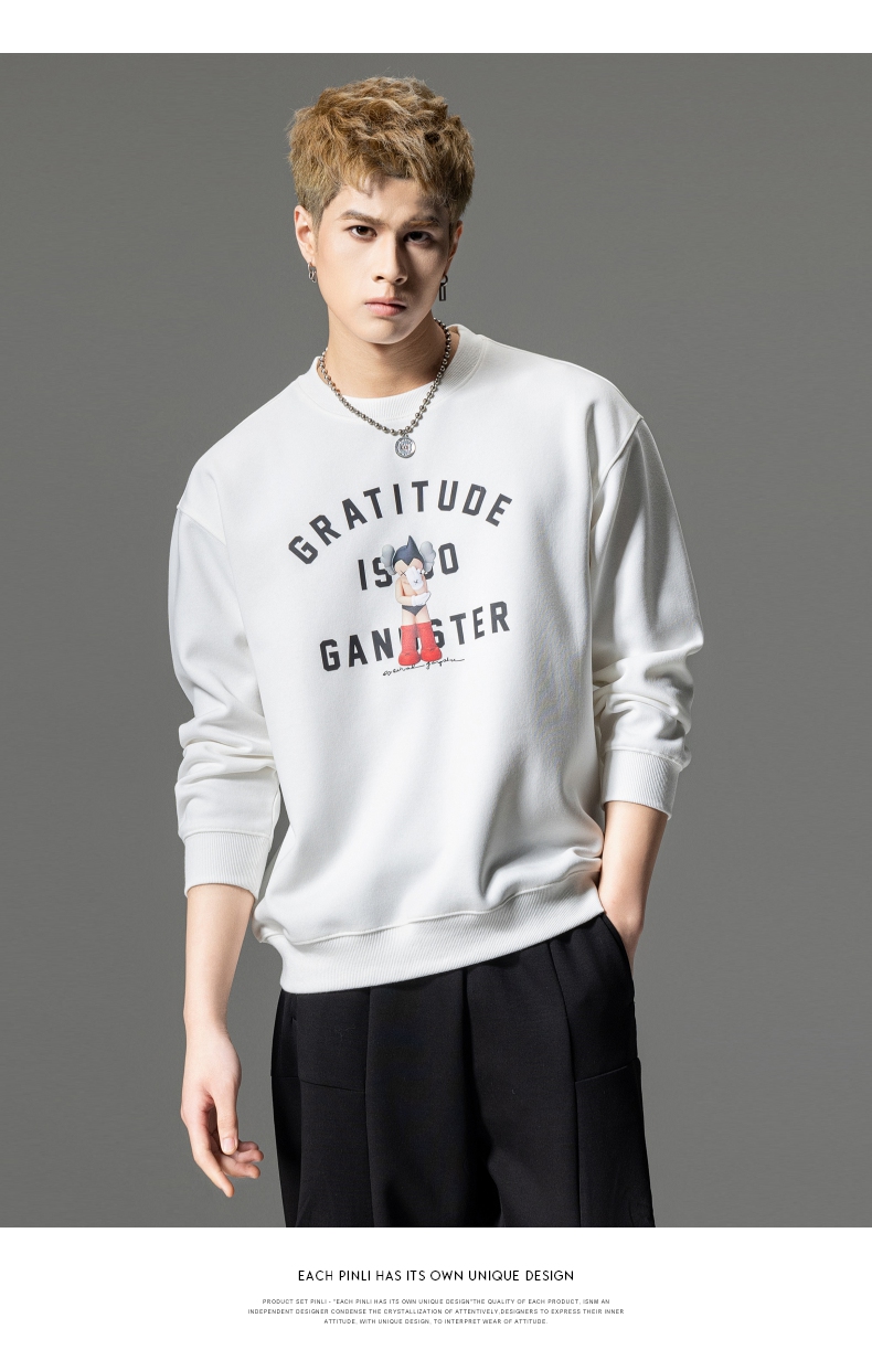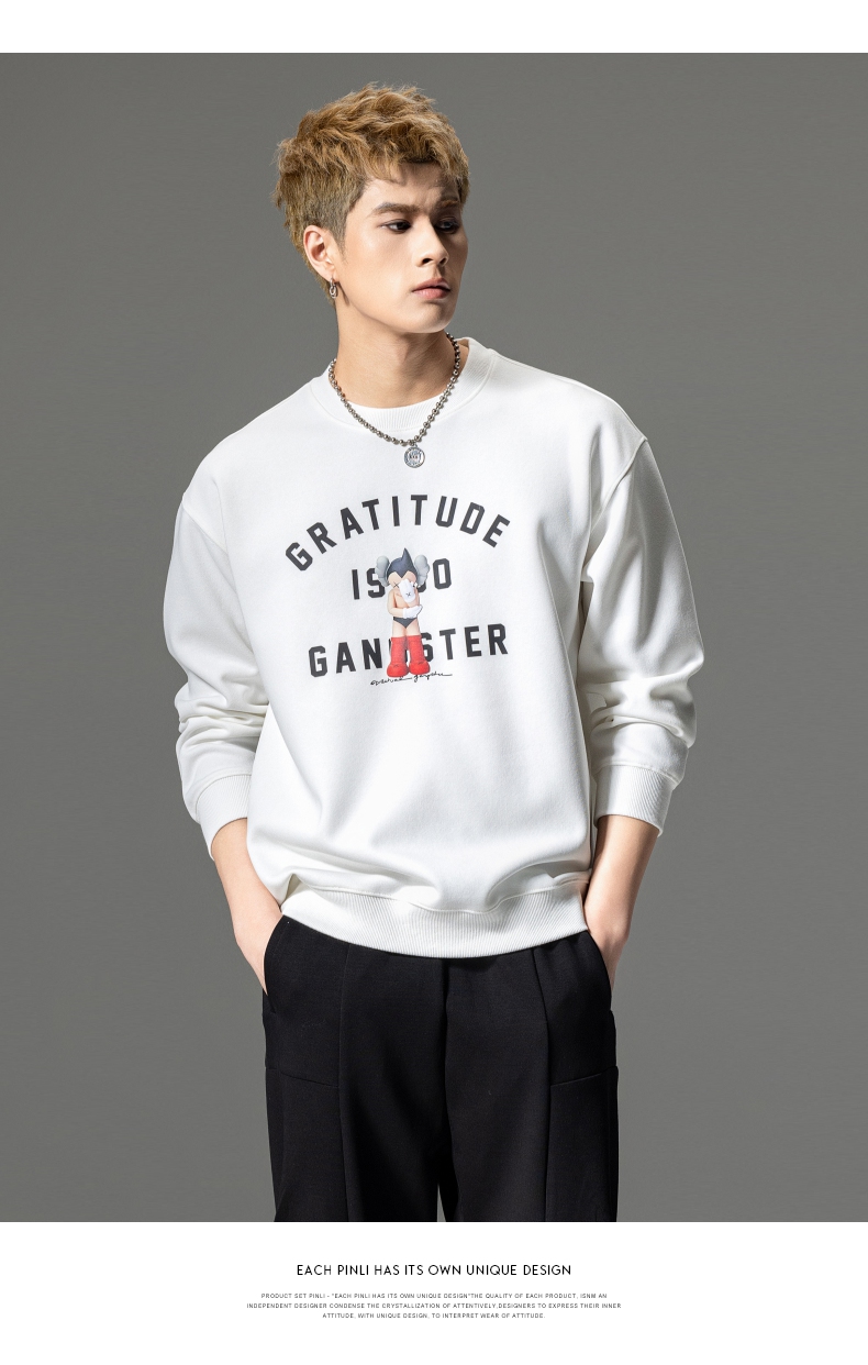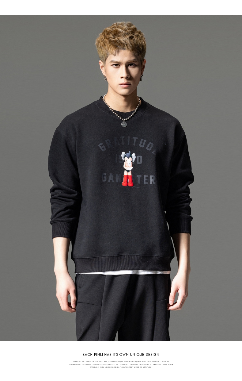 PINLI品立2024春季新款男士印花圆领休闲套头卫衣上衣BG233109040