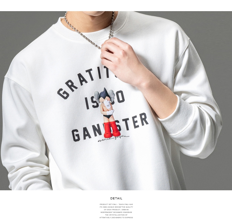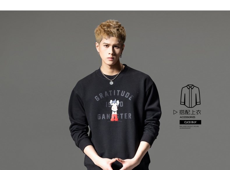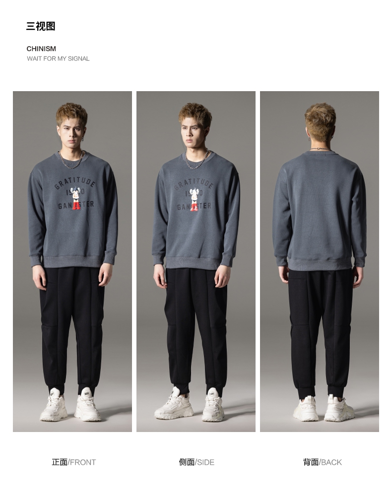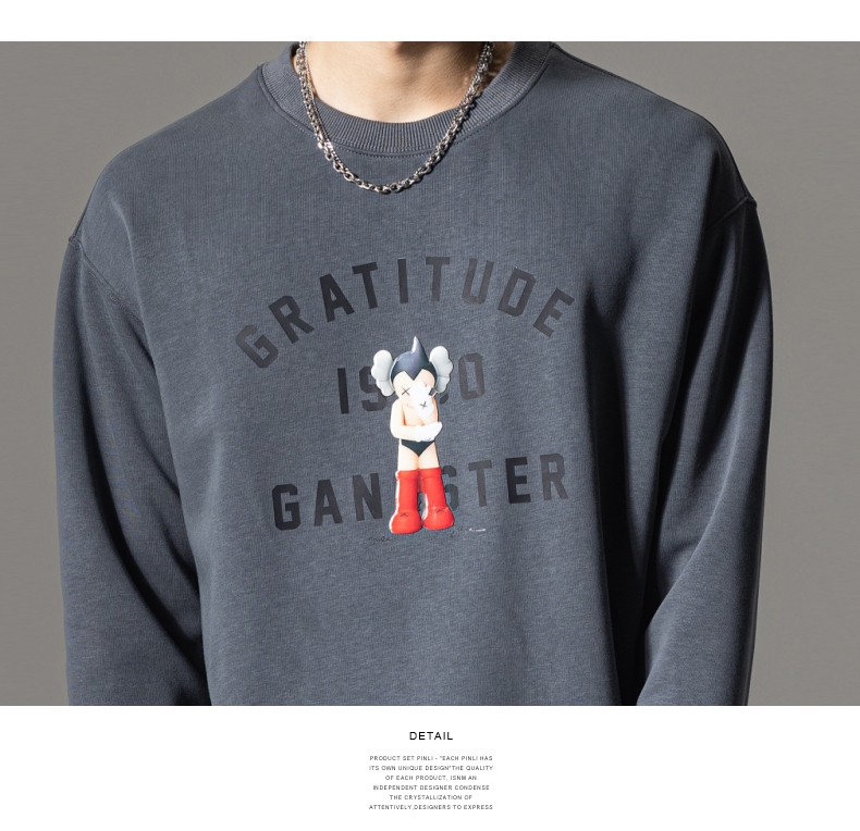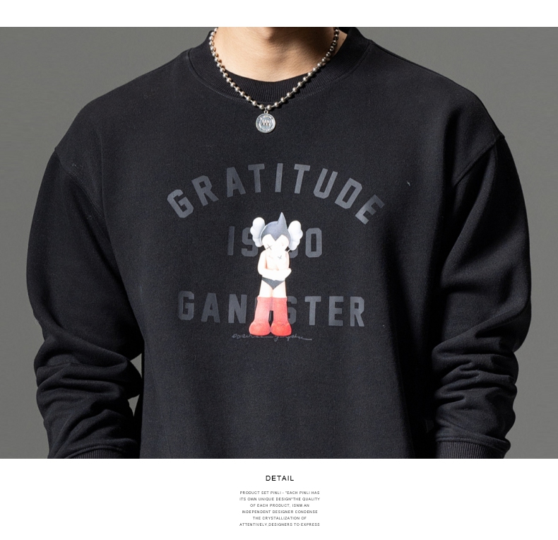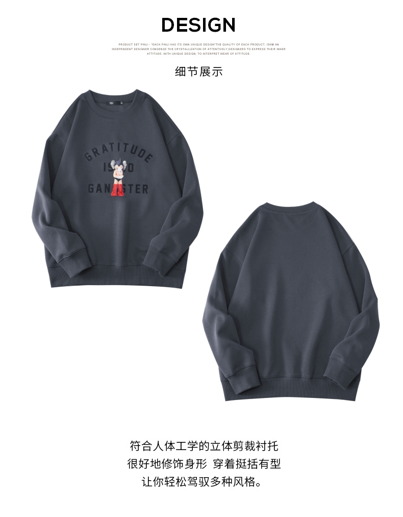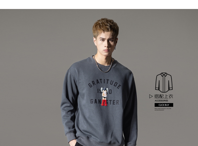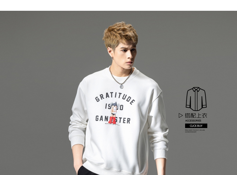 PINLI品立2024春季新款男士印花圆领休闲套头卫衣上衣BG233109040