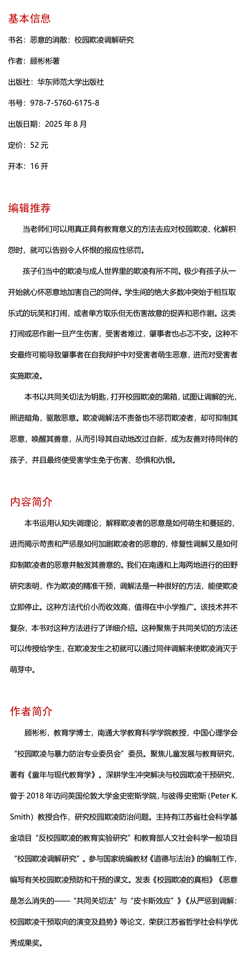恶意的消散 校园欺凌调解研究 反校园霸凌教育实验研 教育学