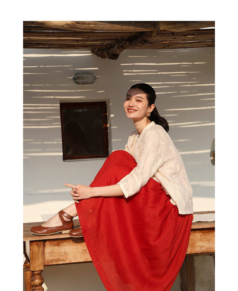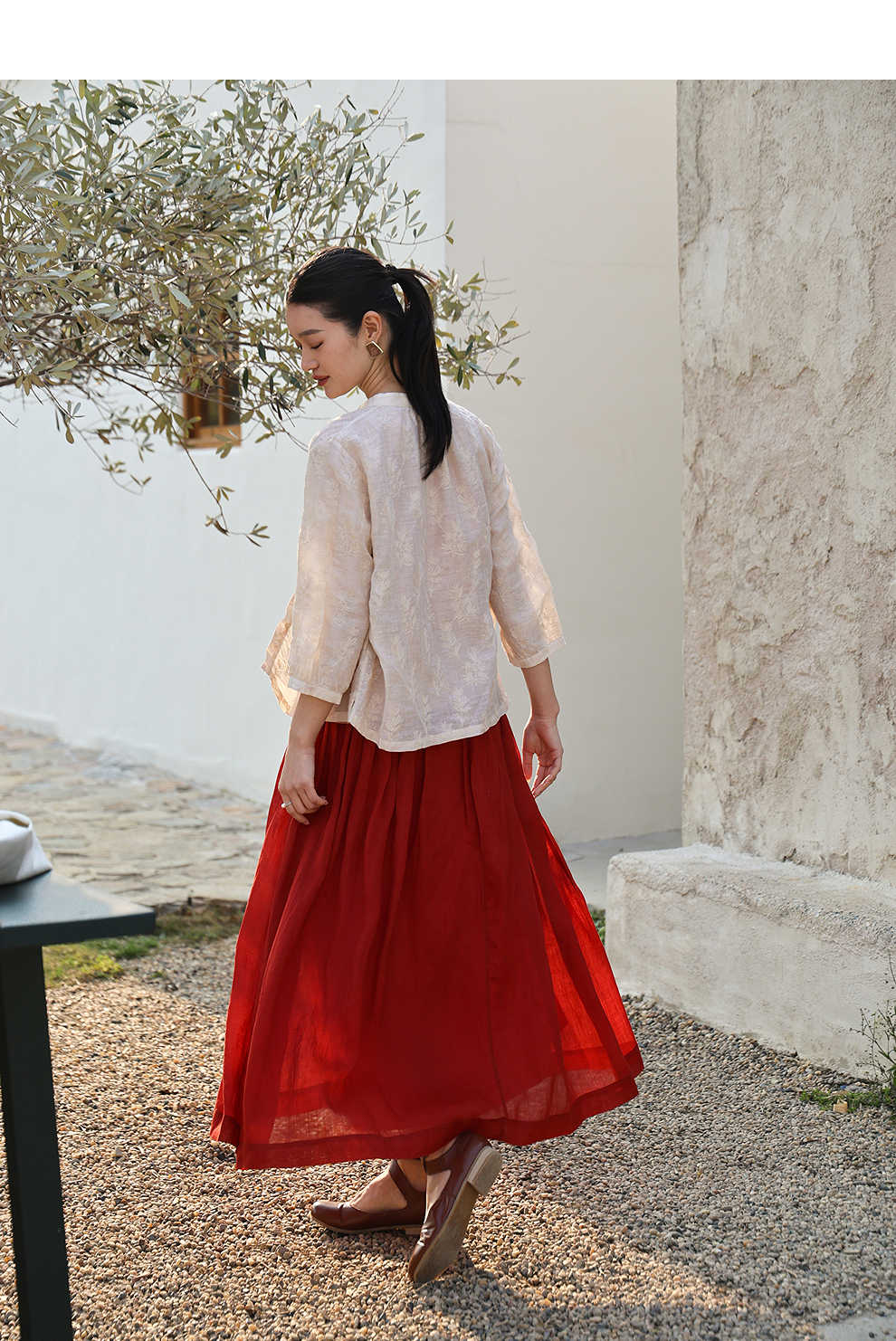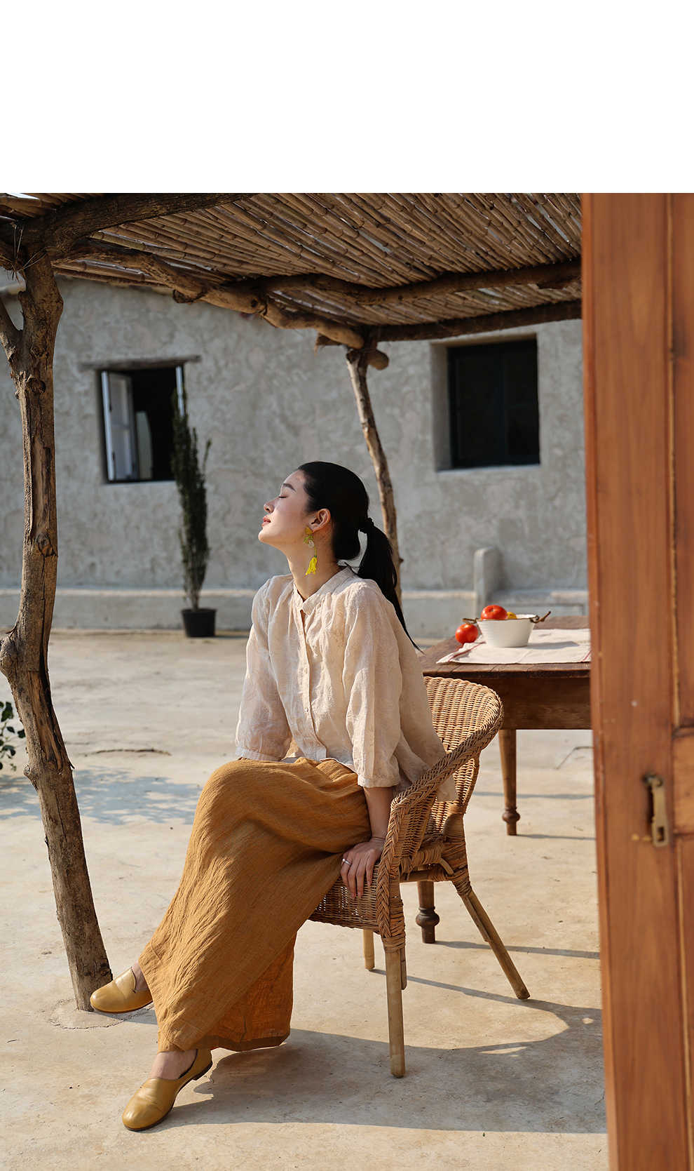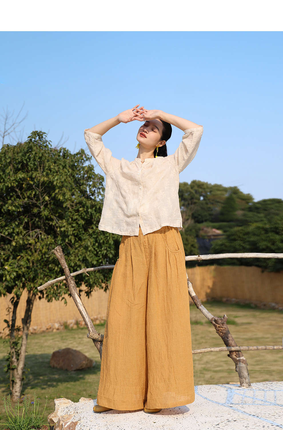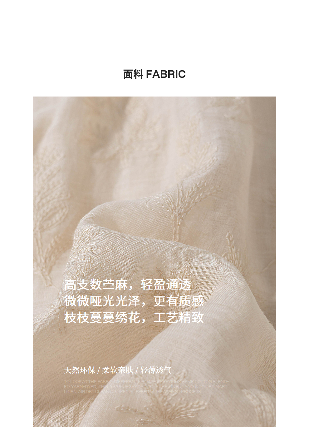 绽放旅行女装268朵/苎麻底绣花立领开襟七分袖衬衫温柔百搭开衫女