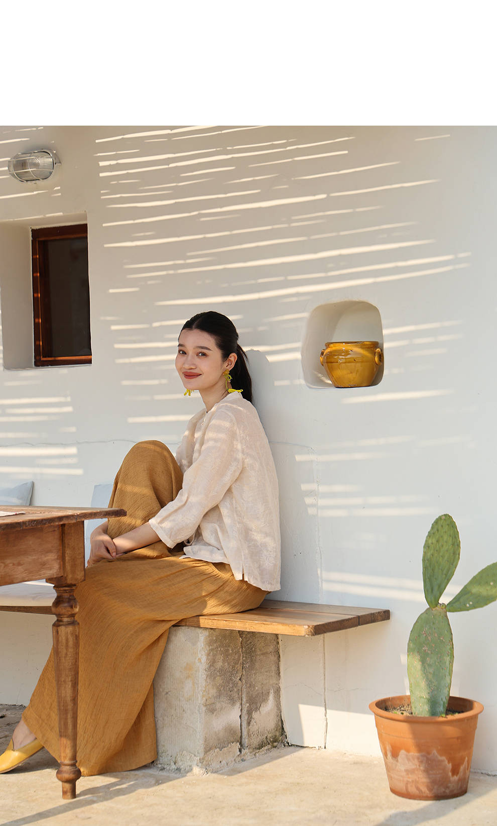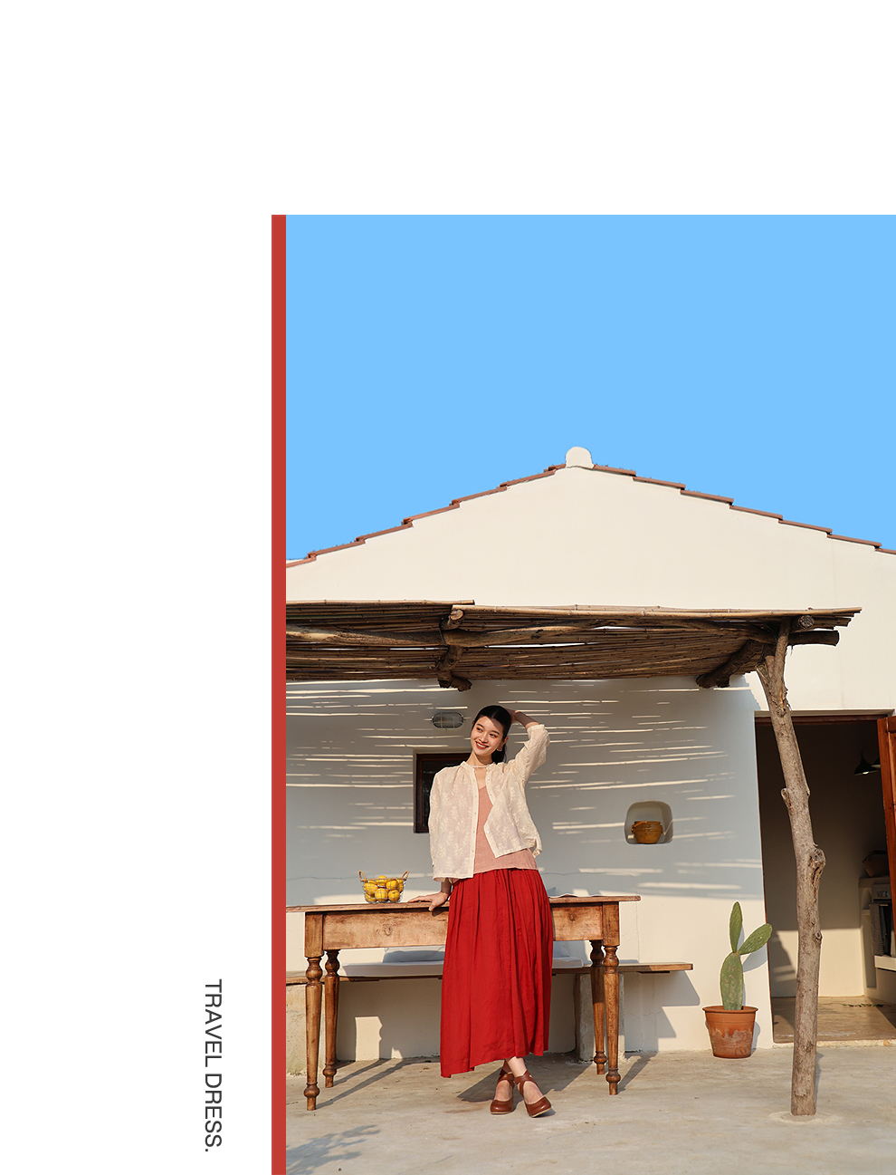 以天然亚麻为载体,融合热烈色彩与自在剪裁为身在城市、心怀远方的女性提供兼具美学与舒适的旅行着装