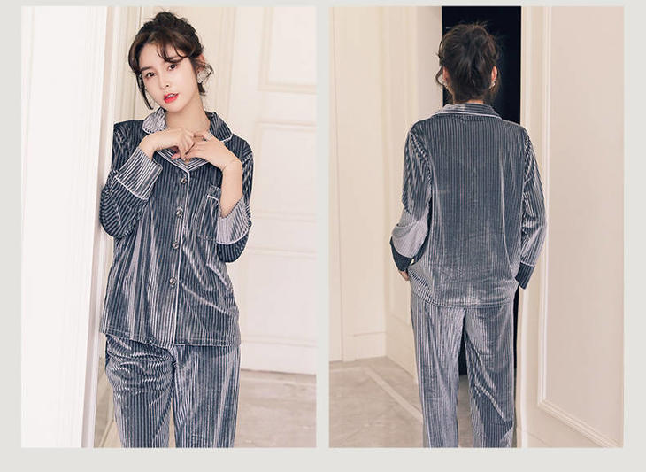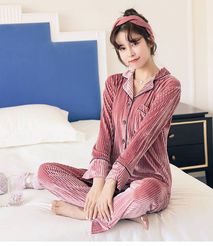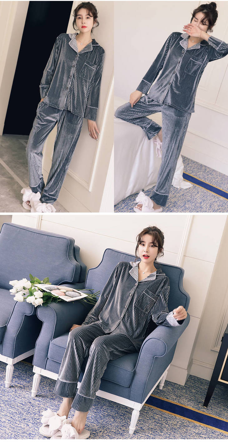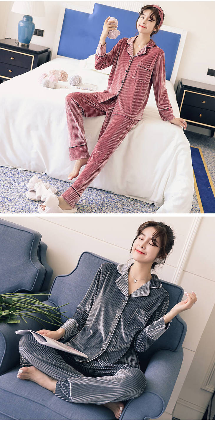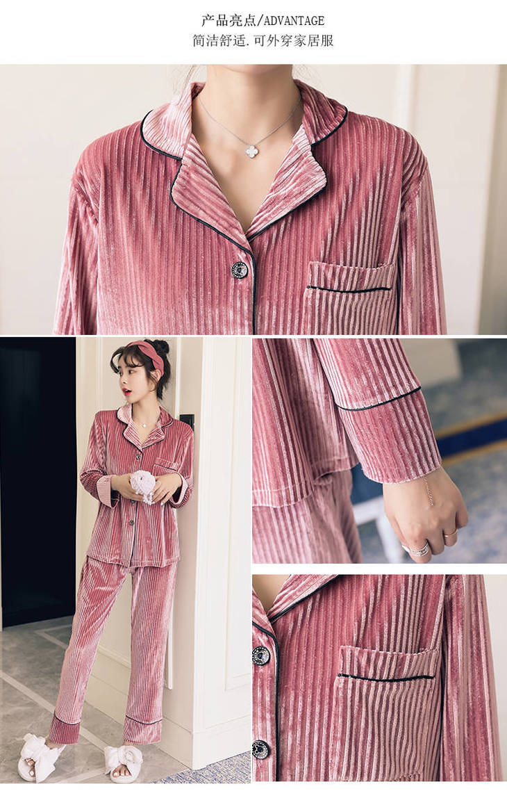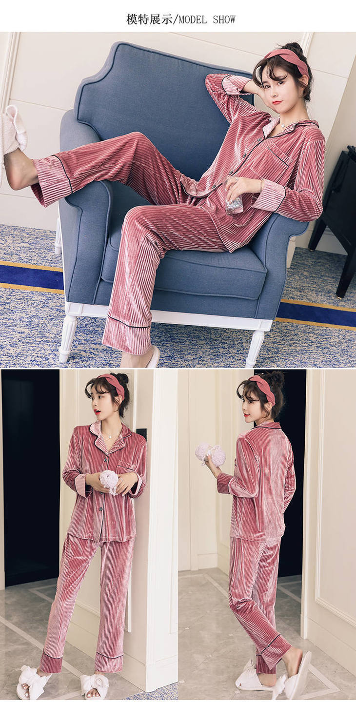 秋冬季金丝绒睡衣女长袖甜美性感家居服