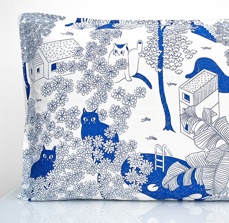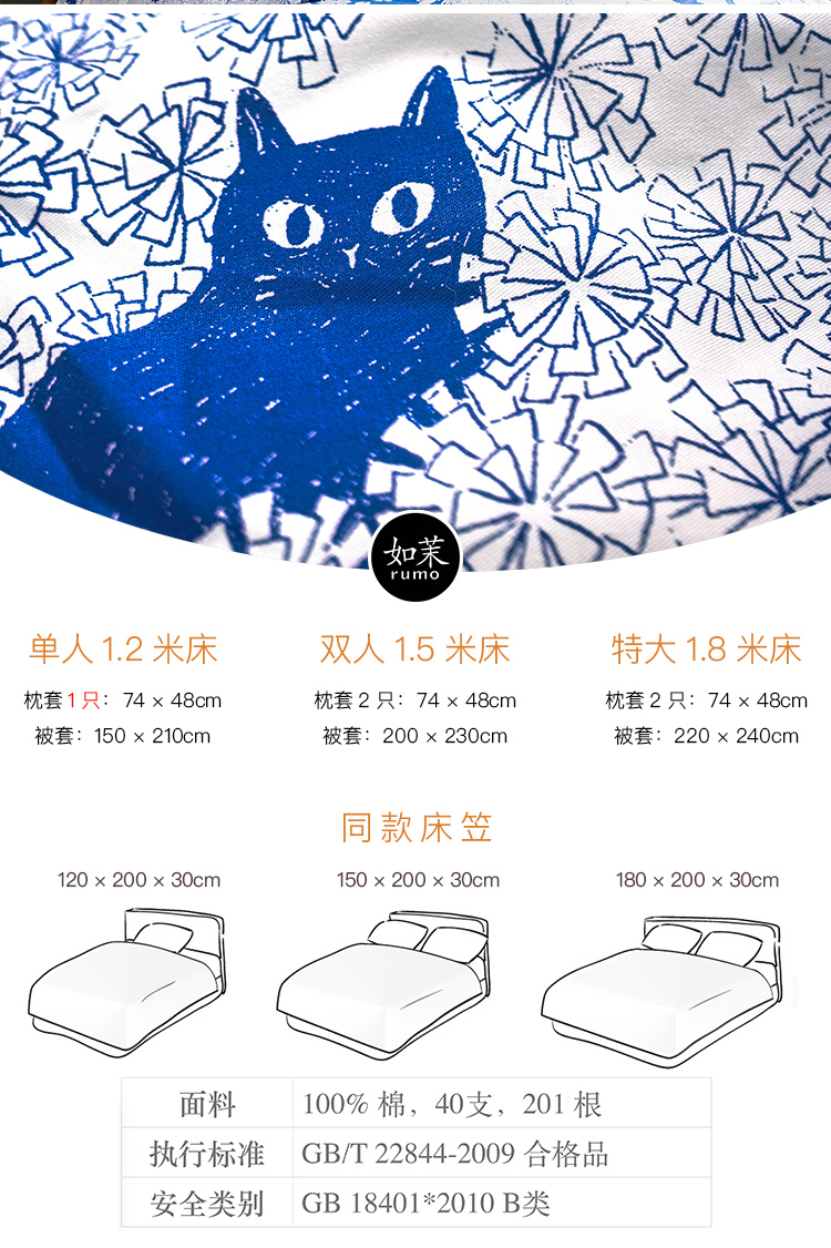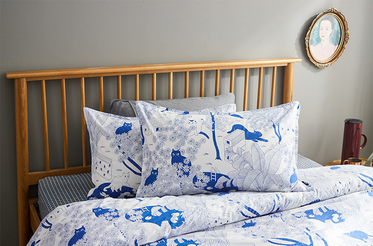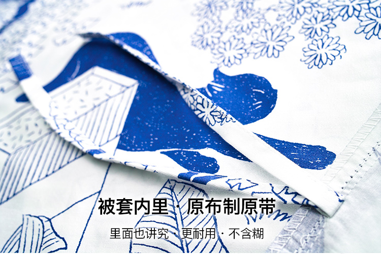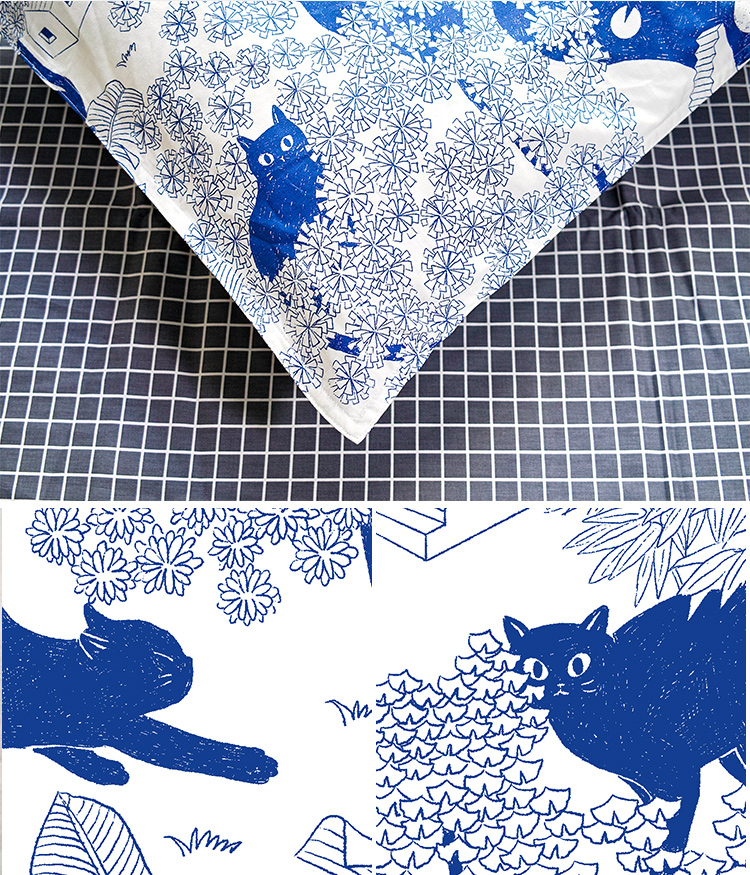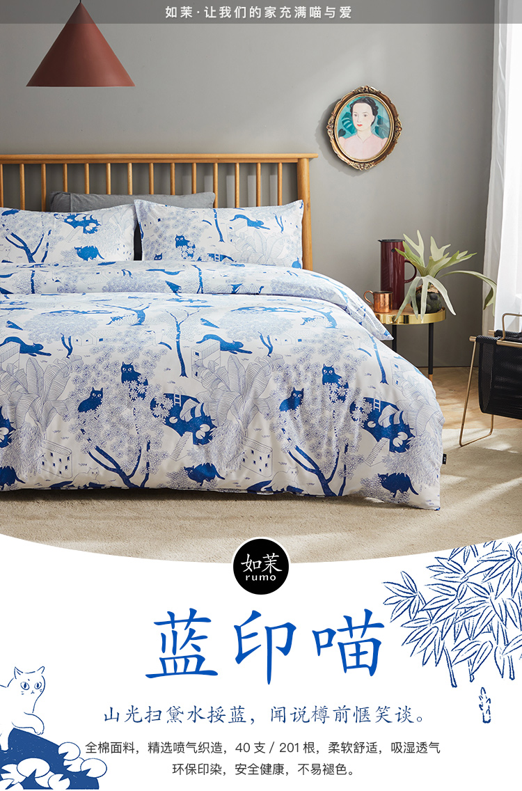 【幸运土猫】蓝印喵如茉全棉纯棉猫三四件套件柔软被套原创设计