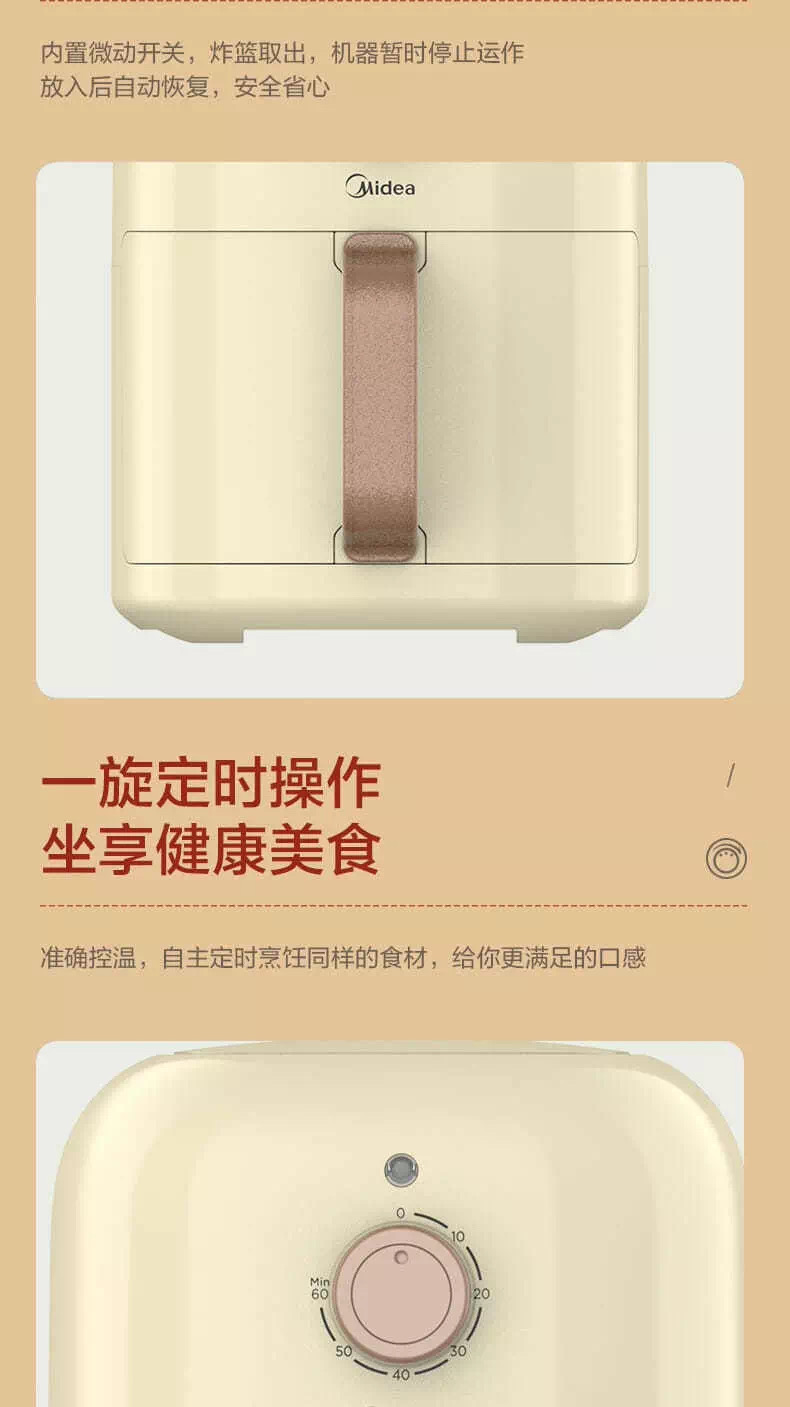 美的(Midea)商场同款空气炸锅 3L大容量 家用智能煎炸锅 空气热能烹饪多功能电炸锅 MF-AKZ3001