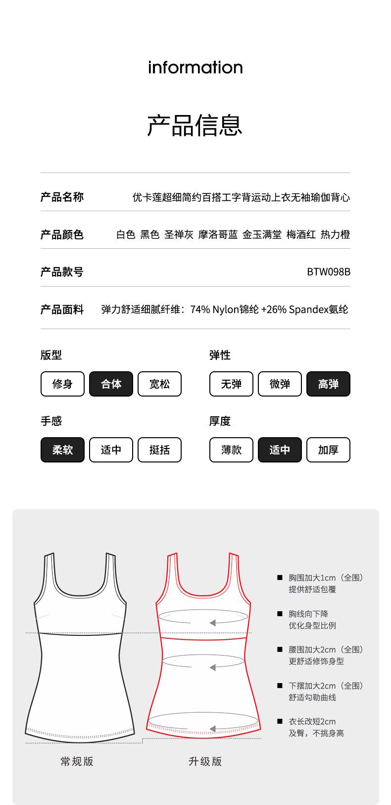 优卡莲简约时尚显瘦美背百搭工字无袖速干弹力瑜伽背心BTW098B