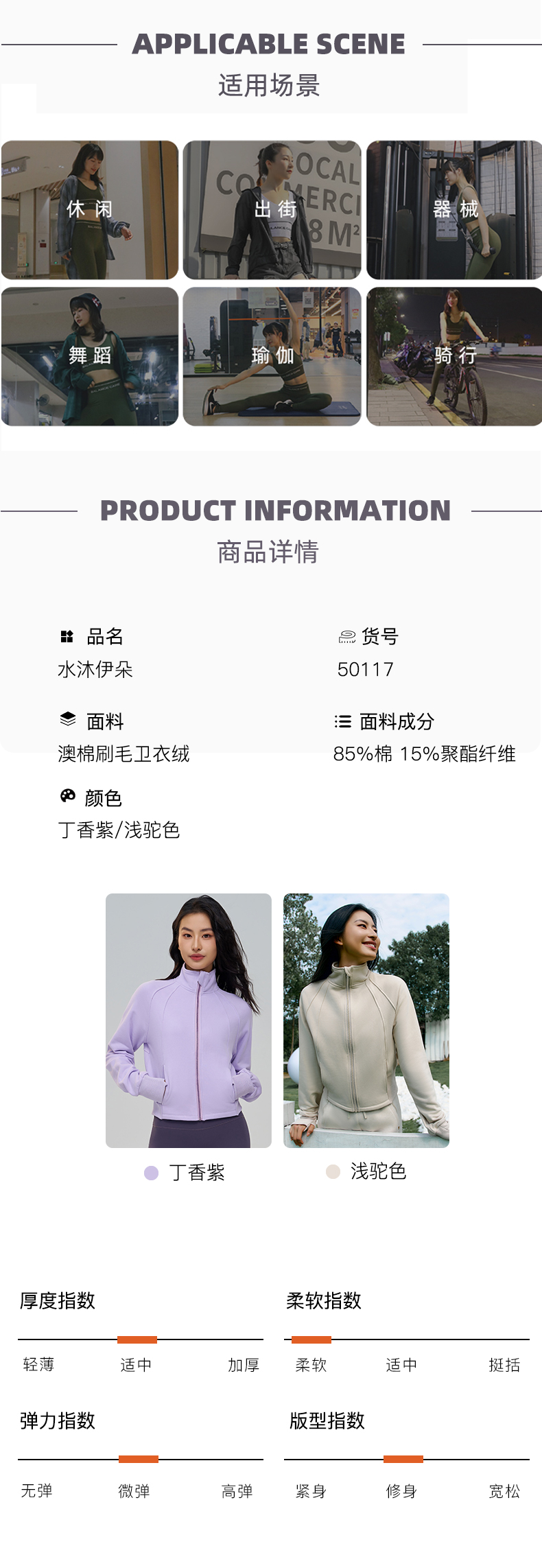 SMOEDOD/水沐伊朵澳棉抓绒瑜伽外套女秋冬软糯舒适休闲保暖50117