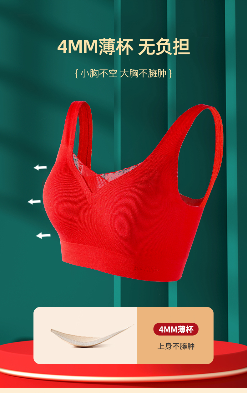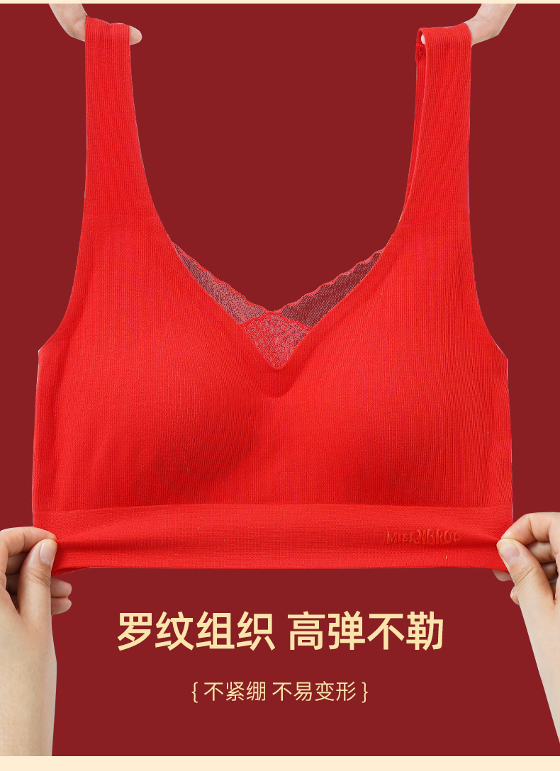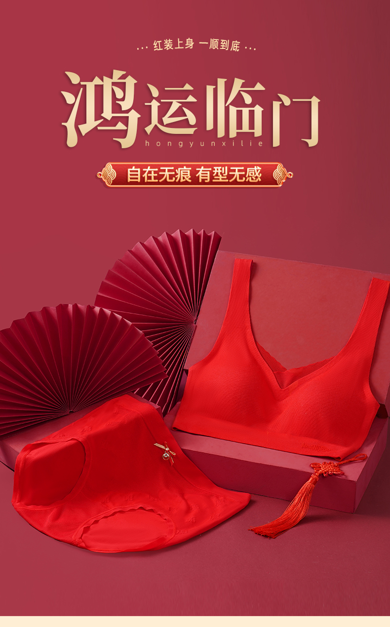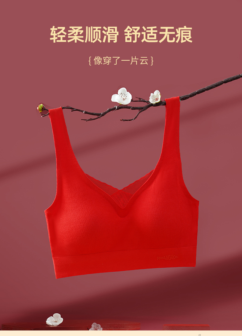 雅黛丽本命年内衣套装女红色结婚新娘无痕无钢圈胸罩亲肤舒适文胸