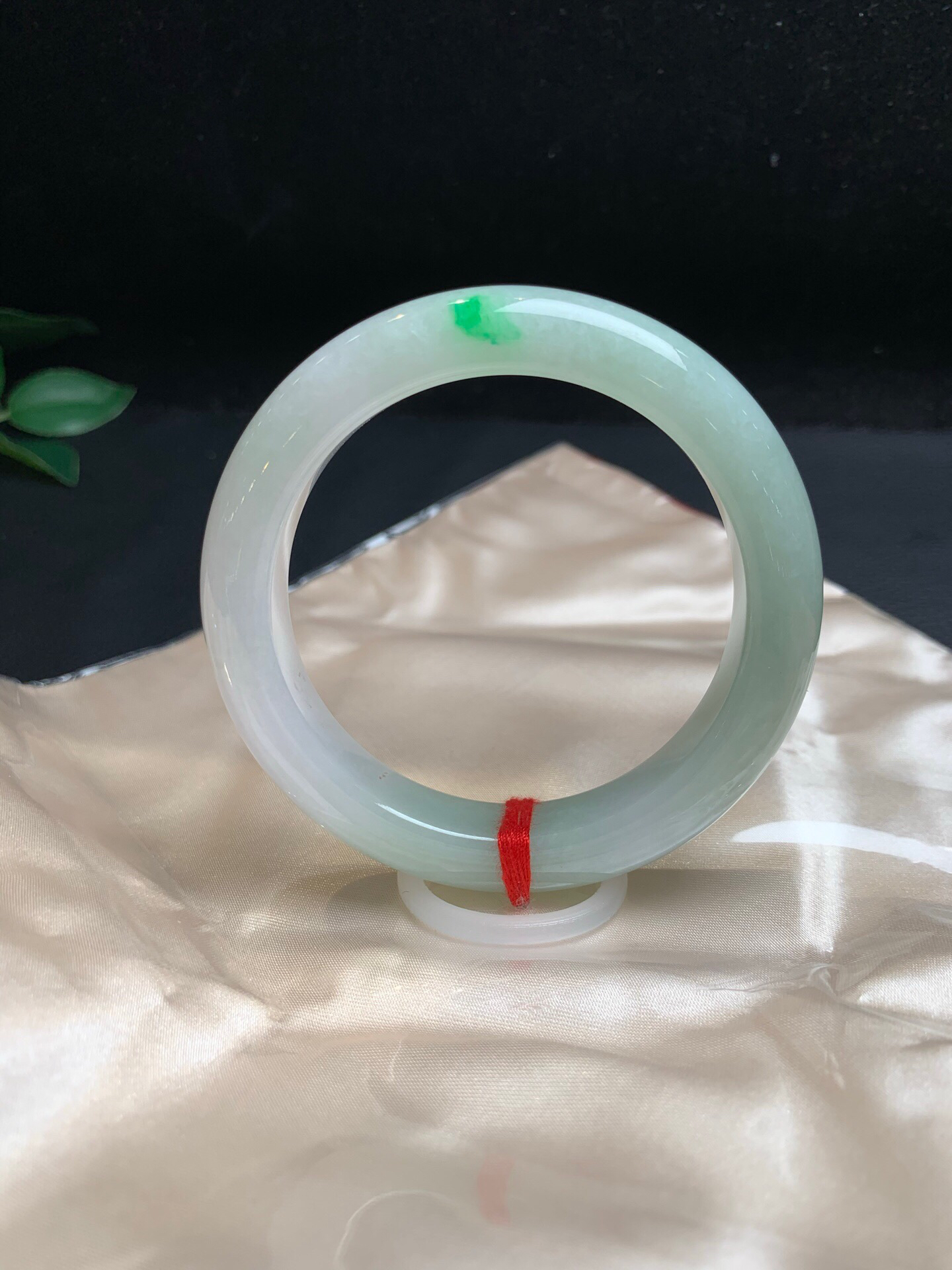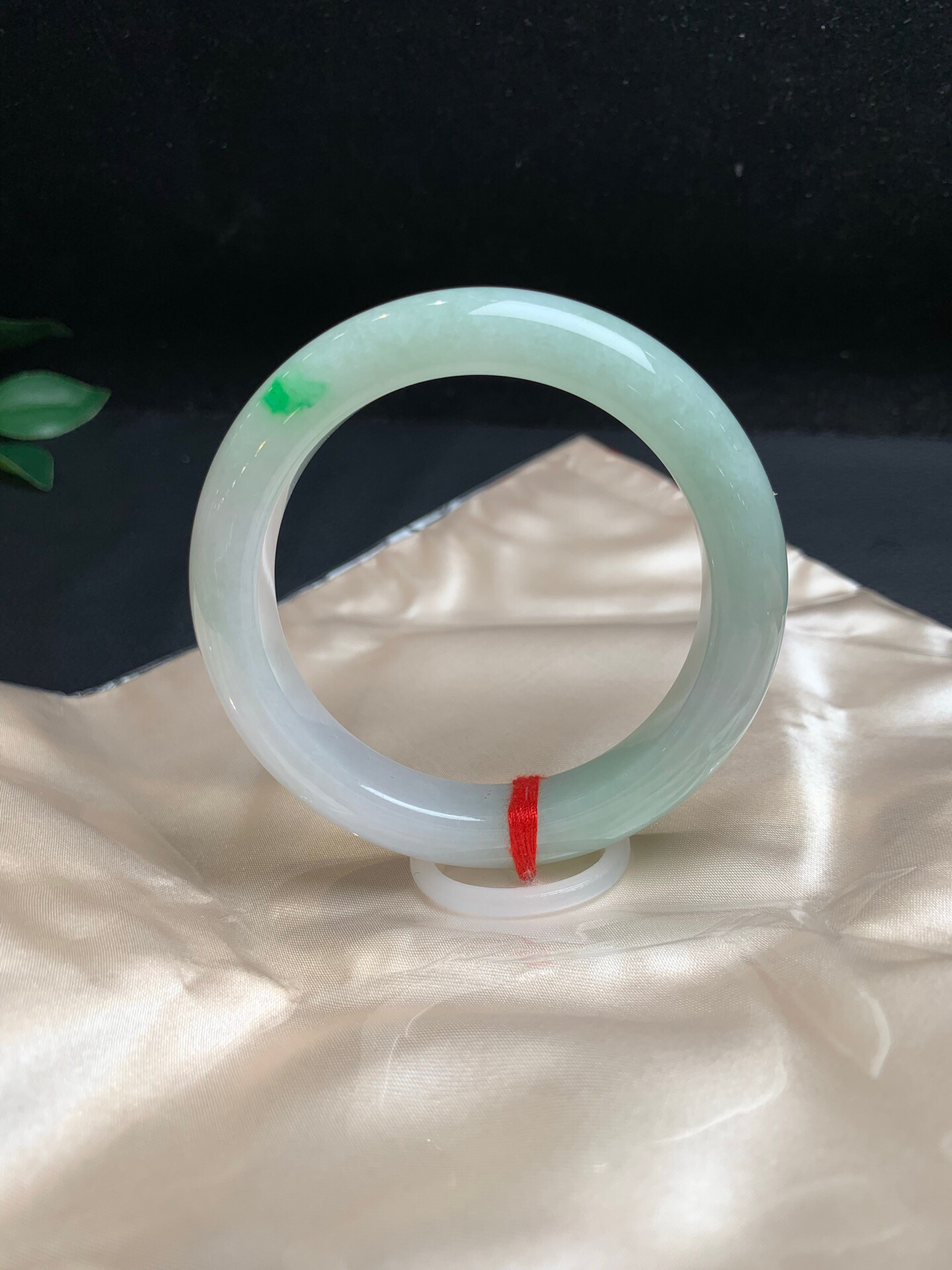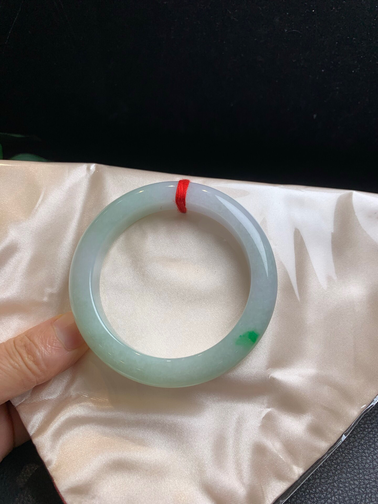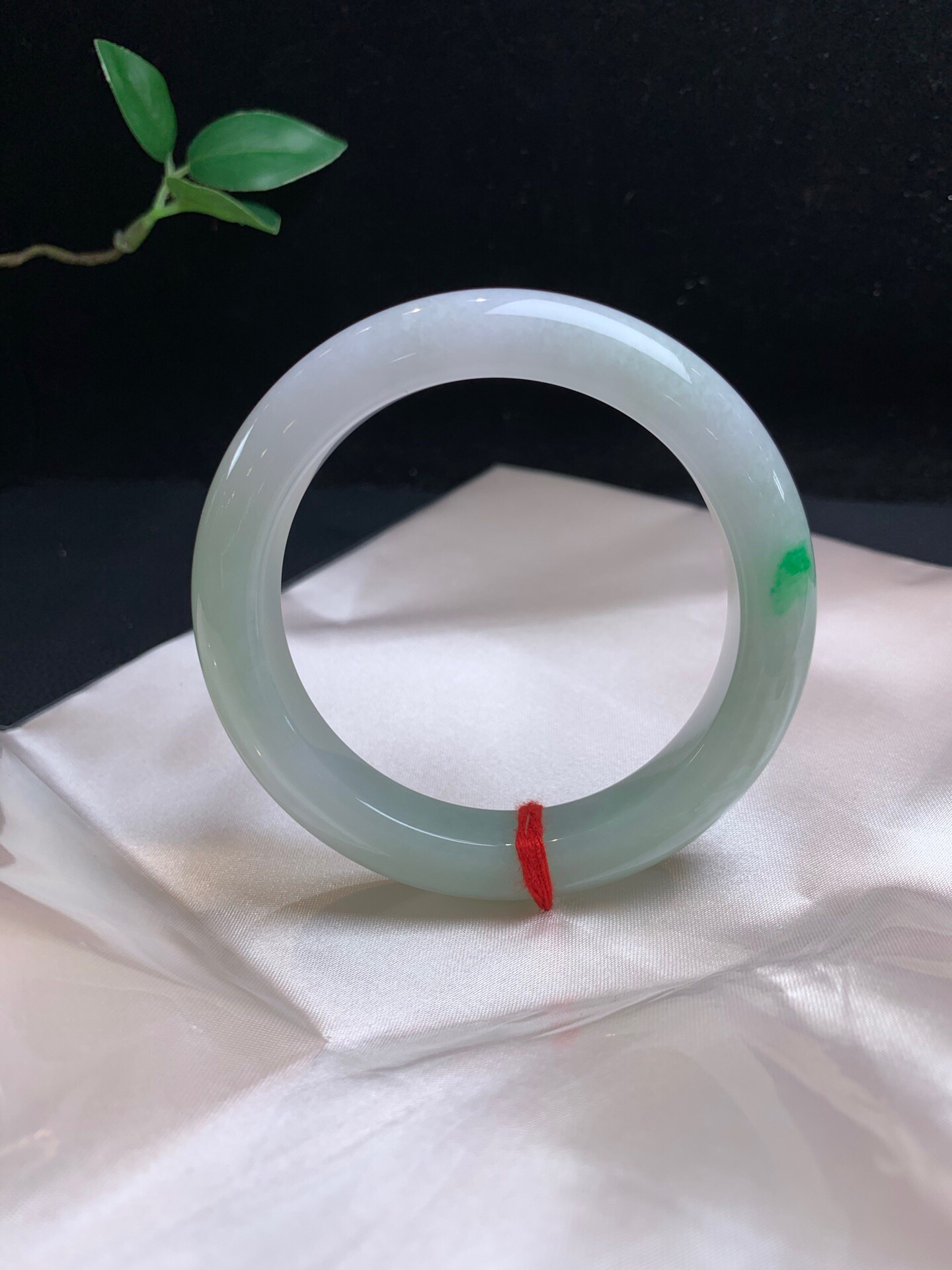 620104,57.8飘阳绿手镯,12.4-9.5mm,底妆非常细腻、带些绿底色,一抹阳绿色。干净完美 ,超值价💰17900 #优石客珠宝#香玉荟萃