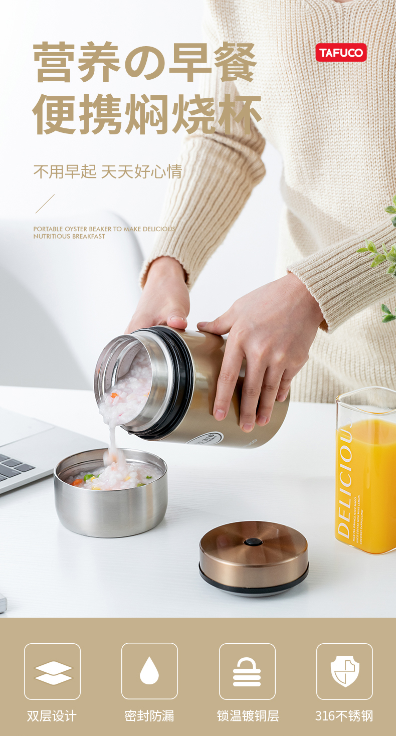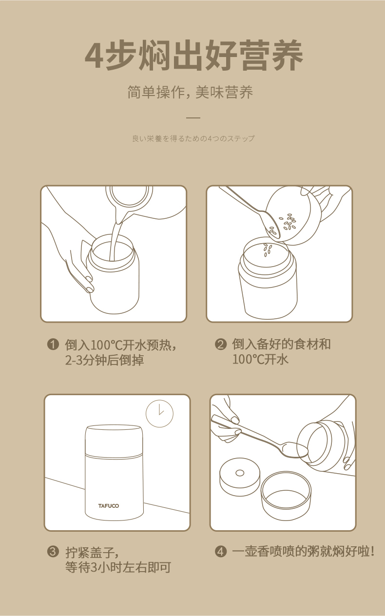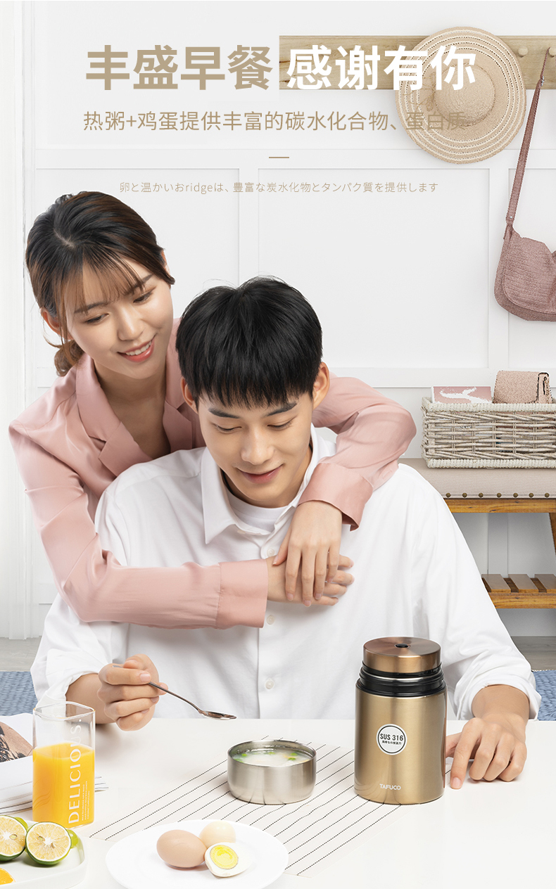 日本-泰福高 焖烧杯保温桶饭盒便携焖烧壶粥桶学生闷烧罐焖粥神器女-F