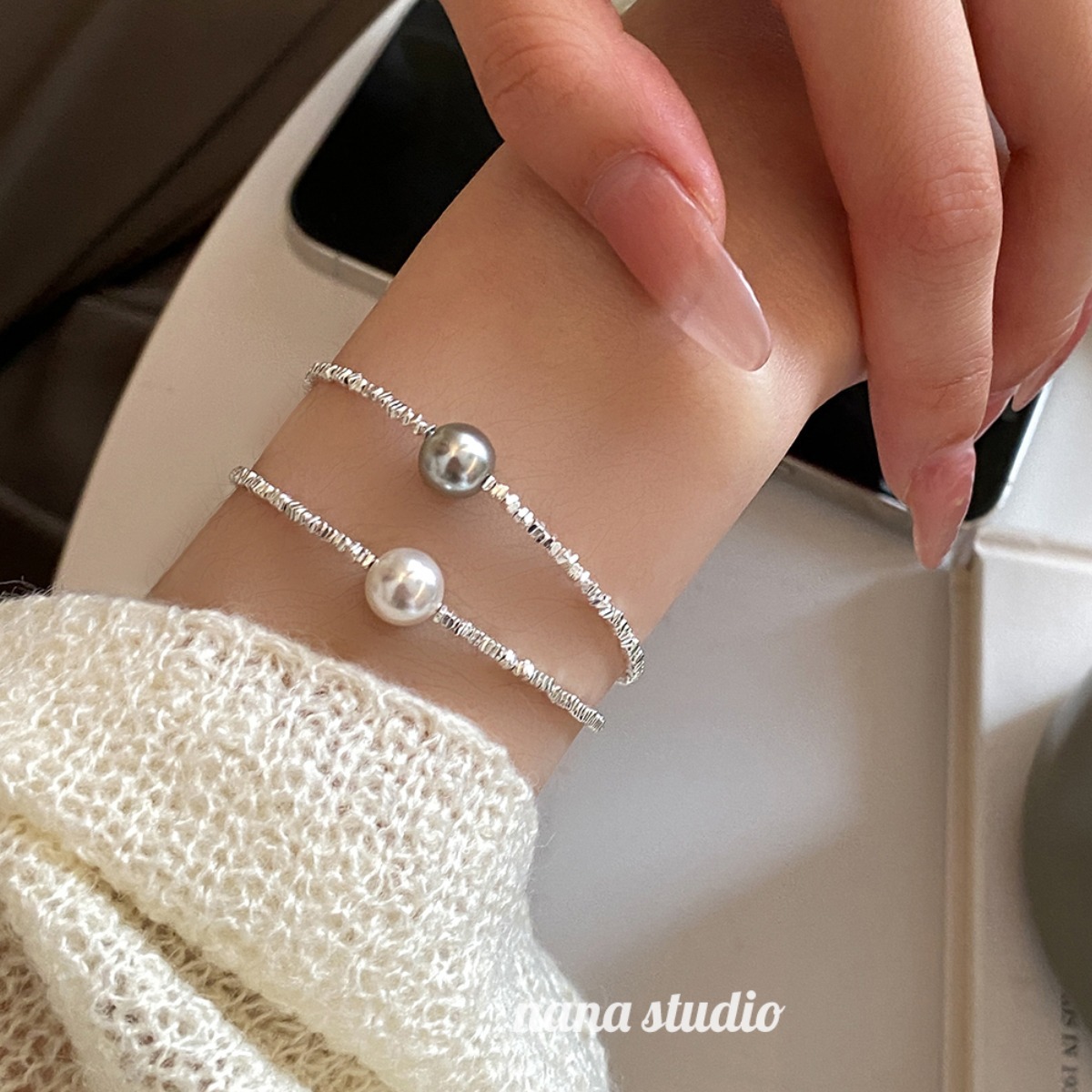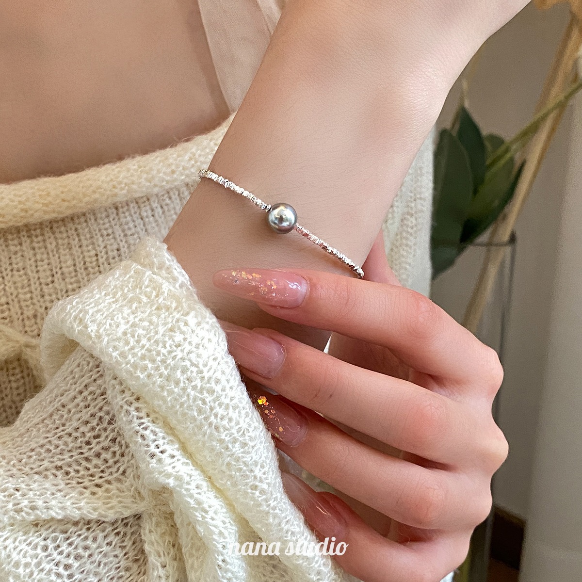 【礼品盒包装!施家珍珠碎银子手链】2023新款s925纯银,施家珍珠碎银子手链,珍珠细腻圆润,闪耀着温润光泽,女款小众,碎银几两手饰,是逛街、约会、晚宴等多种场合的完美搭配选择。sh