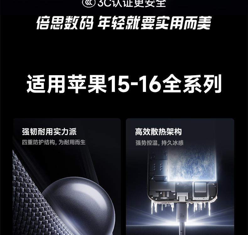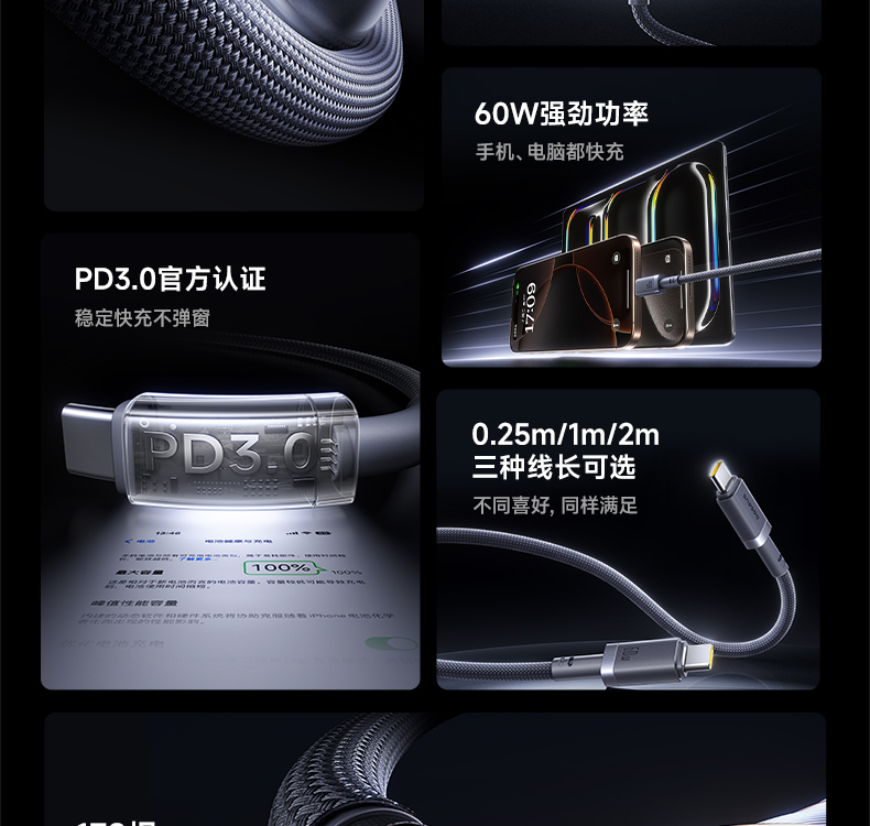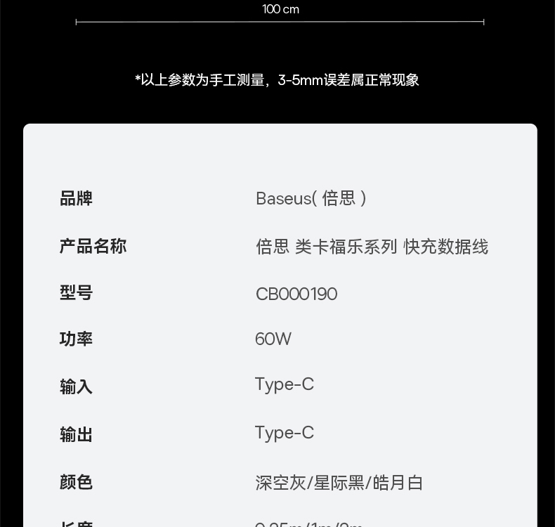 倍思 类卡福乐系列 快充数据线Type-C to Type-C 60W