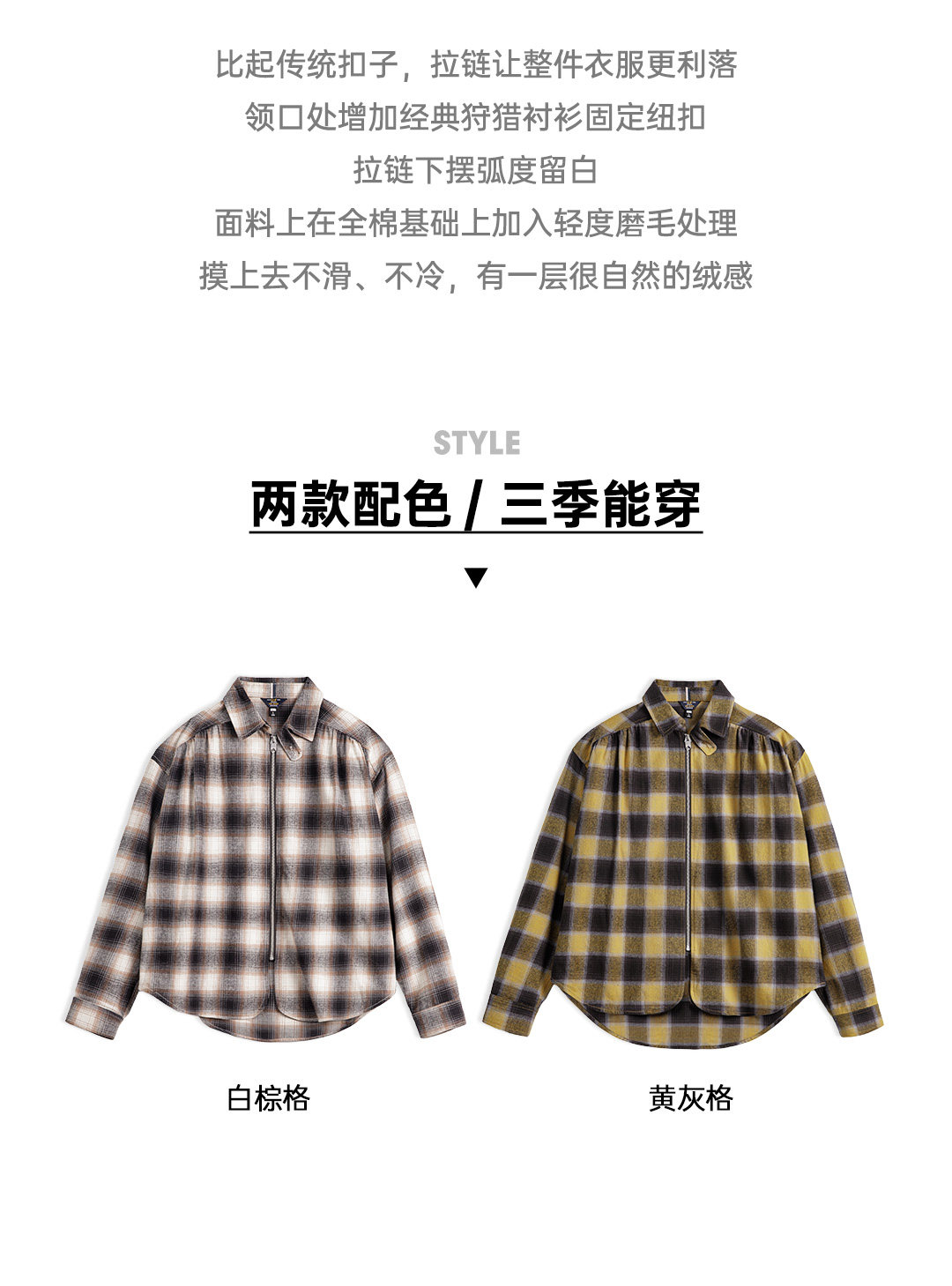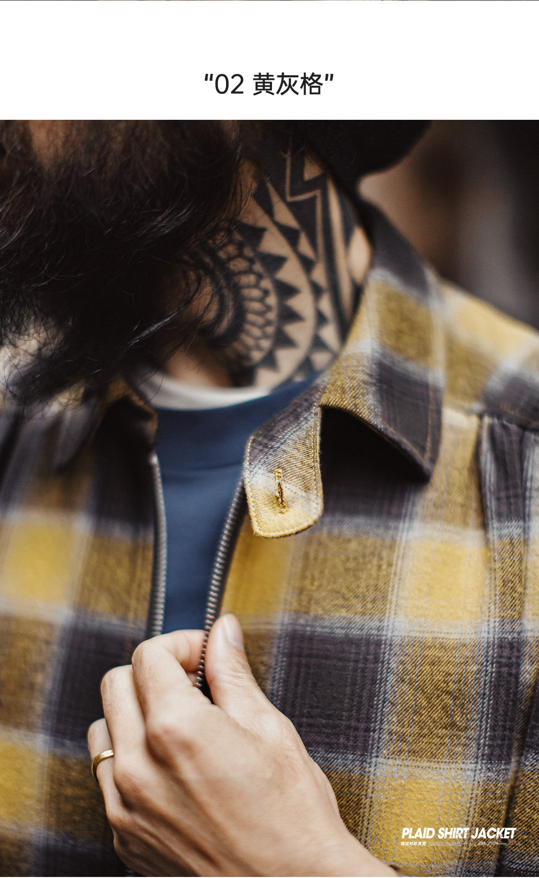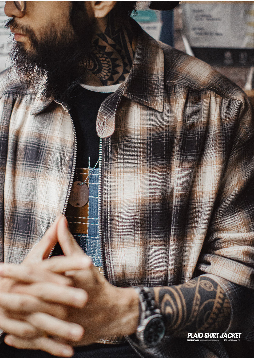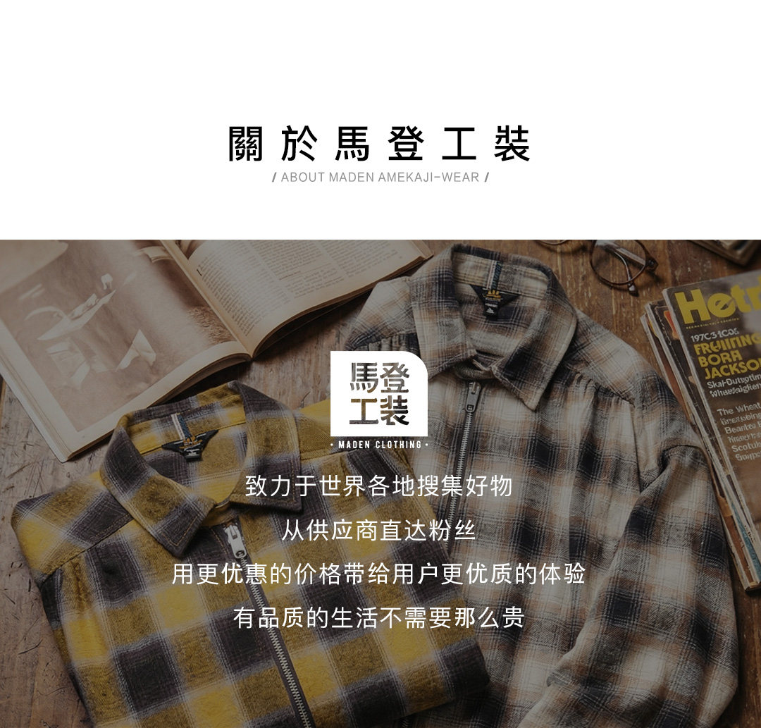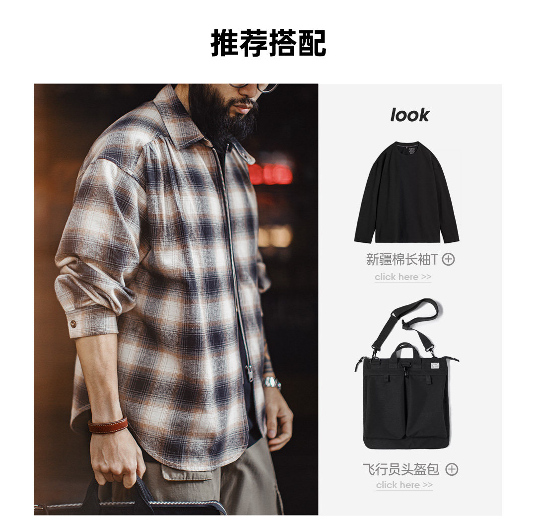 马登工装美式复古格子拉链衬衫翻领格纹纯棉外套开衫长袖衬衣男春