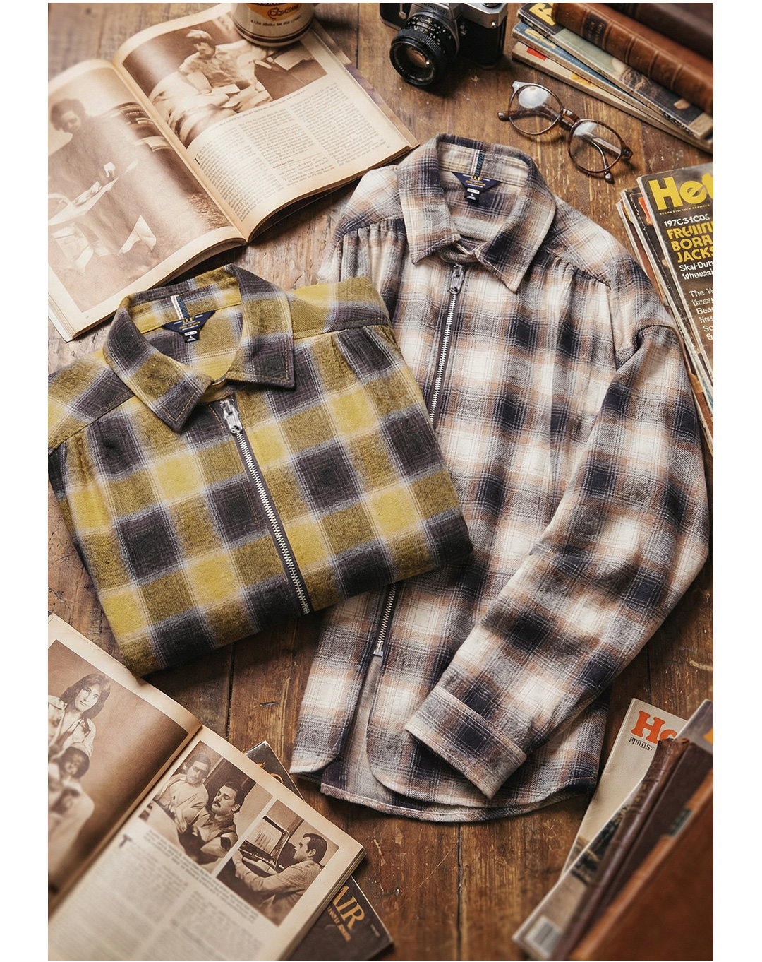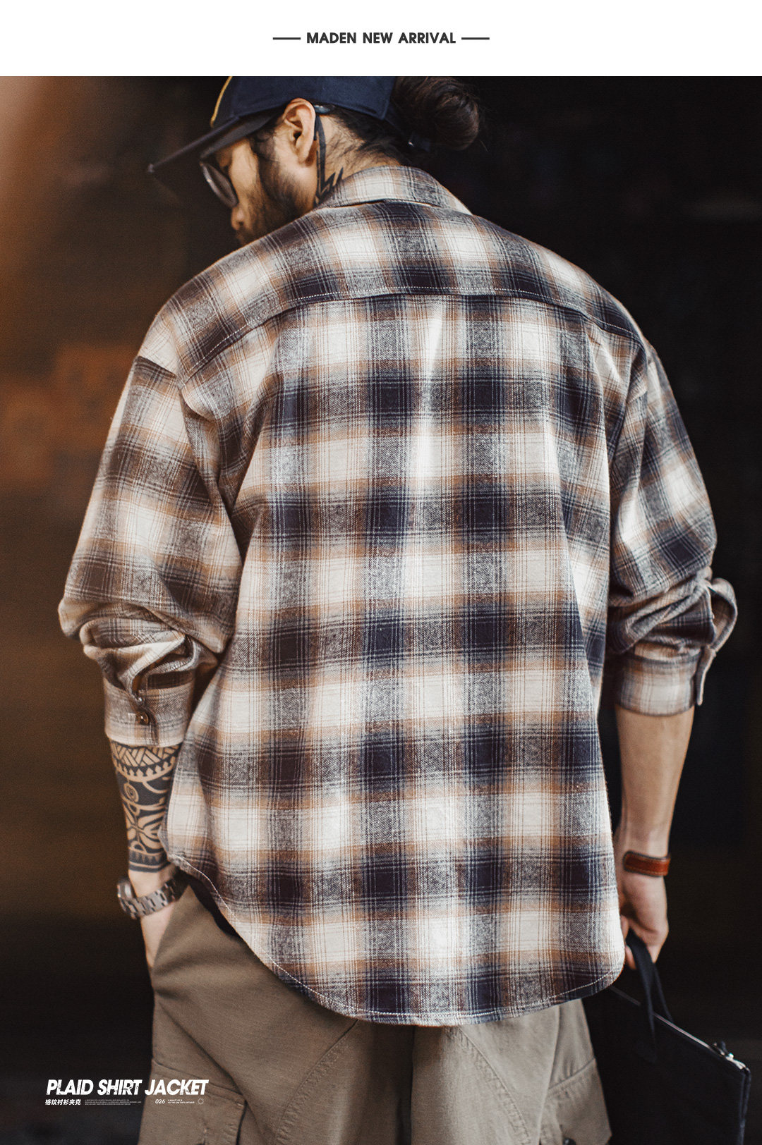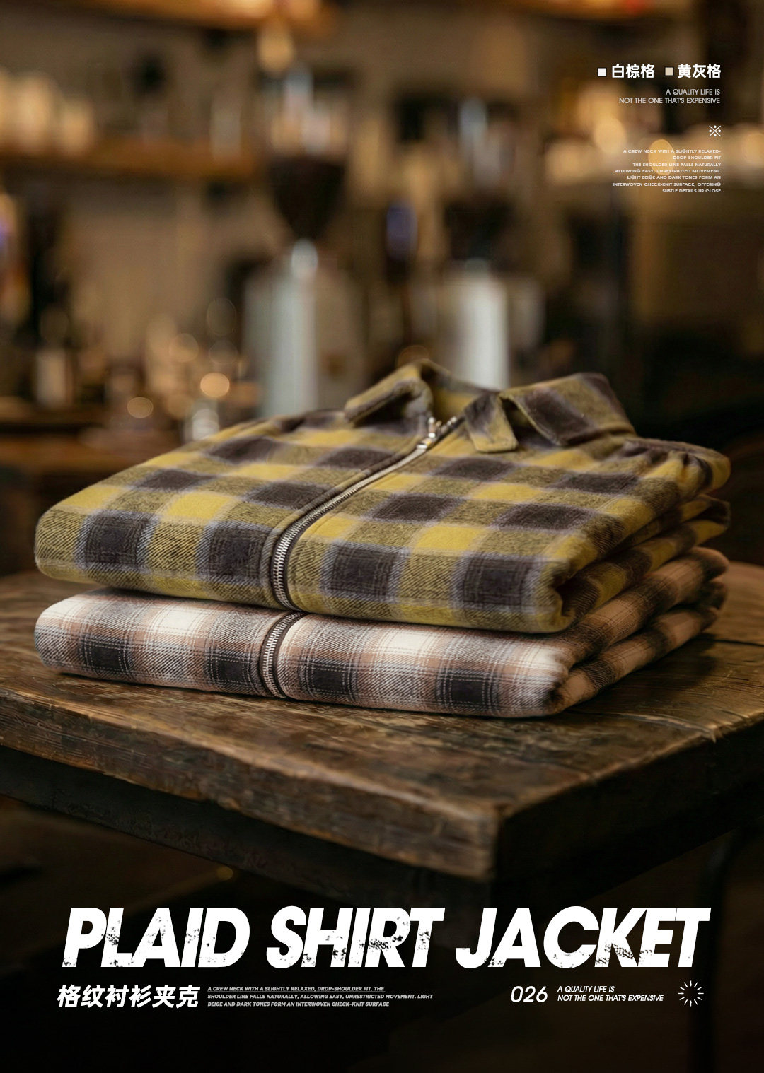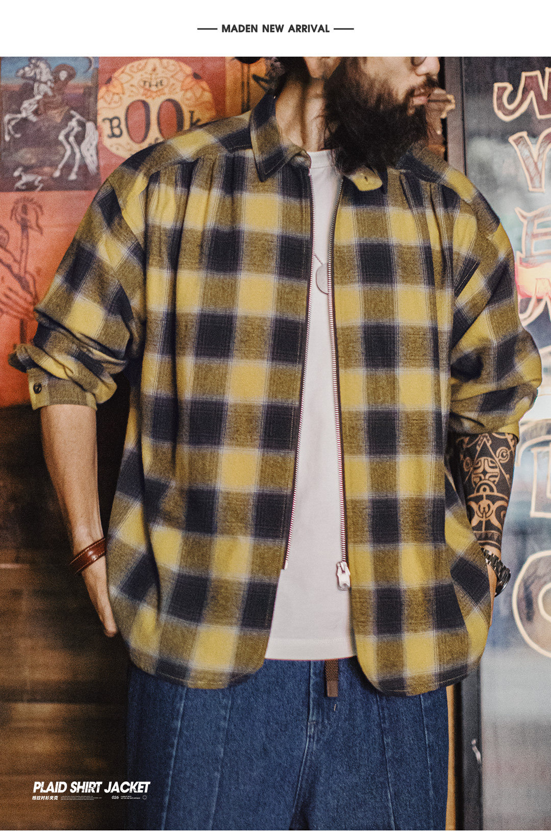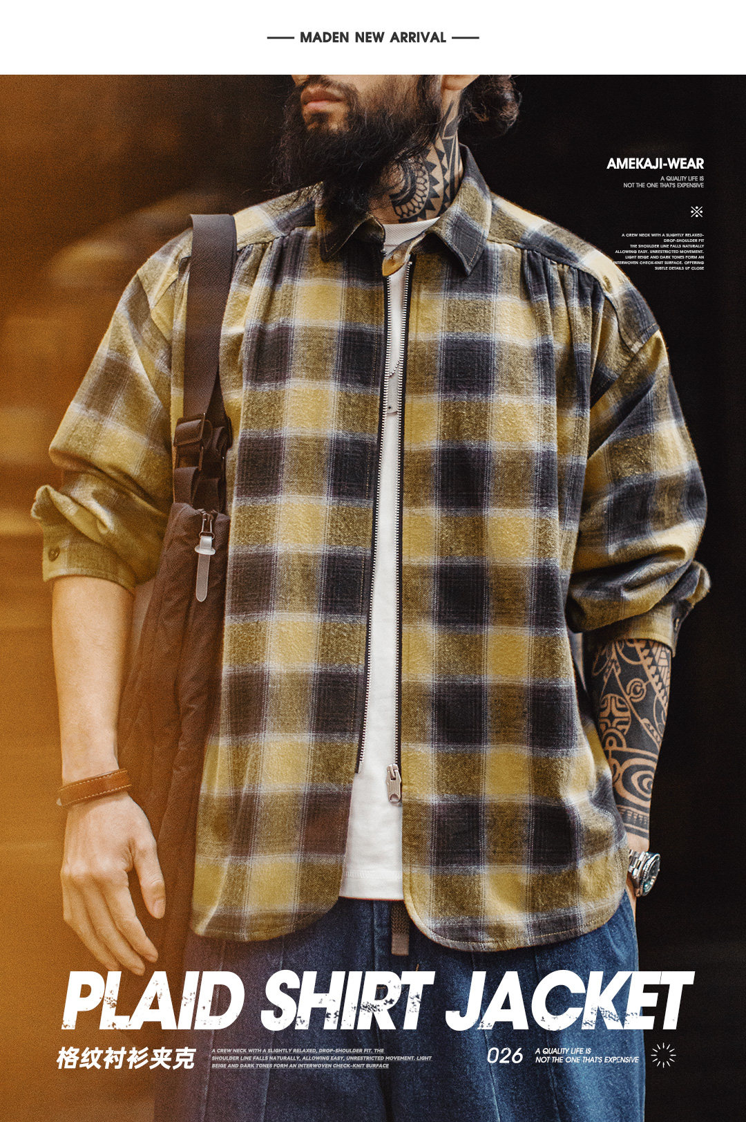 马登工装美式复古格子拉链衬衫翻领格纹纯棉外套开衫长袖衬衣男春