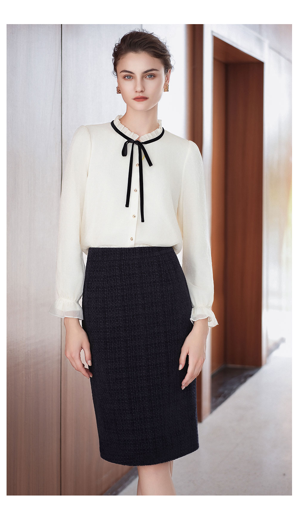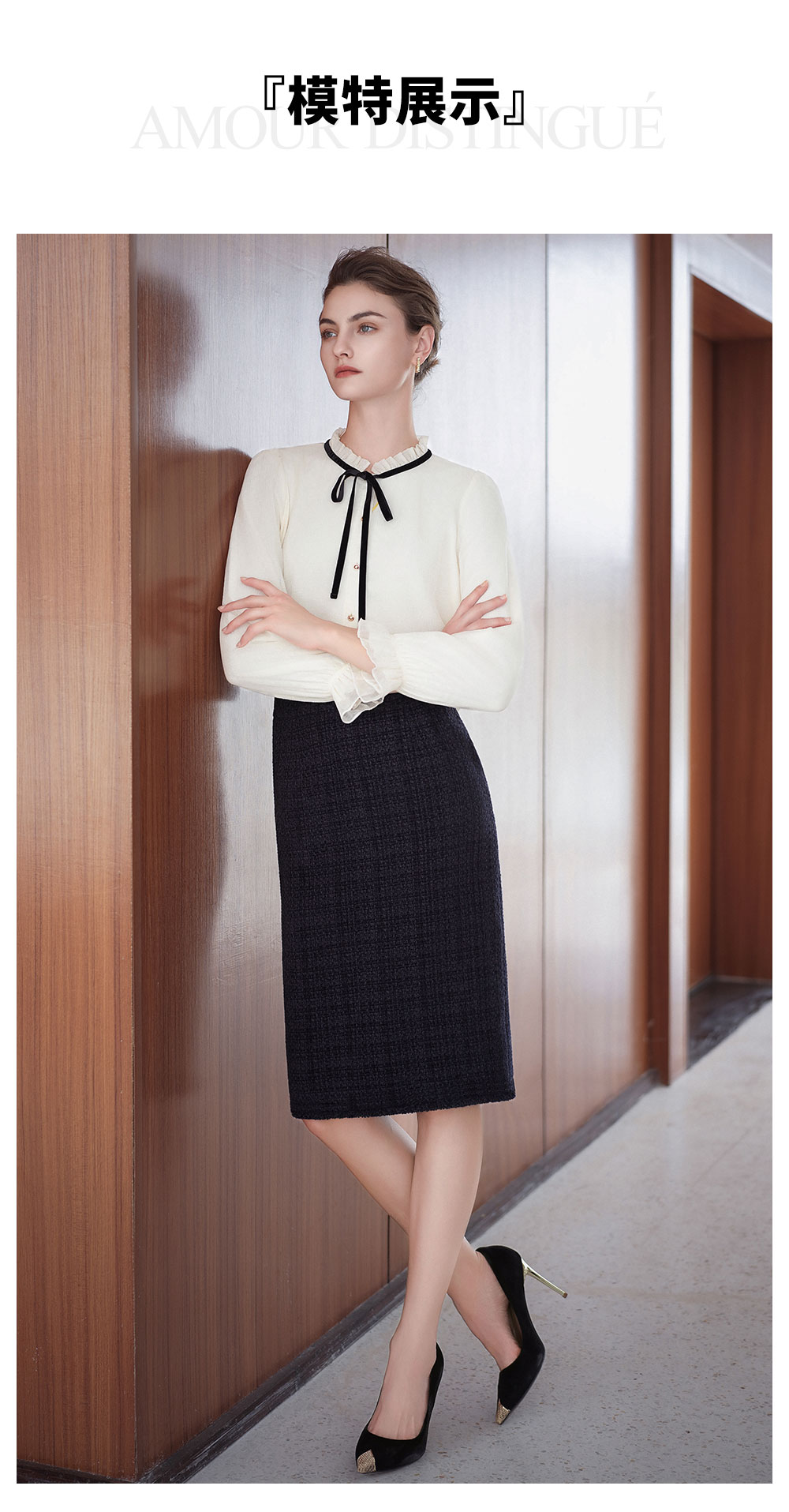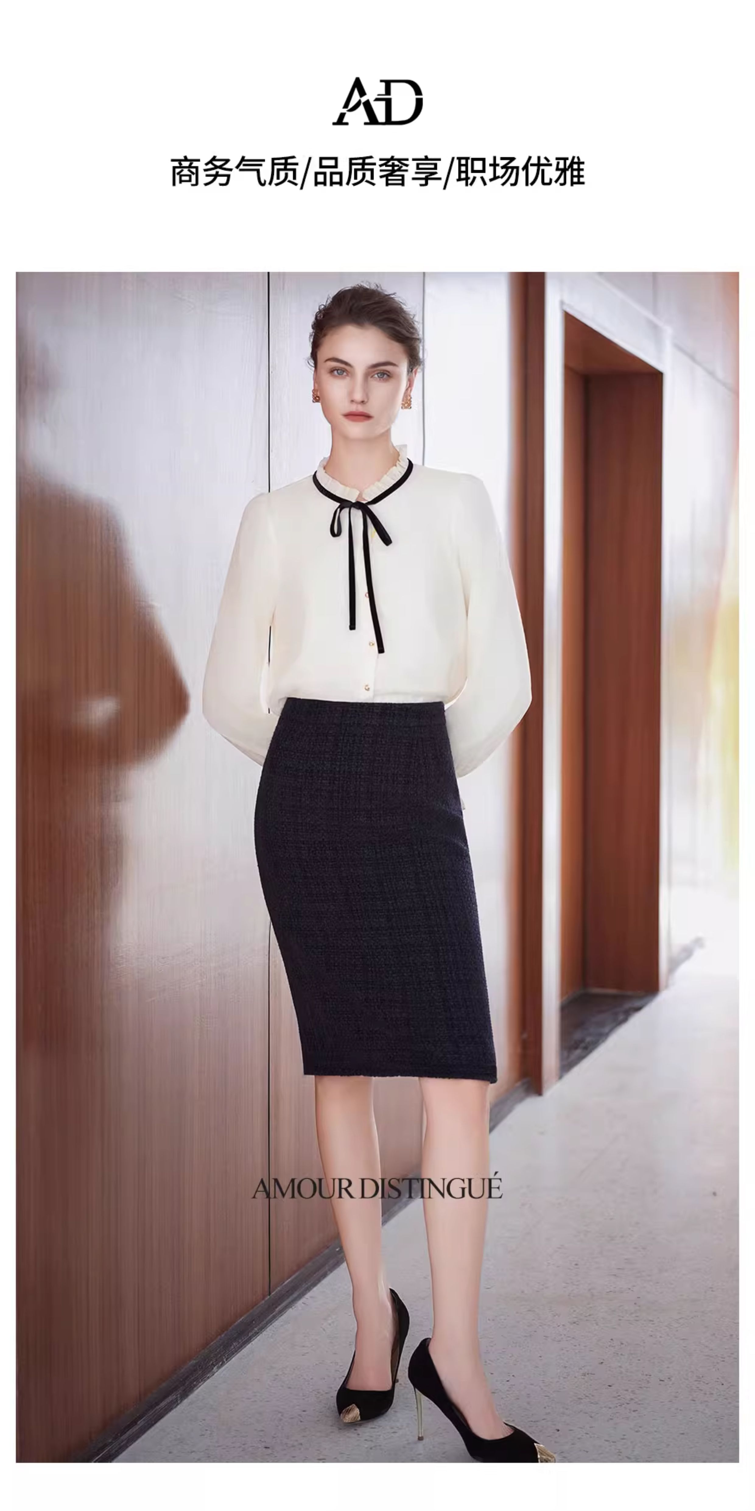 AD法式小香风衬衫套装裙女2025新款秋冬高级感气质内搭长袖半身裙