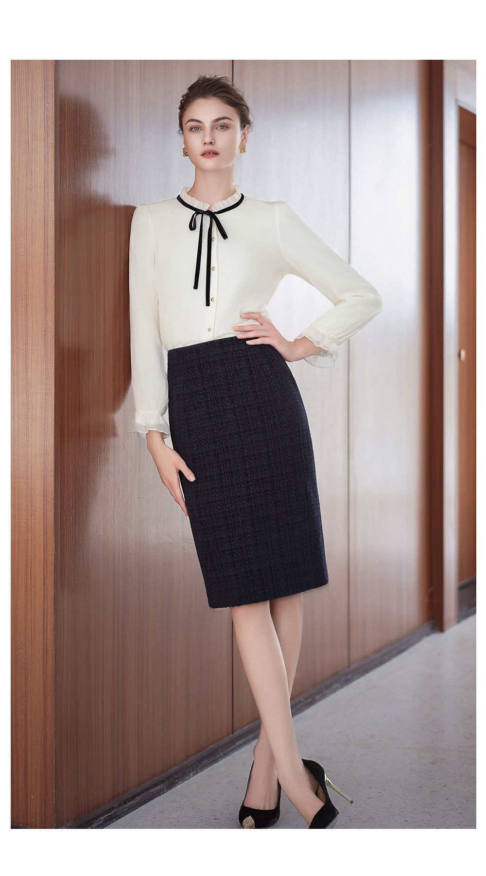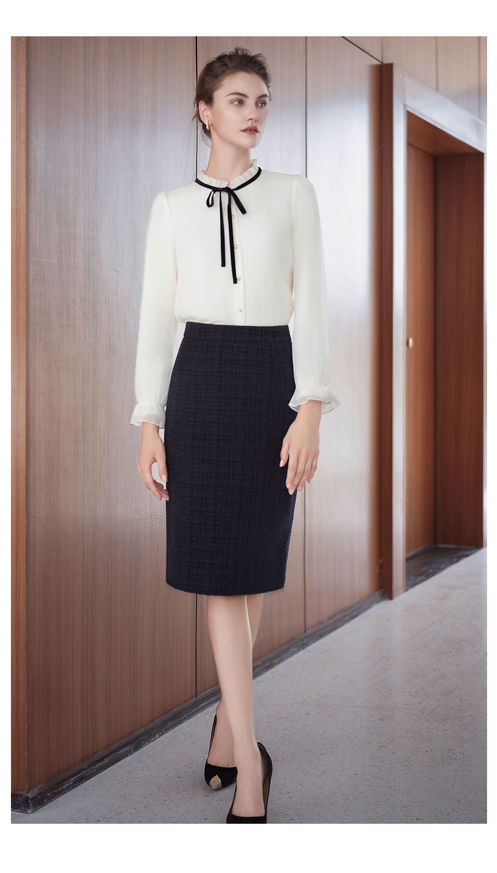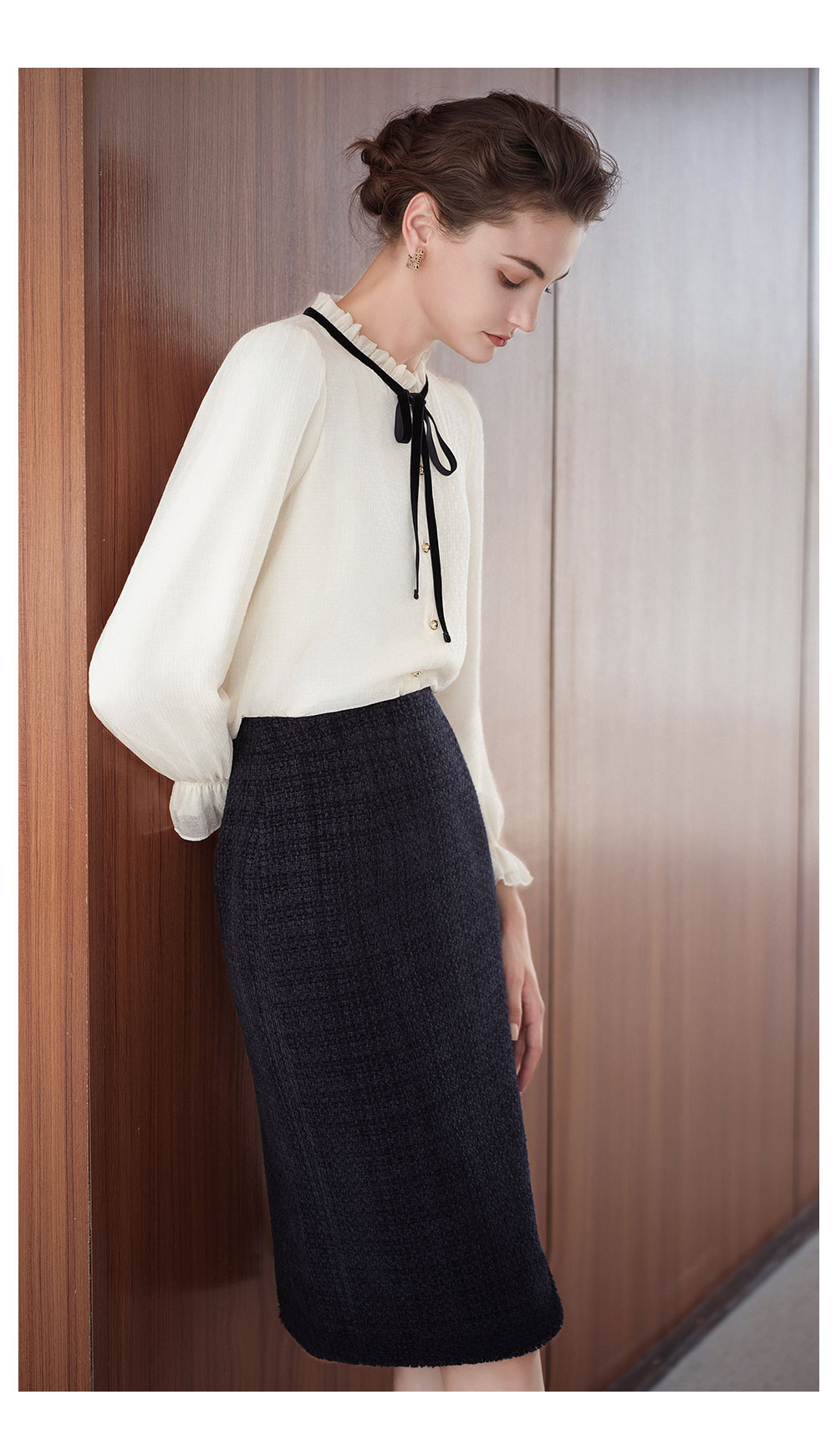 AD法式小香风衬衫套装裙女2025新款秋冬高级感气质内搭长袖半身裙
