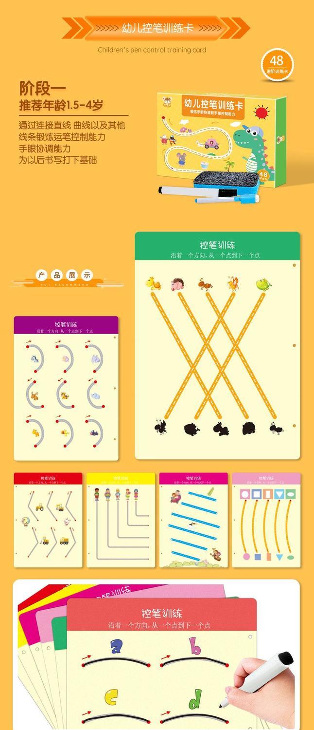【反复可用安全环保】幼儿控笔训练幼儿园可擦儿童大班入门零基础练字数字一年级3到6岁