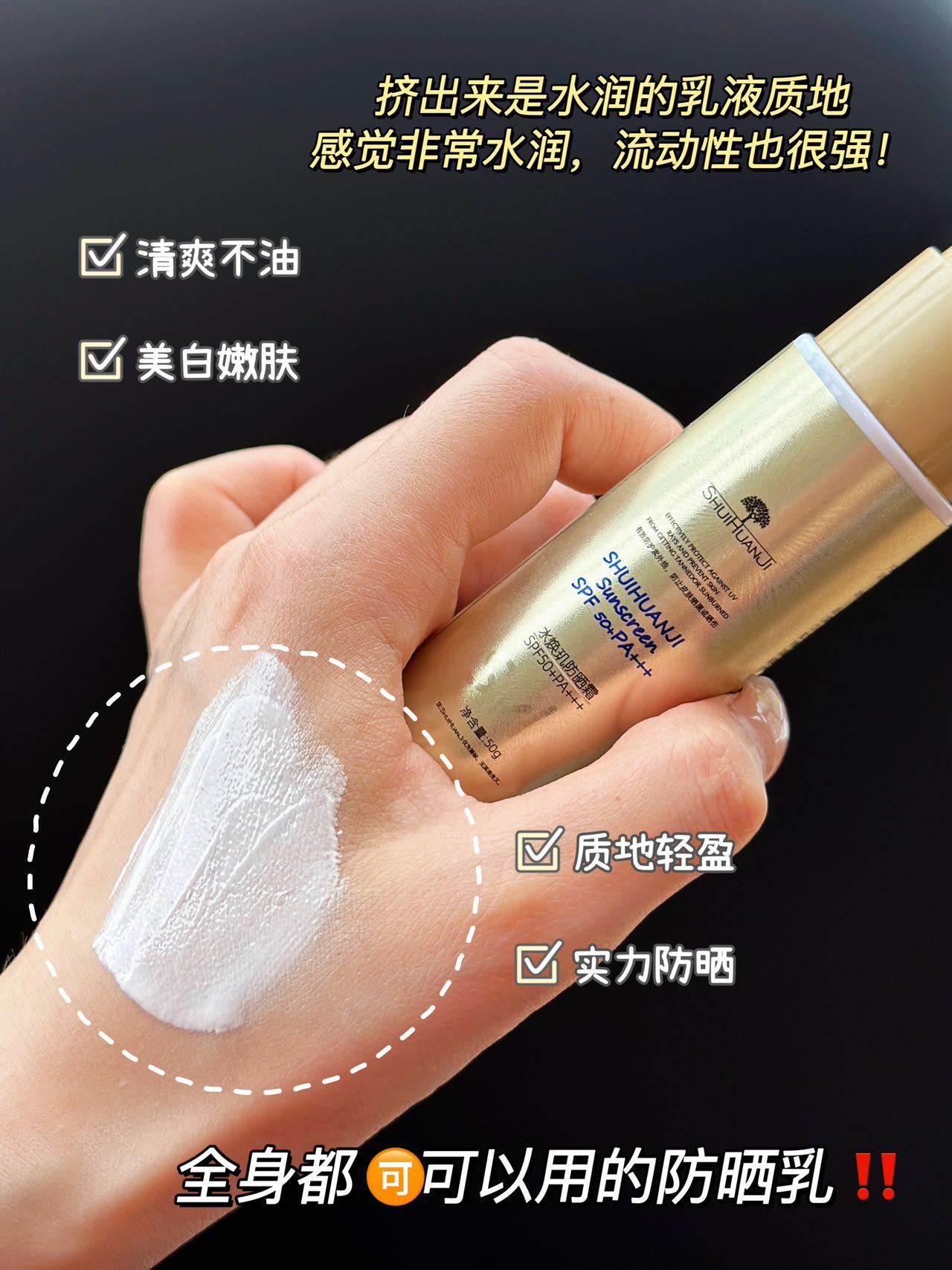 【水焕玑小金管防晒霜】去三亚半个月都晒不黑 防晒界大姐,你不服都不行 ASPF50+,PA+++,高倍防晒值,防晒毫无压力 专研的成膜黑科技“NEO防晒防脱膜技术”