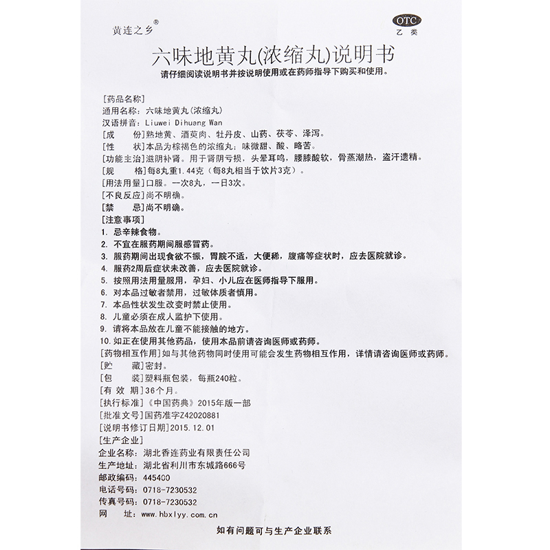 连乡 六味地黄丸240粒浓缩丸滋阴补肾亏阴虚腰膝酸软头晕耳鸣遗精