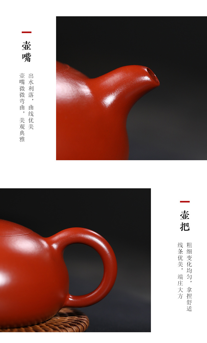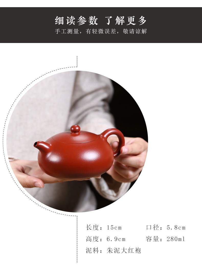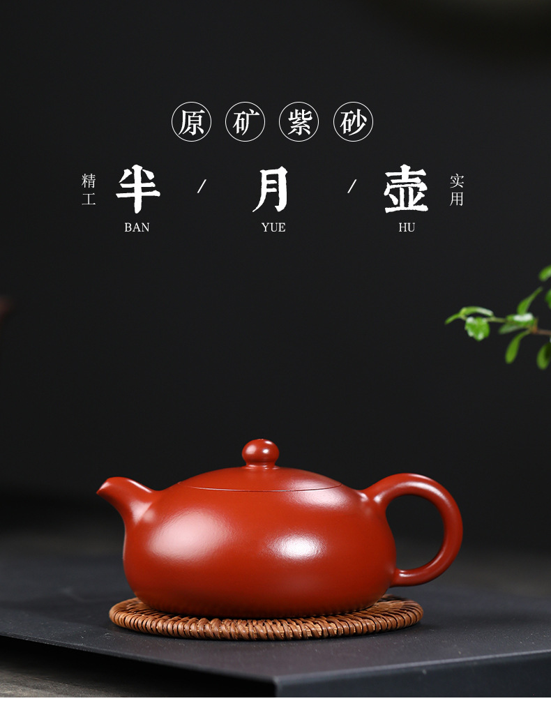 宜兴紫砂壶丨半月 原矿朱泥大红袍 280ml 礼盒配手提袋证书 泡茶壶百搭各类茶叶
