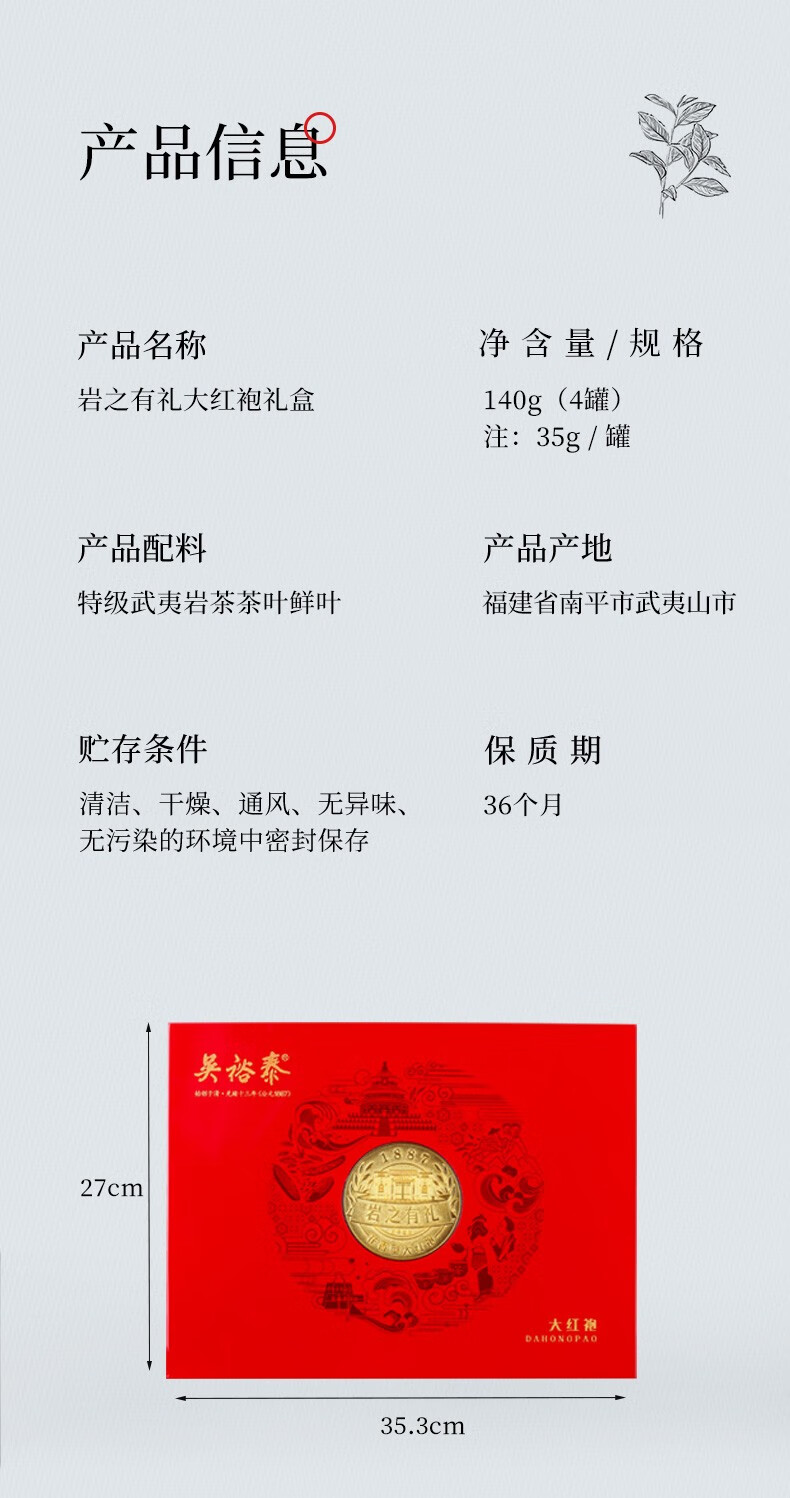 吴裕泰 岩之有礼武夷岩茶大红袍礼盒140g/盒【SZCT10.0】