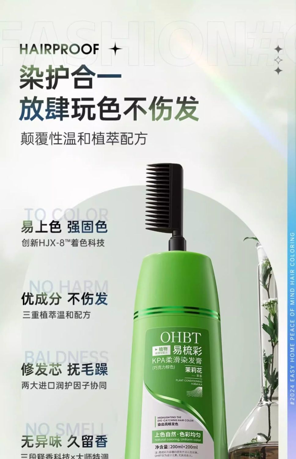 OHBT染发膏染发剂自己在家染发纯植物纯无氨泡泡染发剂
