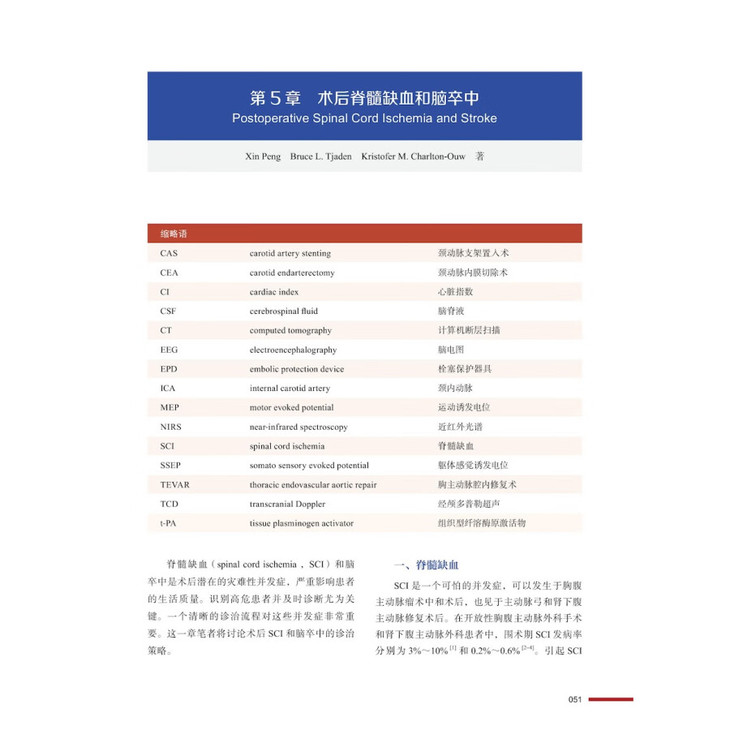 本书引进自Springer出版社,由美国贝勒医学院MichaelE.DeBakey外科学系专家RamyarGilani和JosephL.MillsSr.联袂编写。著者聚焦各种血管并发症,分四篇18章系统介绍了血管并发症诊治的一般原则、围术期常见血管并发症的诊治,以及与外科手术、介入治疗相关的直接或间接血管并发症、迟发性血管并发症等内容,同时结合实际病例,总结操作流程规范,提出了规避意外事件的可行性建议,并详细介绍了针对已发生的血管并发症的处理策略。本书内容实用、阐释简洁、图文并茂,可供血管外科临床医生在日常防治血管并发症时借鉴参考。