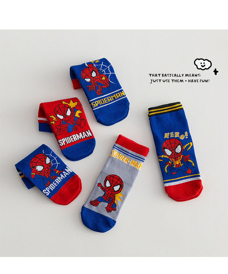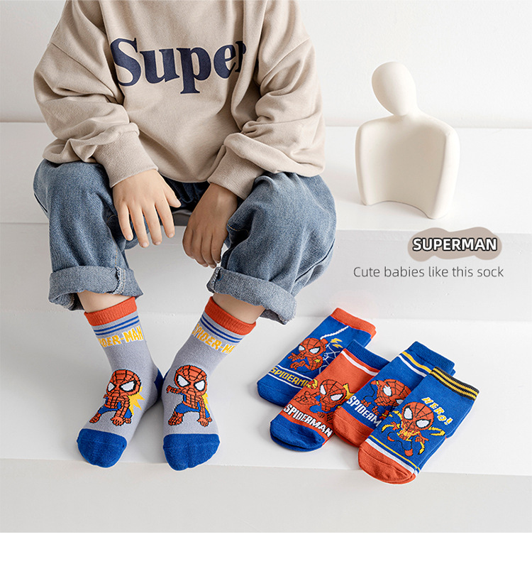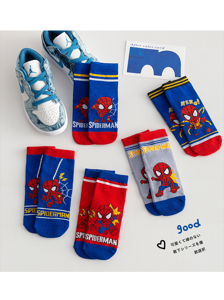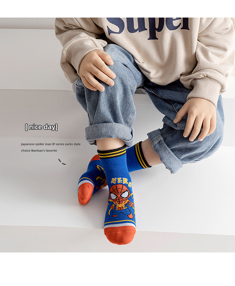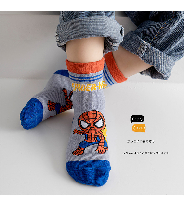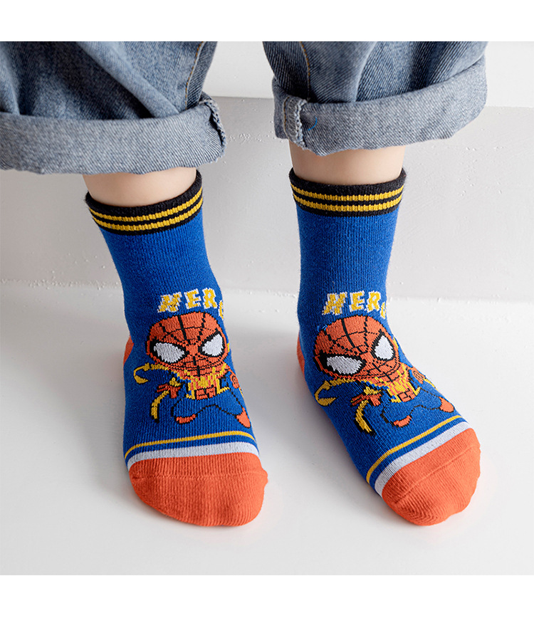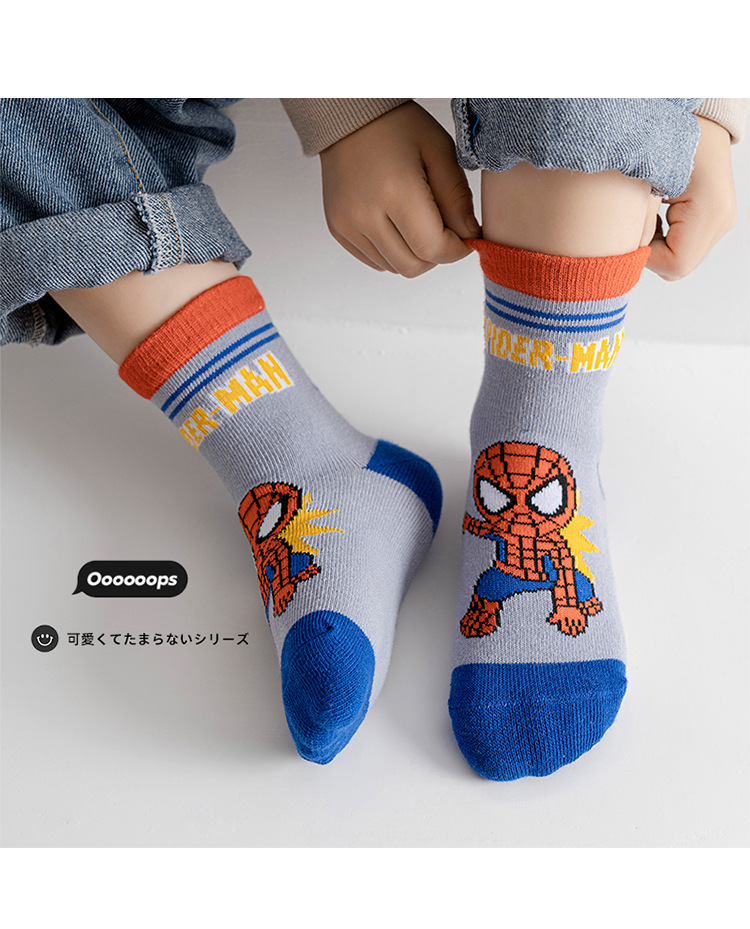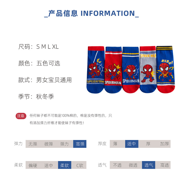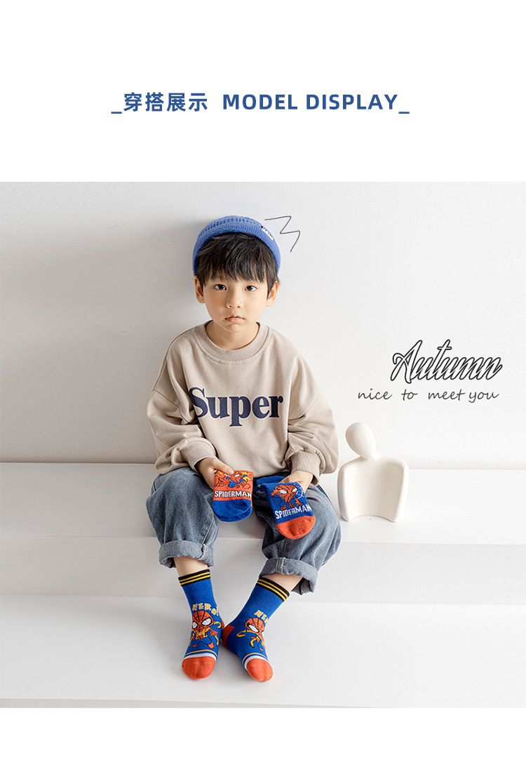 【星戴露蜘蛛侠儿童袜子】中筒秋冬款男童女童春秋棉宝宝学生恐龙卡通小孩棉袜