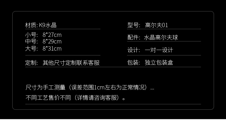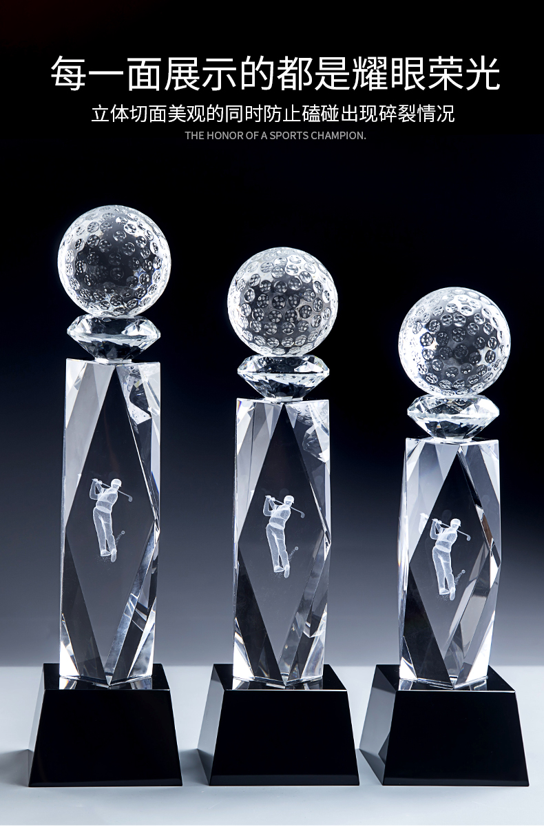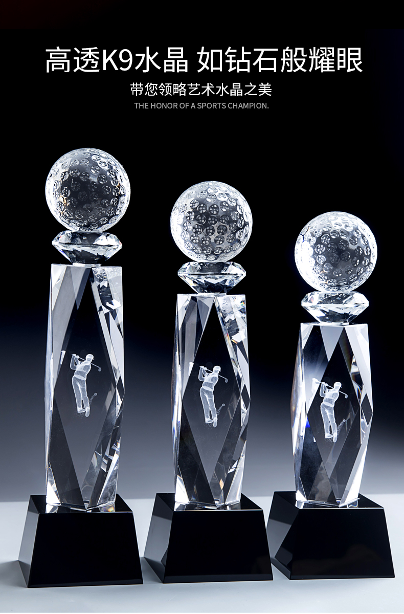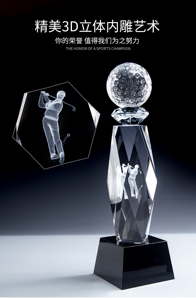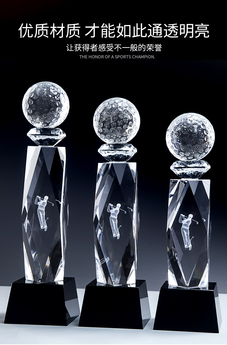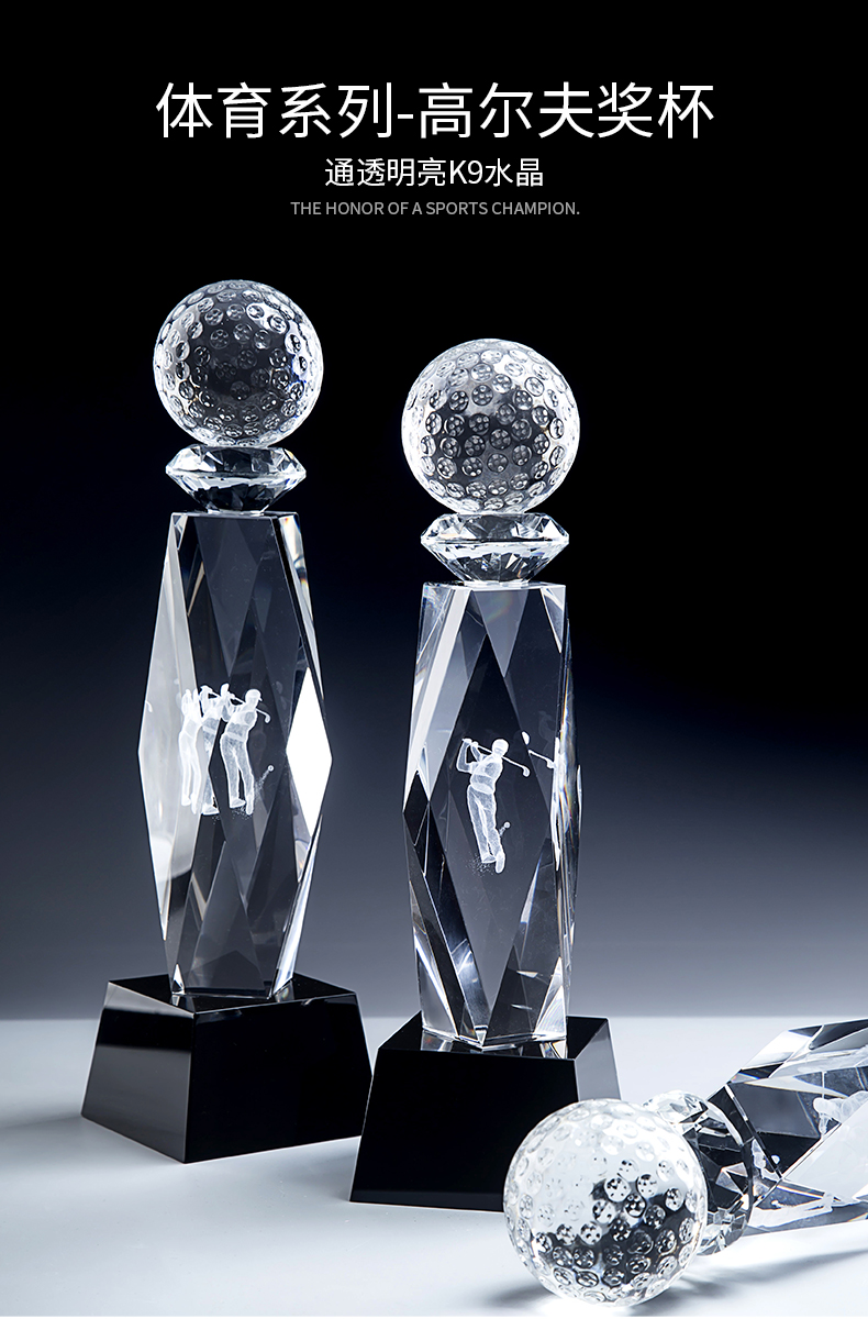 高尔夫创意水晶奖杯定制定做比赛奖牌冠军创意内雕纪念品mvp奖杯