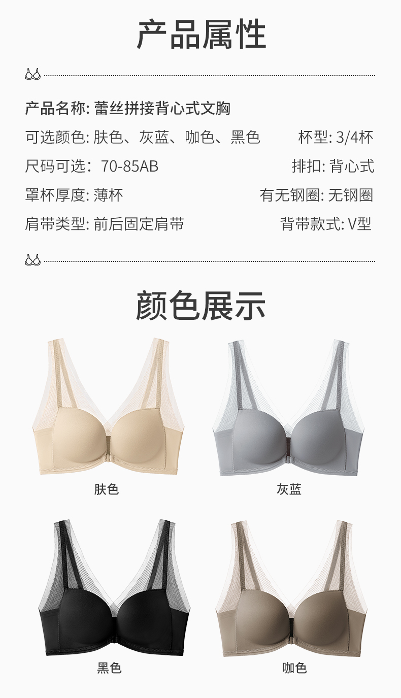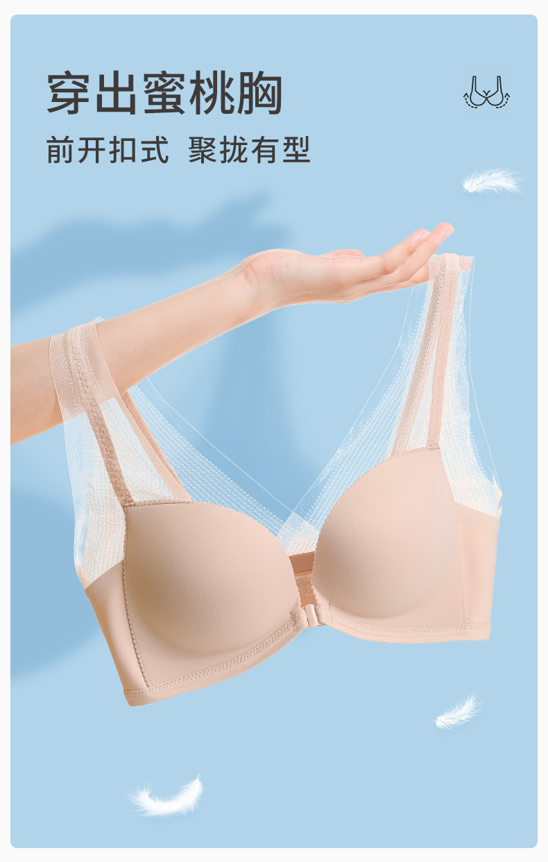 雅黛丽小胸聚拢文胸便携前扣舒适聚拢性感蕾丝拼接美背无钢圈内衣