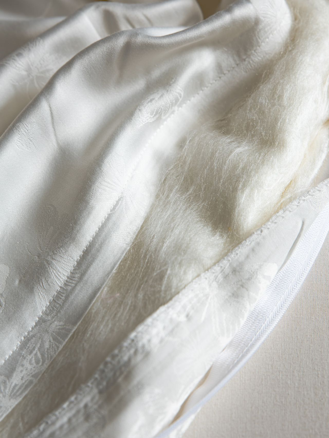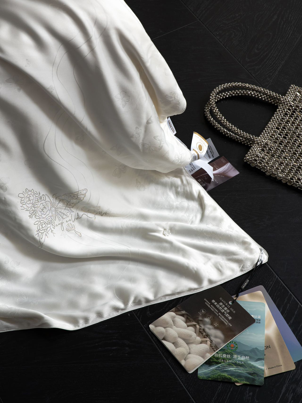 2. 蚕丝的丝胶成分不仅可使人的皮肤细腻光泽,而且具有防止螨虫和霉菌滋生的能力,对过敏体质更为有益。