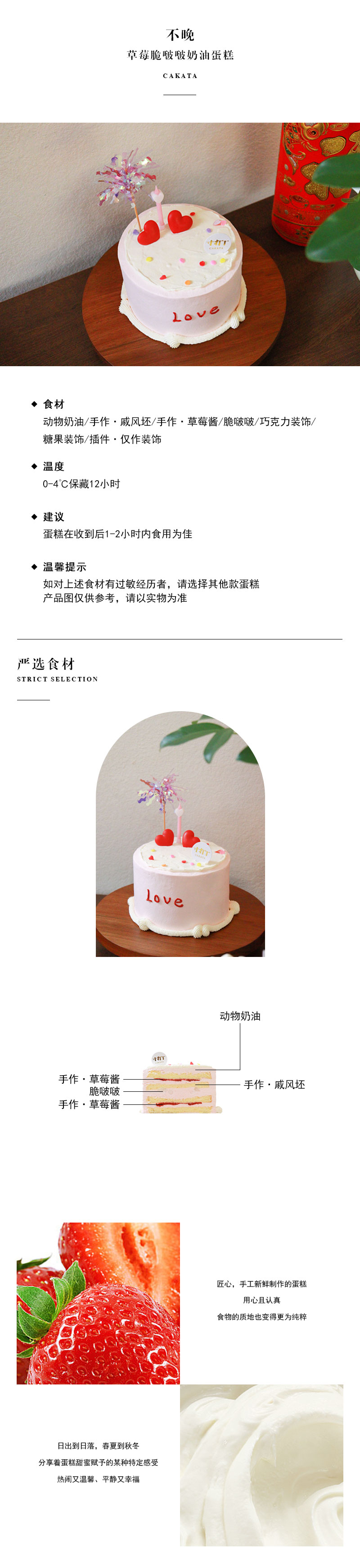 不晚 · 草莓脆啵啵奶油蛋糕(可备注少糖)