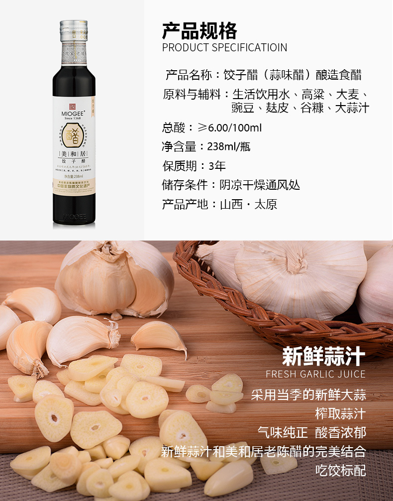 【美和居-国家非遗】饺子醋山西特产老陈醋家用食用调味醋238ml