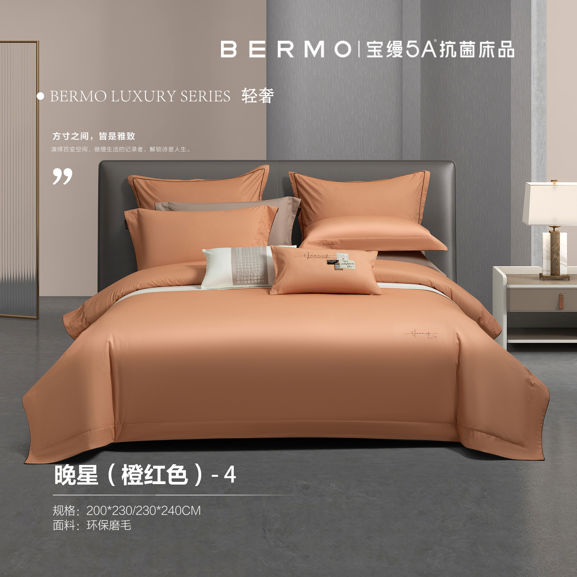 10楼宝缦 环保磨毛四件套 晚星(橙红色) 吊牌价1680-1780元 活动价599/套