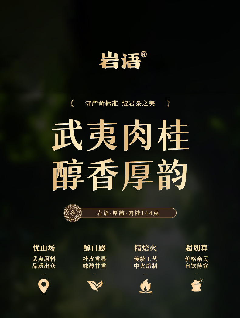 岩语 厚韵肉桂 中火特级武夷岩茶乌龙茶茶叶盒装送礼144g