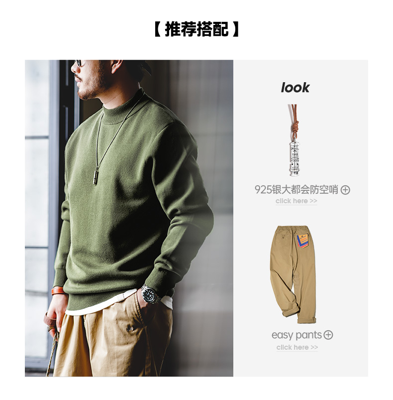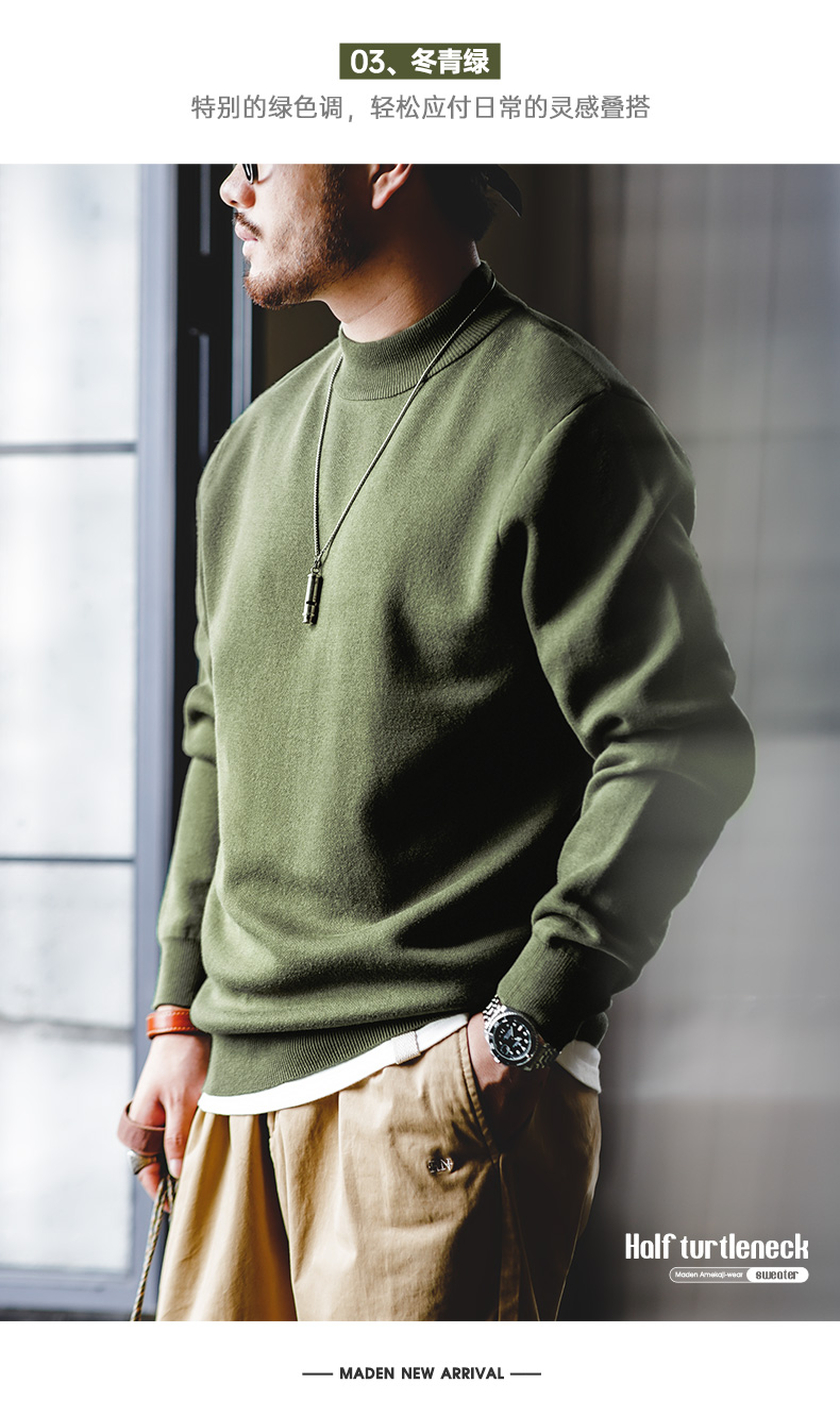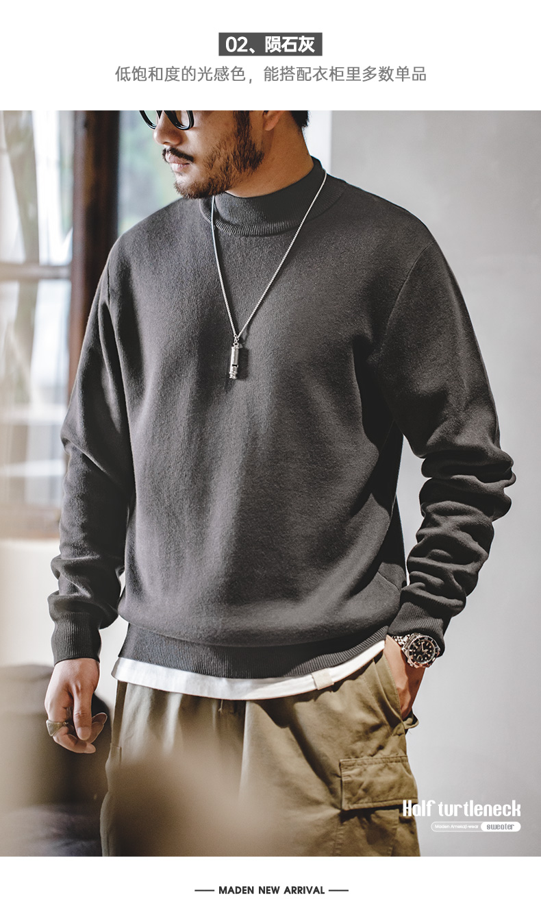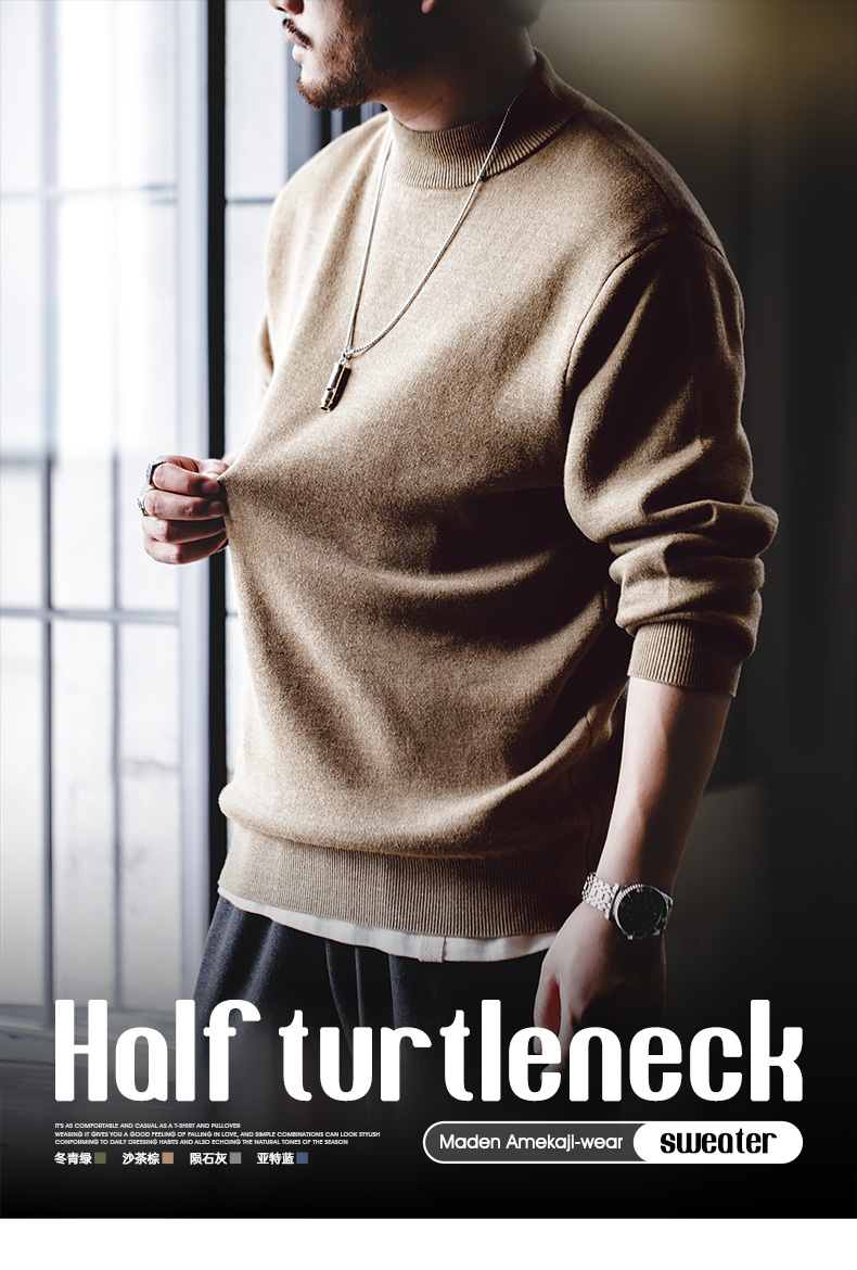 工装优选 美式休闲基础款半高领毛衣套头保暖针织打底衫男士秋冬